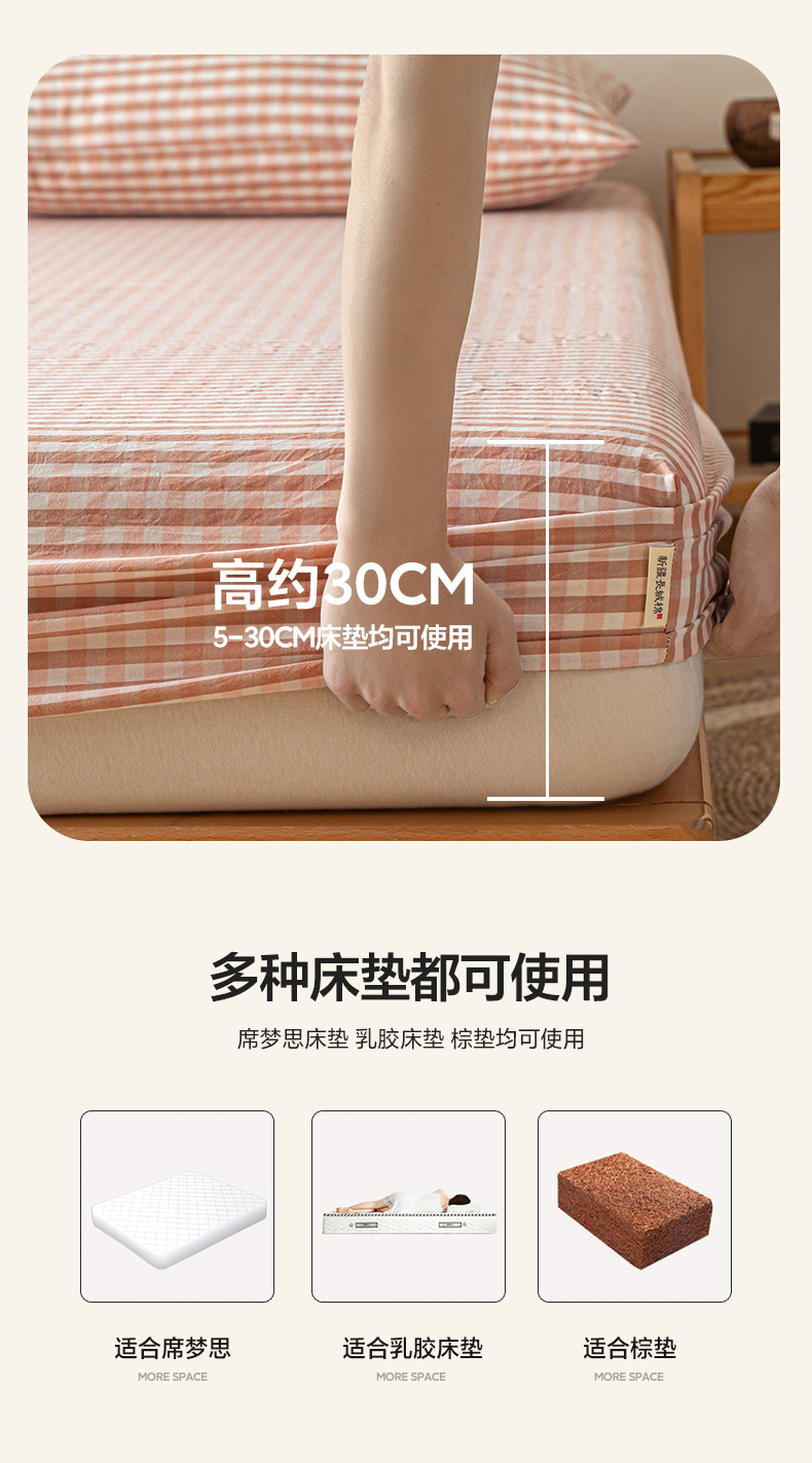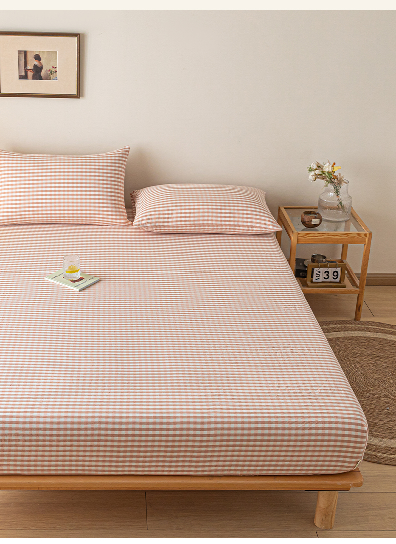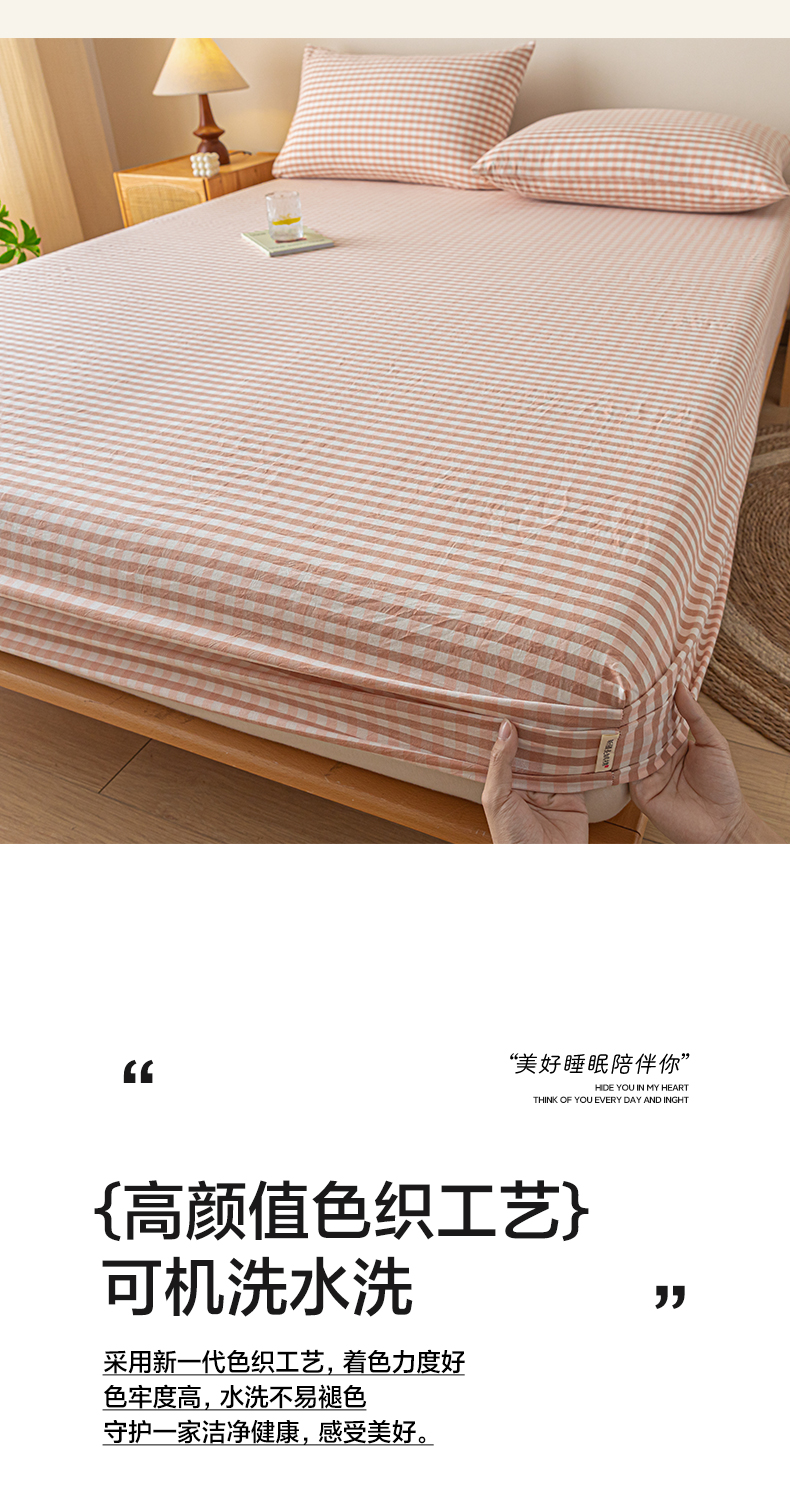 卡伦家纺 2025全棉色织水洗棉单层床笠席梦思保护套 粉小格