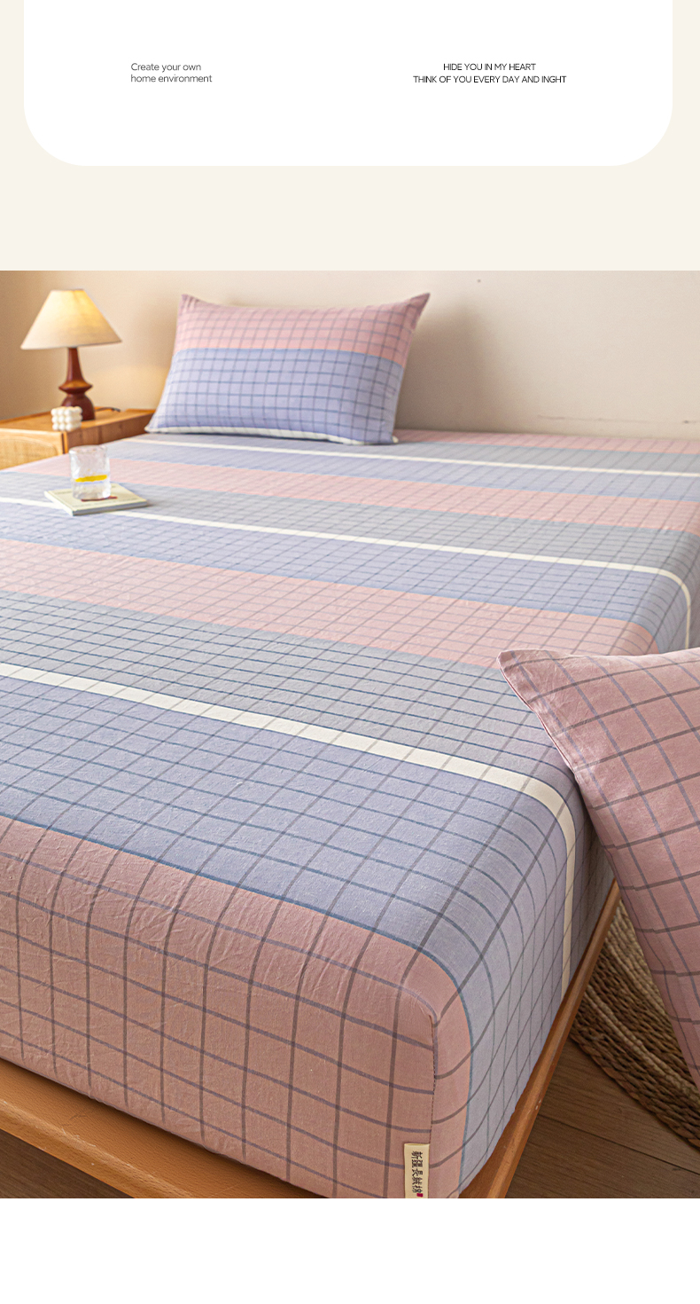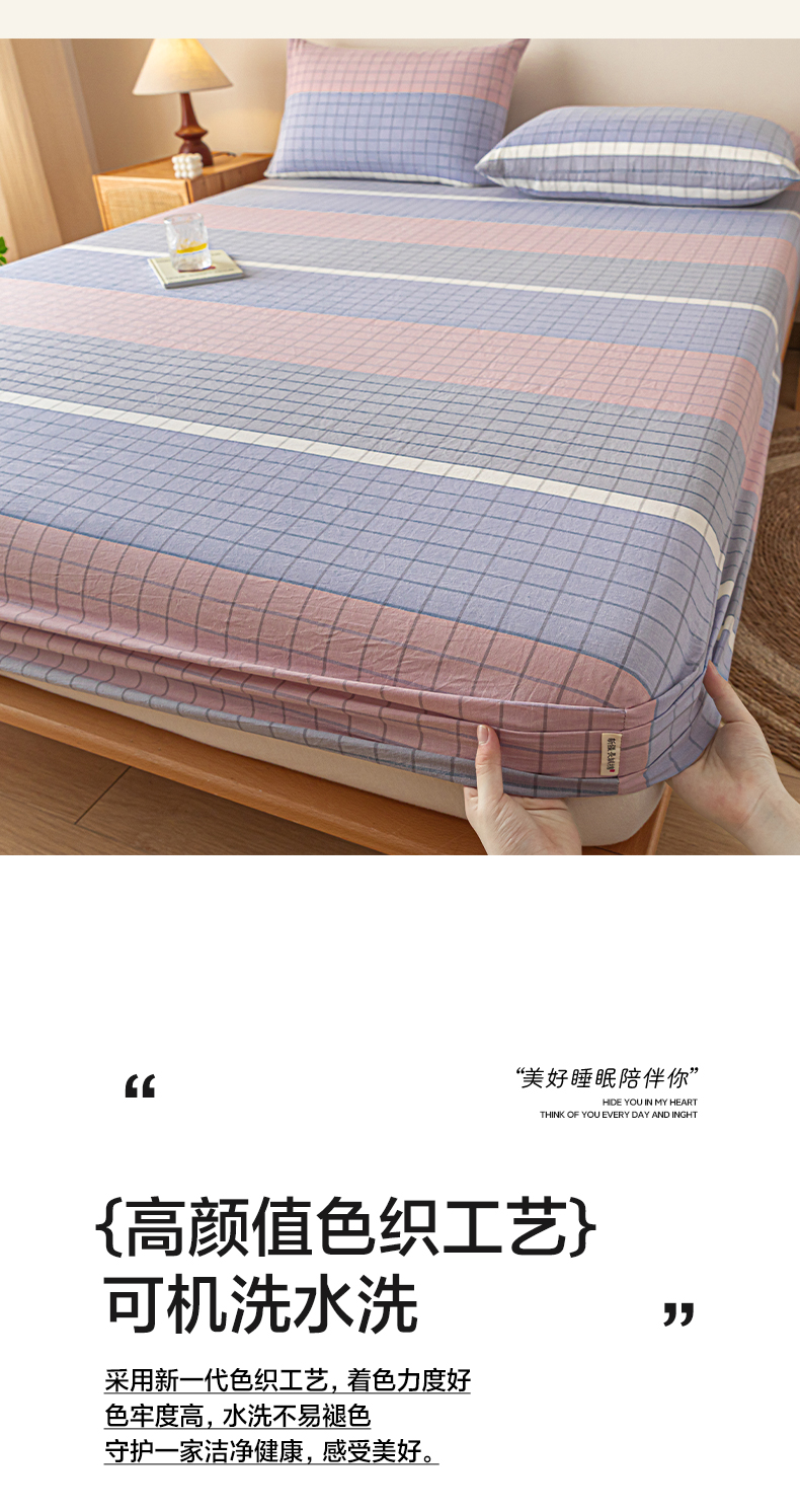 卡伦家纺 2025全棉色织水洗棉单层床笠席梦思保护套 马丁粉