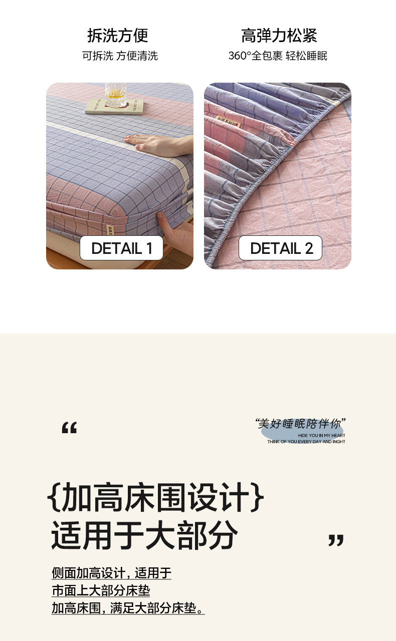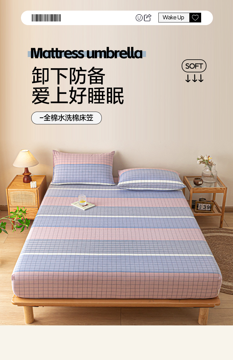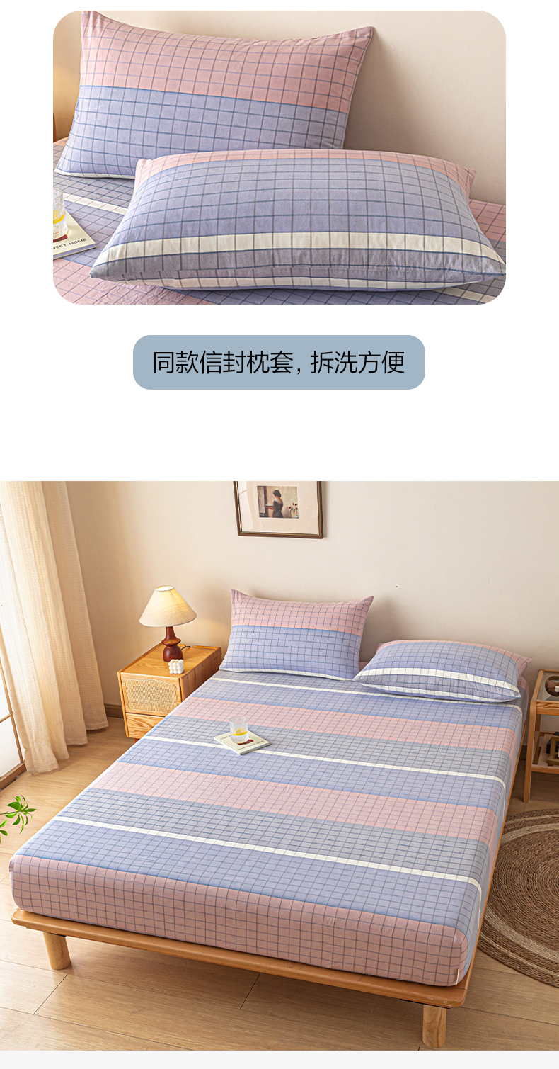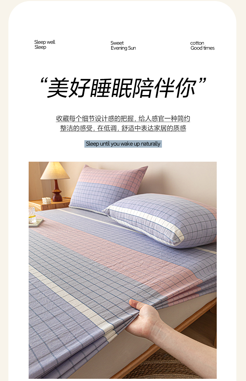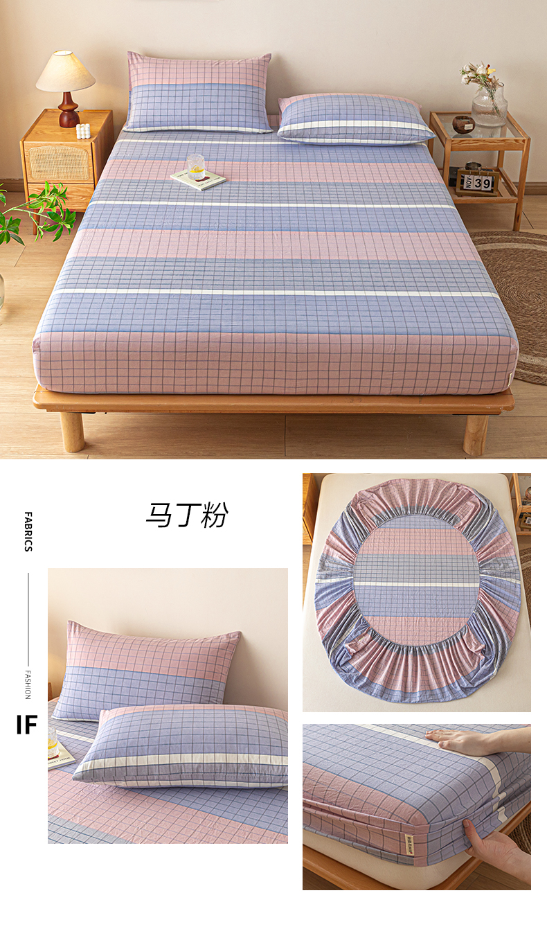 • 91家纺网 家纺一手货源 找家纺 卡伦家纺 2025全棉色织水洗棉单层床笠席梦思保护套 马丁粉