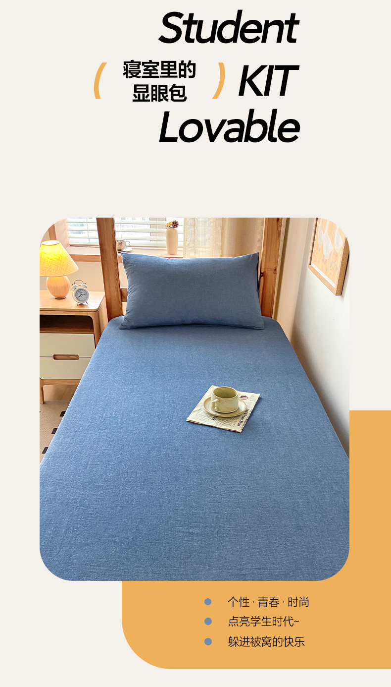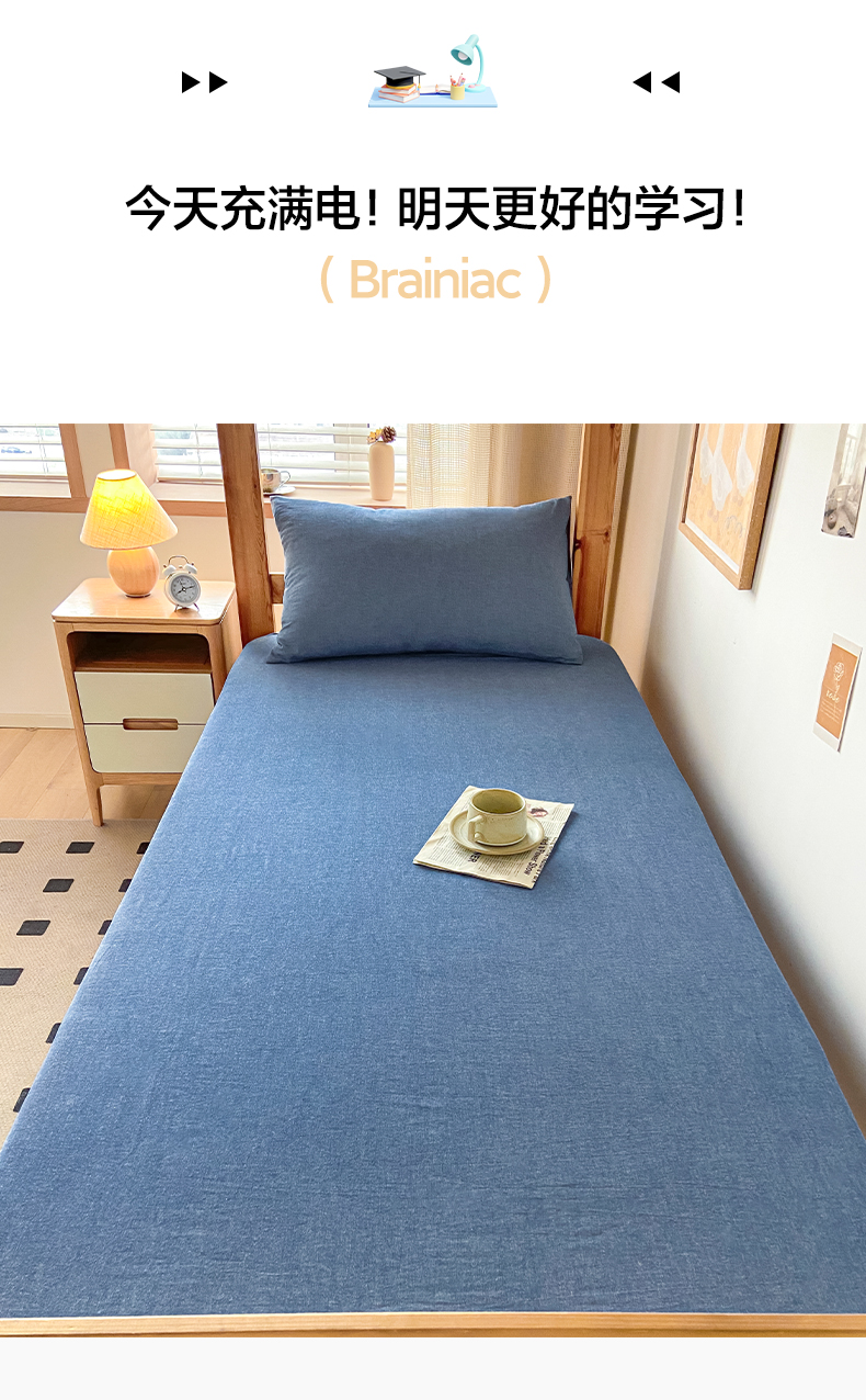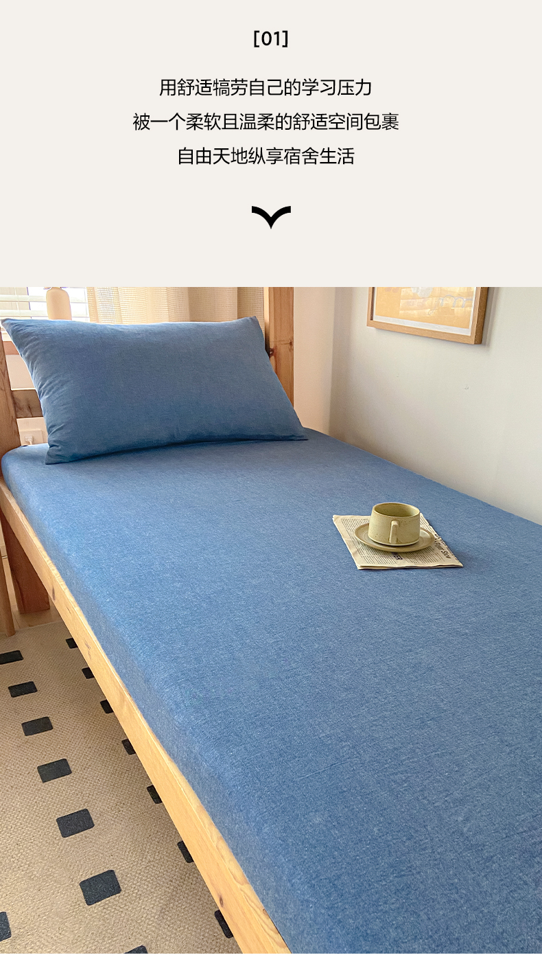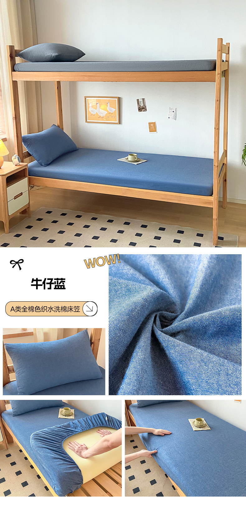 卡伦家纺 2025新款全棉色织水洗棉单层宿舍学生床笠 牛仔蓝