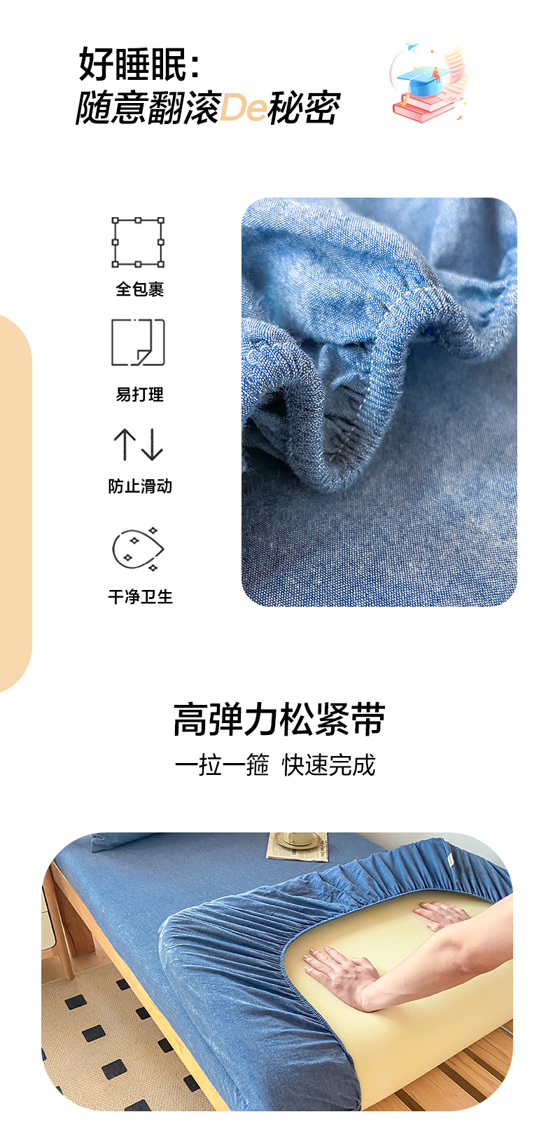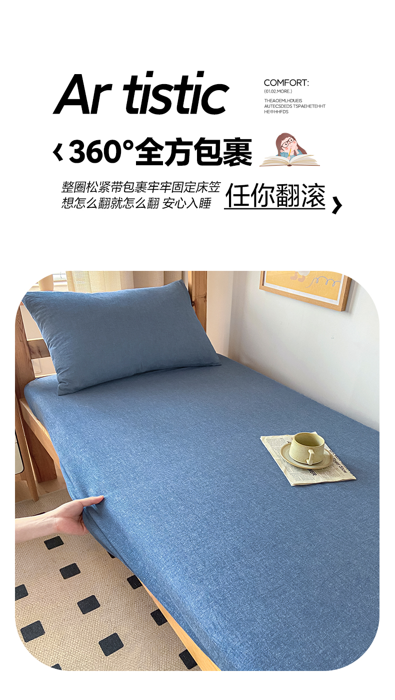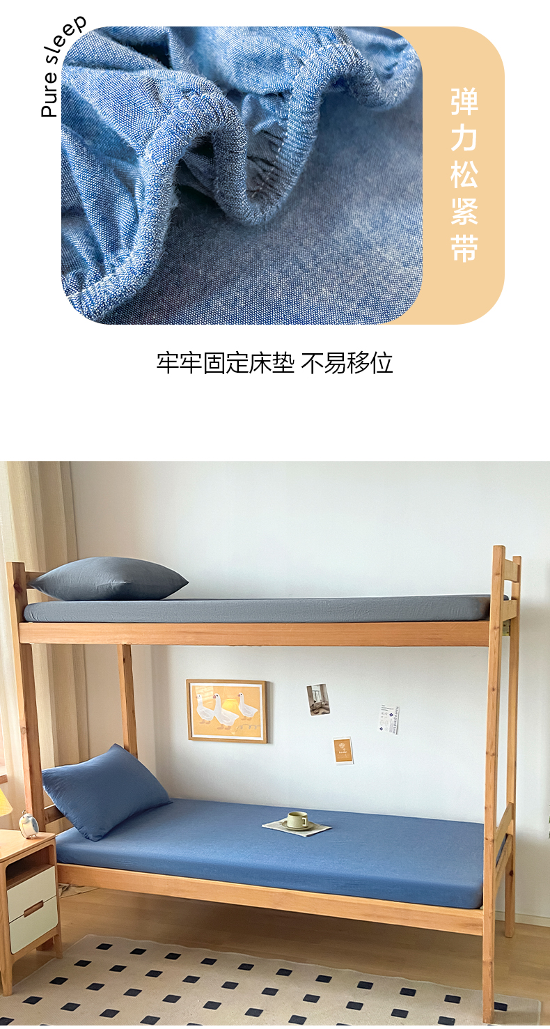 卡伦家纺 2025新款全棉色织水洗棉单层宿舍学生床笠 牛仔蓝