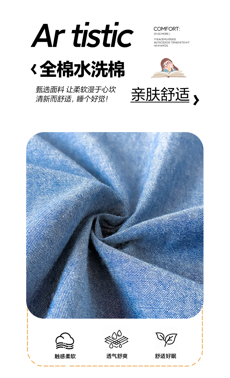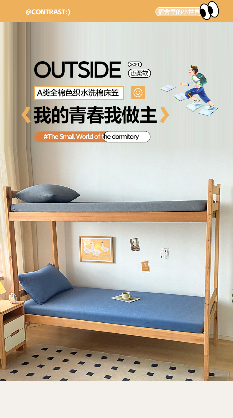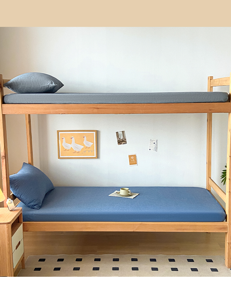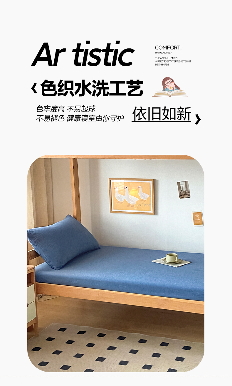 • 91家纺网 家纺一手货源 找家纺 卡伦家纺 2025新款全棉色织水洗棉单层宿舍学生床笠 牛仔蓝
