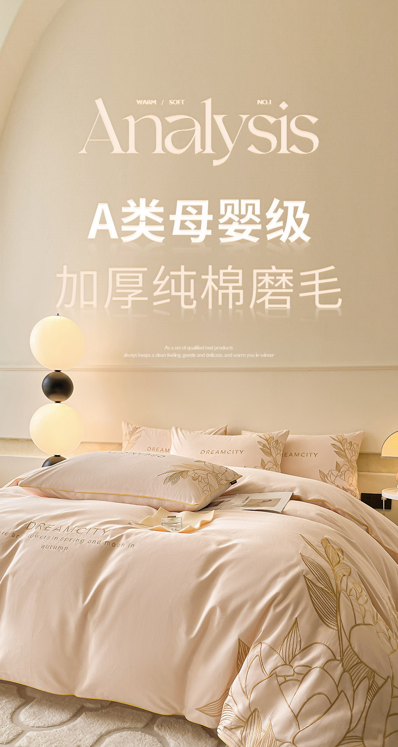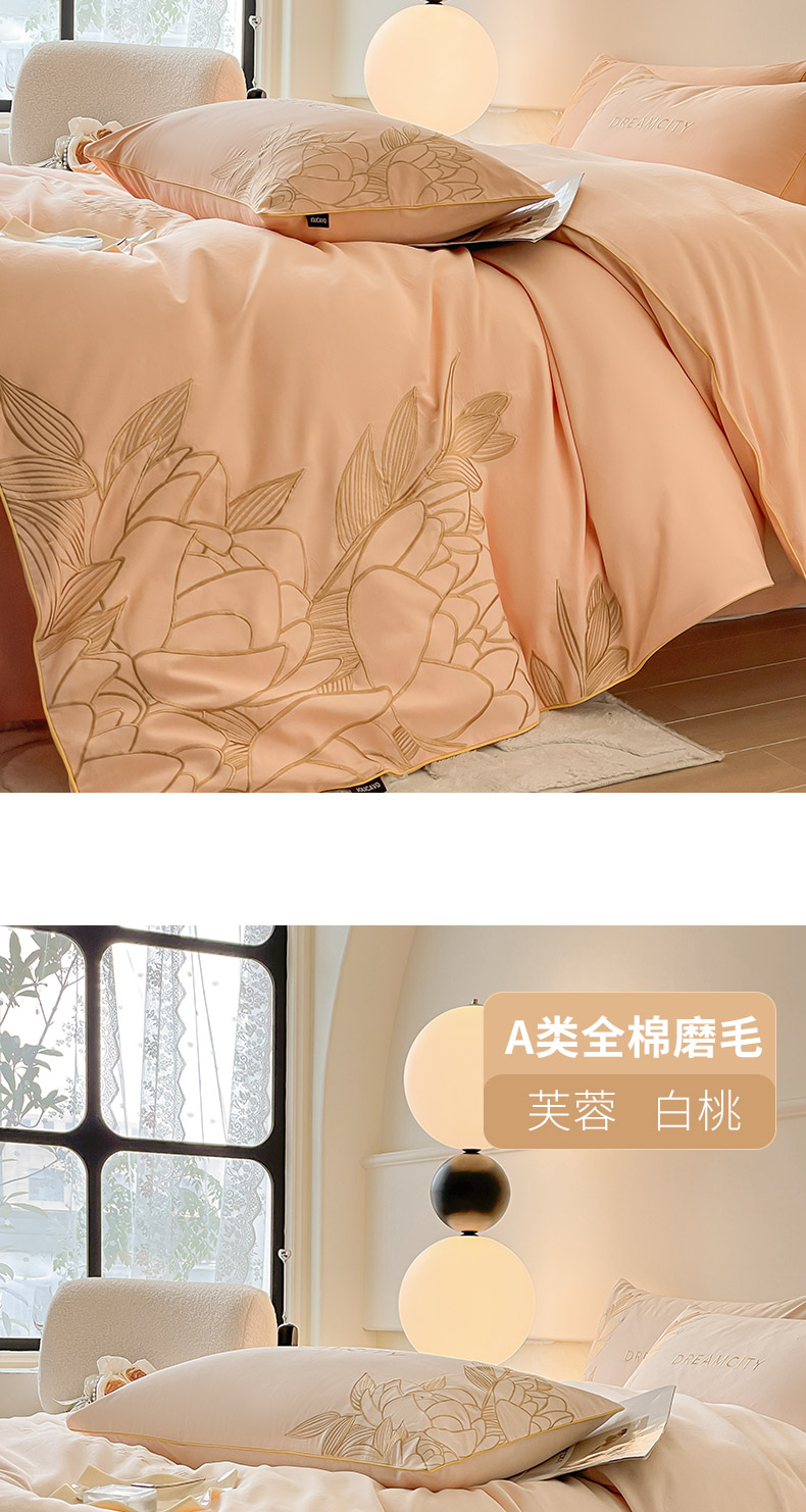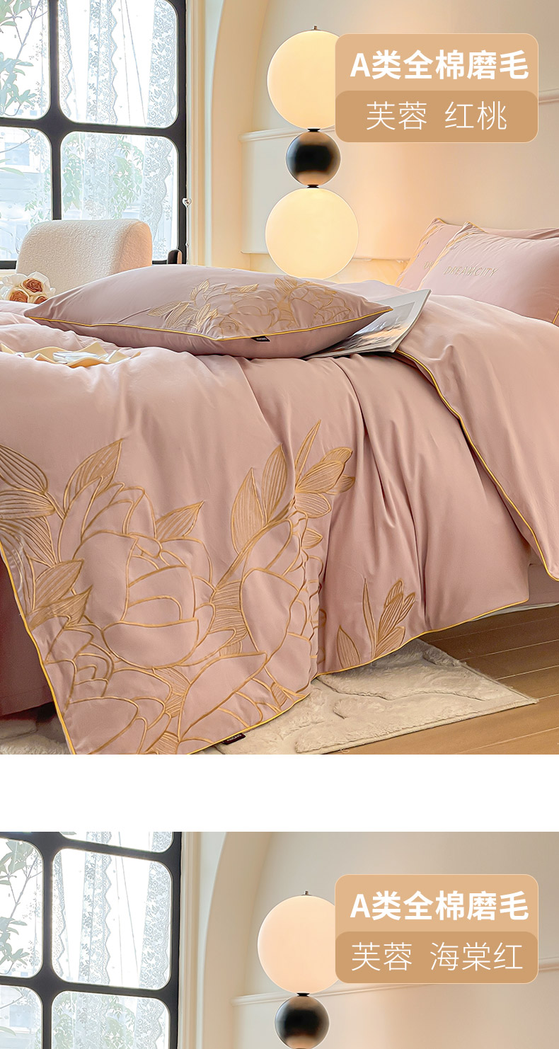 当前位置: 91家纺网 > 商品网购 > 床品套件 > 四件套 > 全棉普通四件套 > 【提供检测报告】A类母婴级全棉加厚保暖磨毛四件套纯棉高精密刺绣长绒棉床上用品轻奢风 芙蓉-白桃