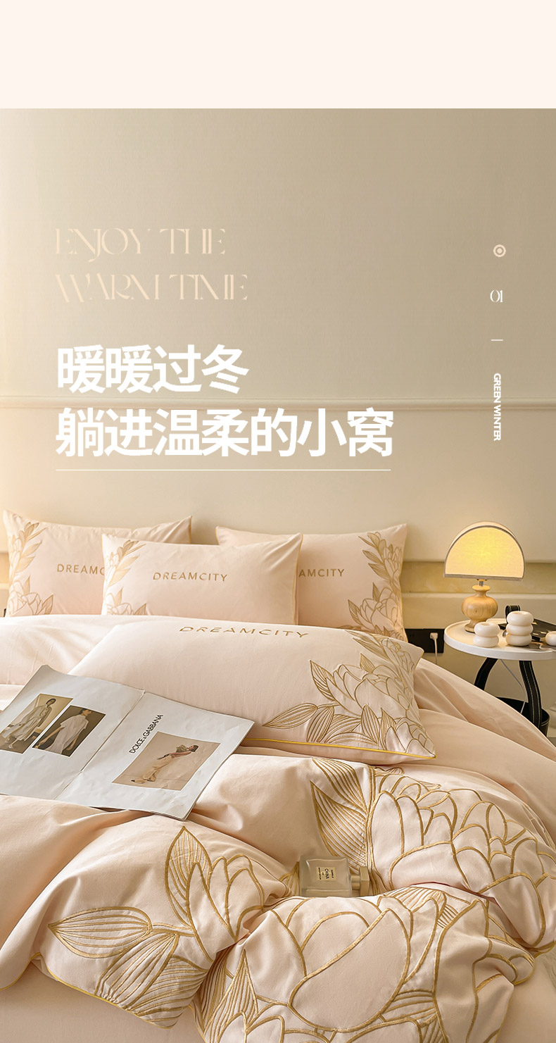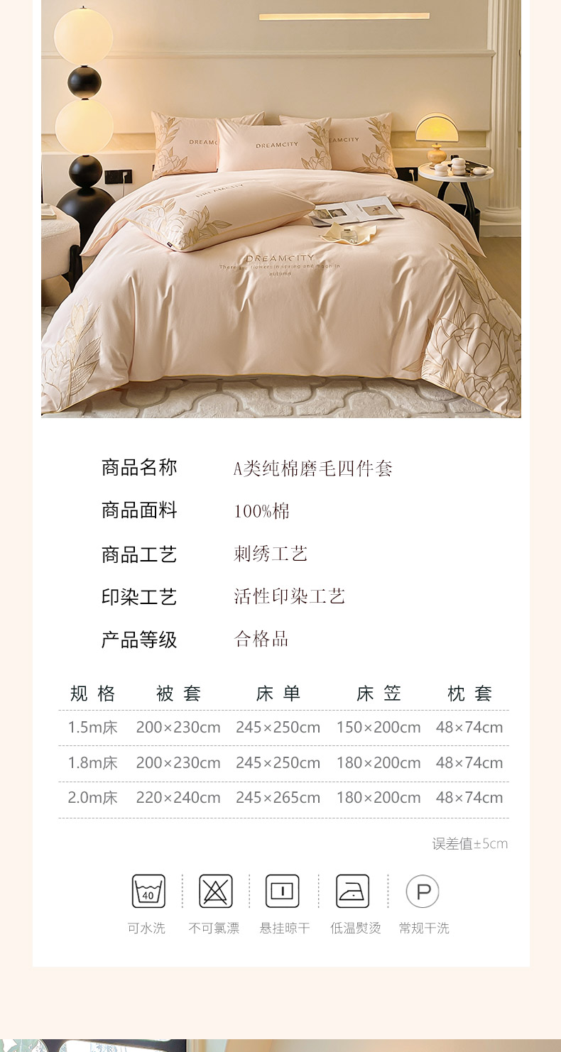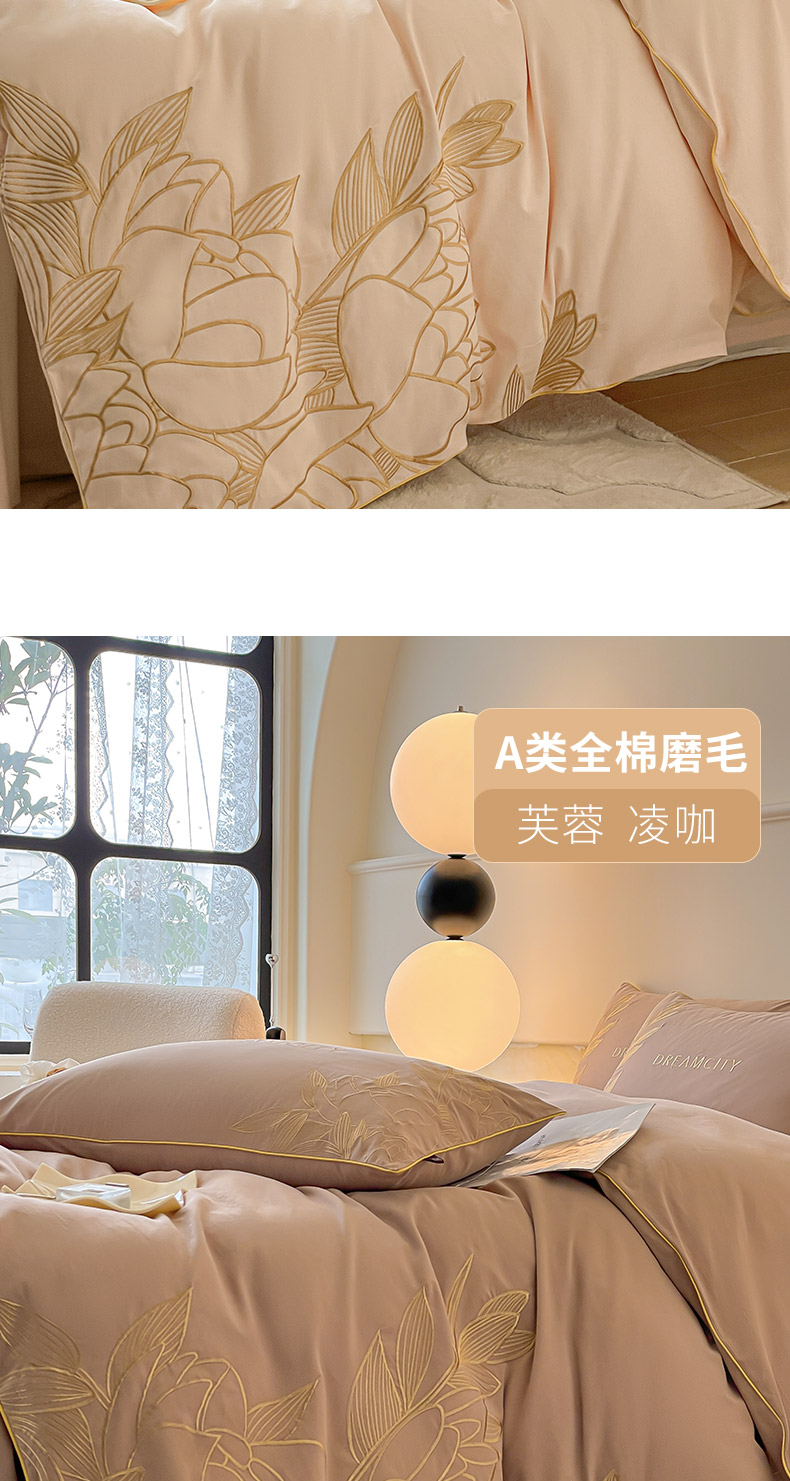 当前位置: 91家纺网 > 商品网购 > 床品套件 > 四件套 > 全棉普通四件套 > 【提供检测报告】A类母婴级全棉加厚保暖磨毛四件套纯棉高精密刺绣长绒棉床上用品轻奢风 芙蓉-白桃