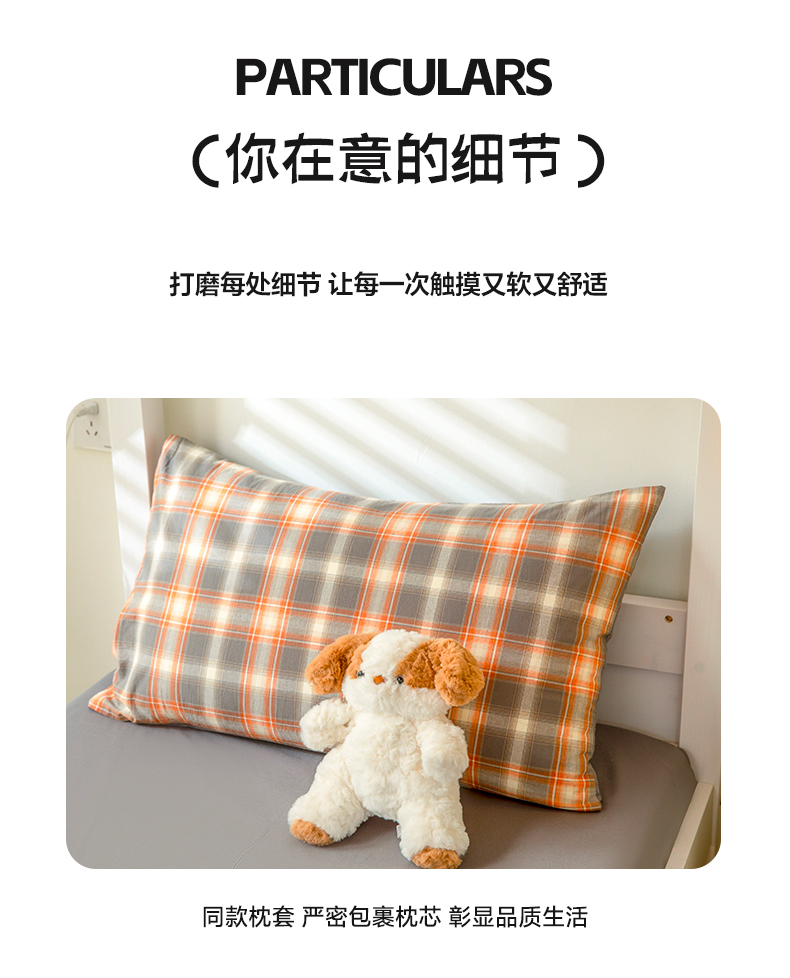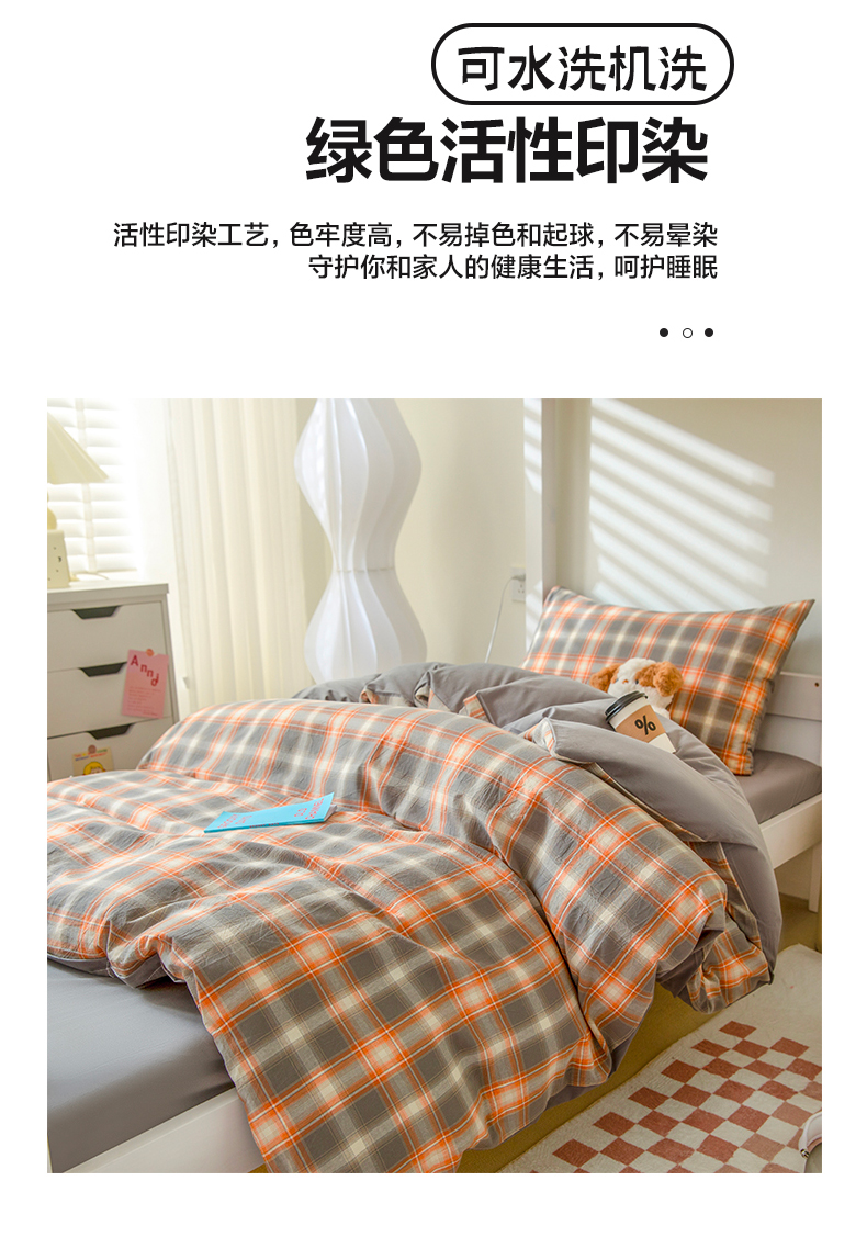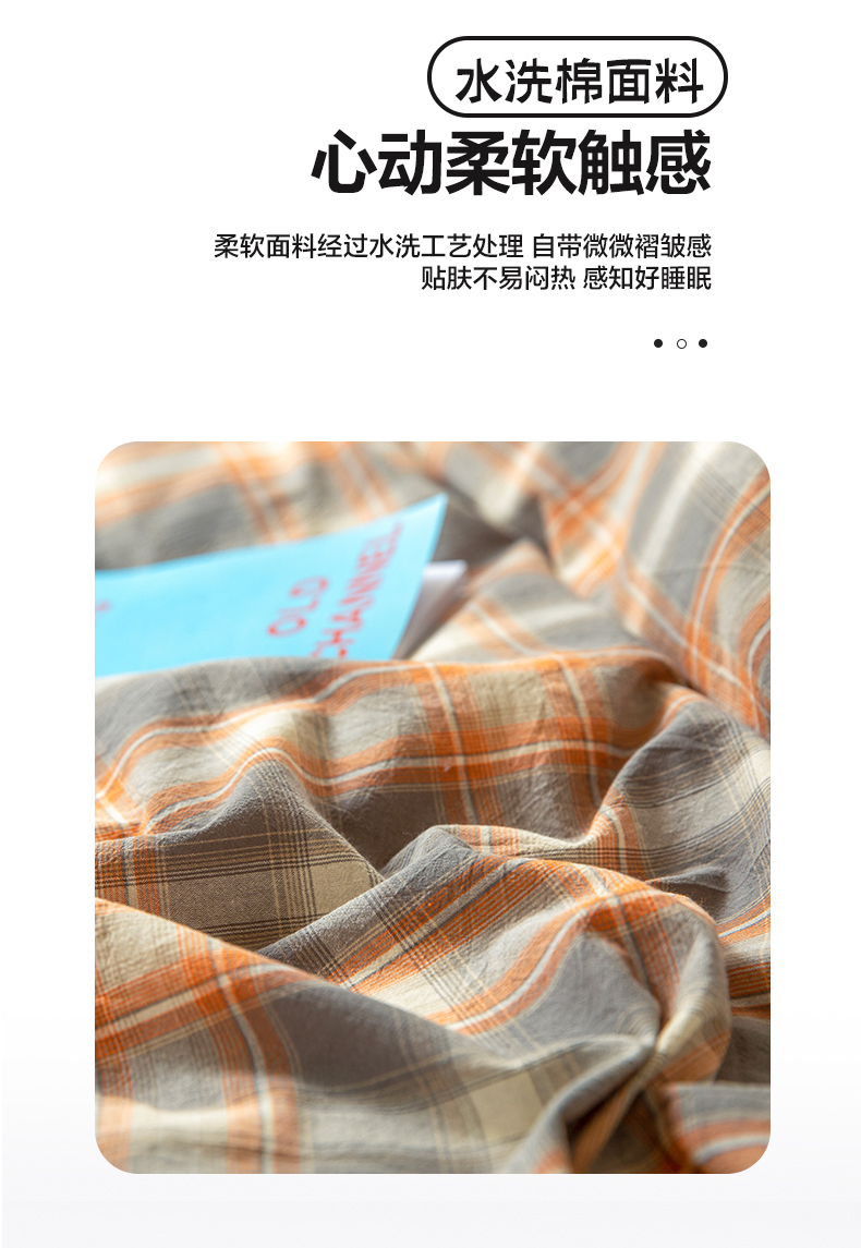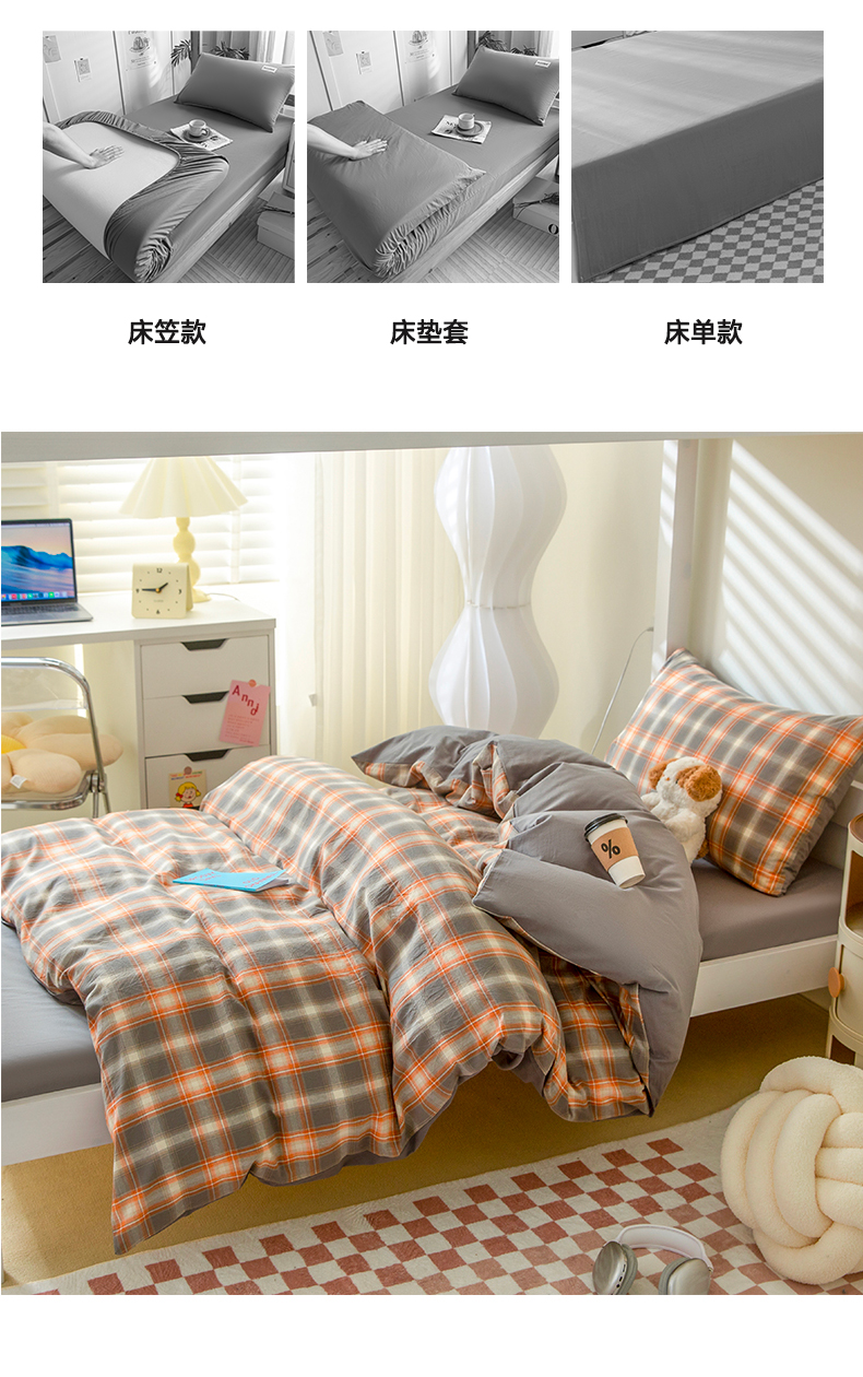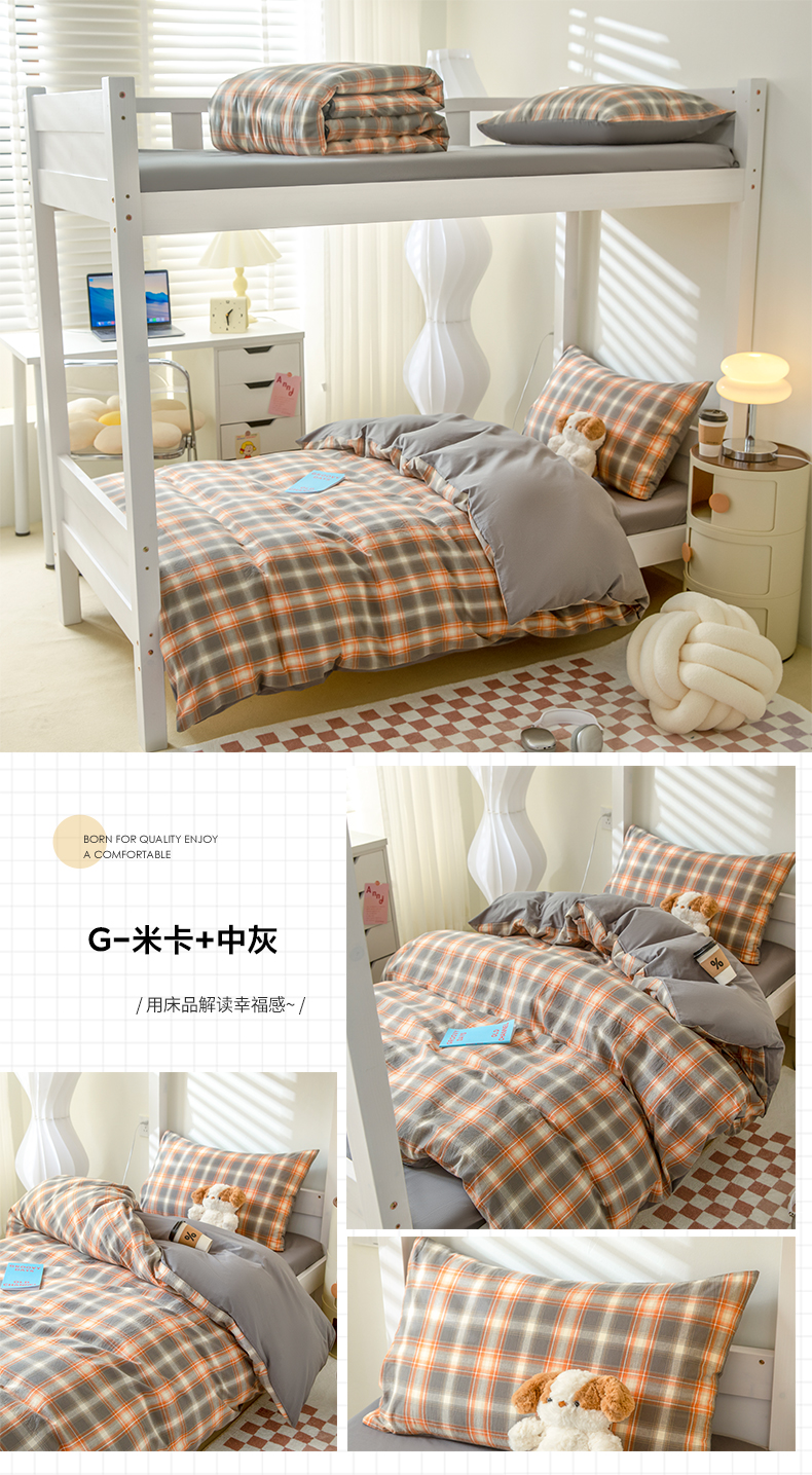 商品名称:2024新款水洗棉无印格子学生三件套(床笠床套款) G-米卡+中灰