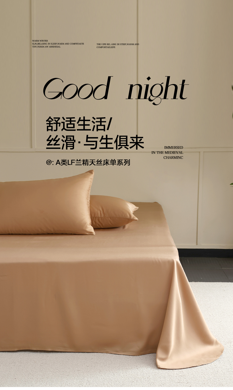 商品名称:轩和 2025新款A类LF60S兰精天丝单品床单 拿铁咖