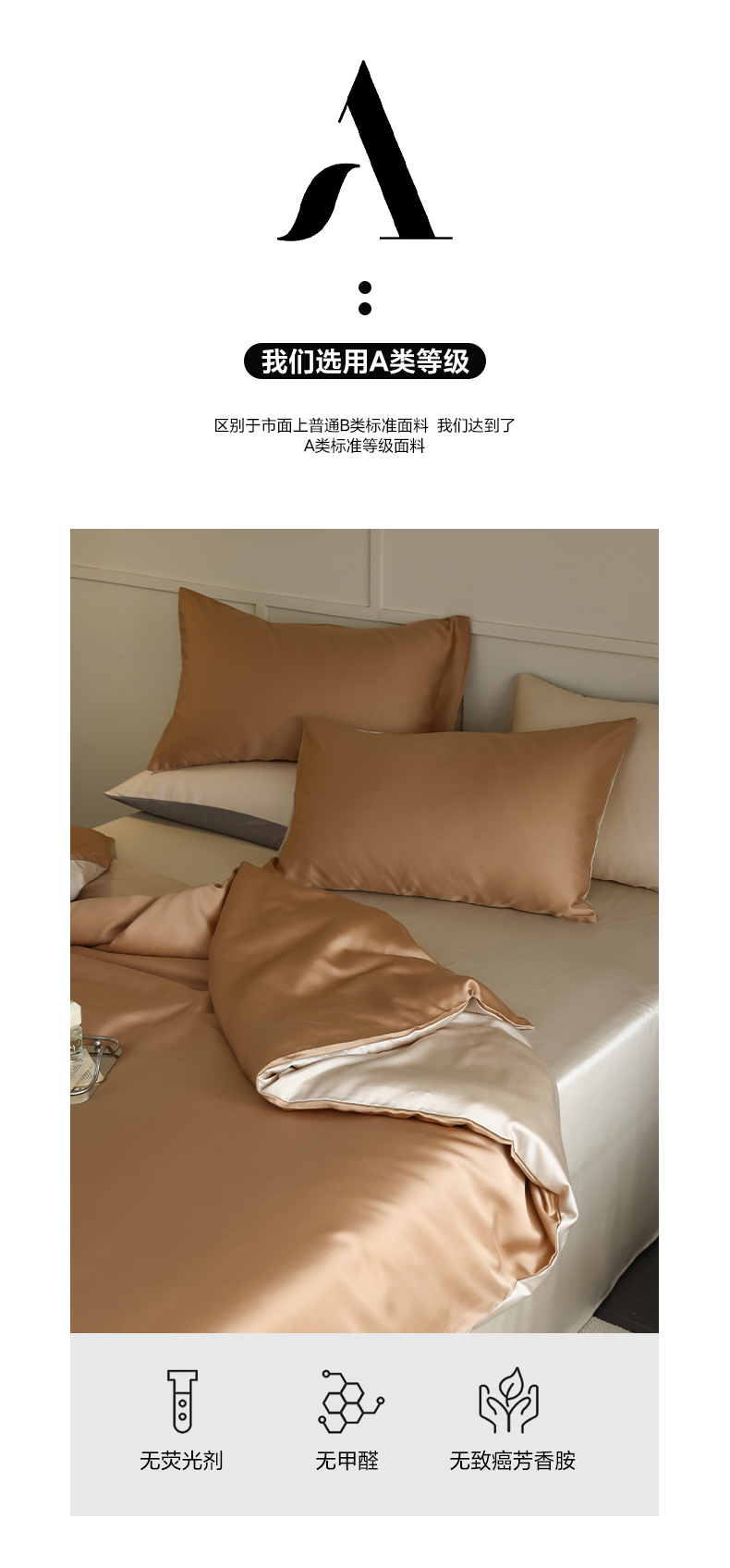商品名称:轩和 2025新款A类LF60S兰精天丝单品枕套 拿铁咖+铂光金