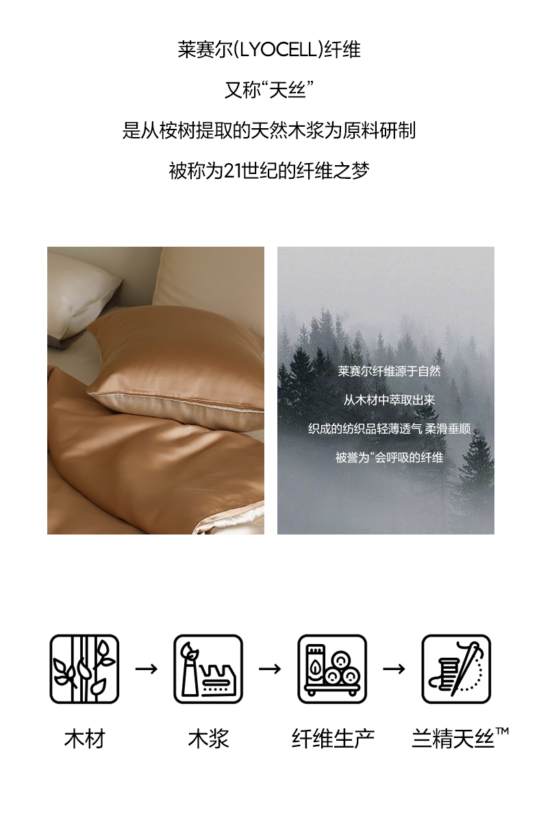 轩和 2025新款A类LF60S兰精天丝单品枕套 拿铁咖+铂光金