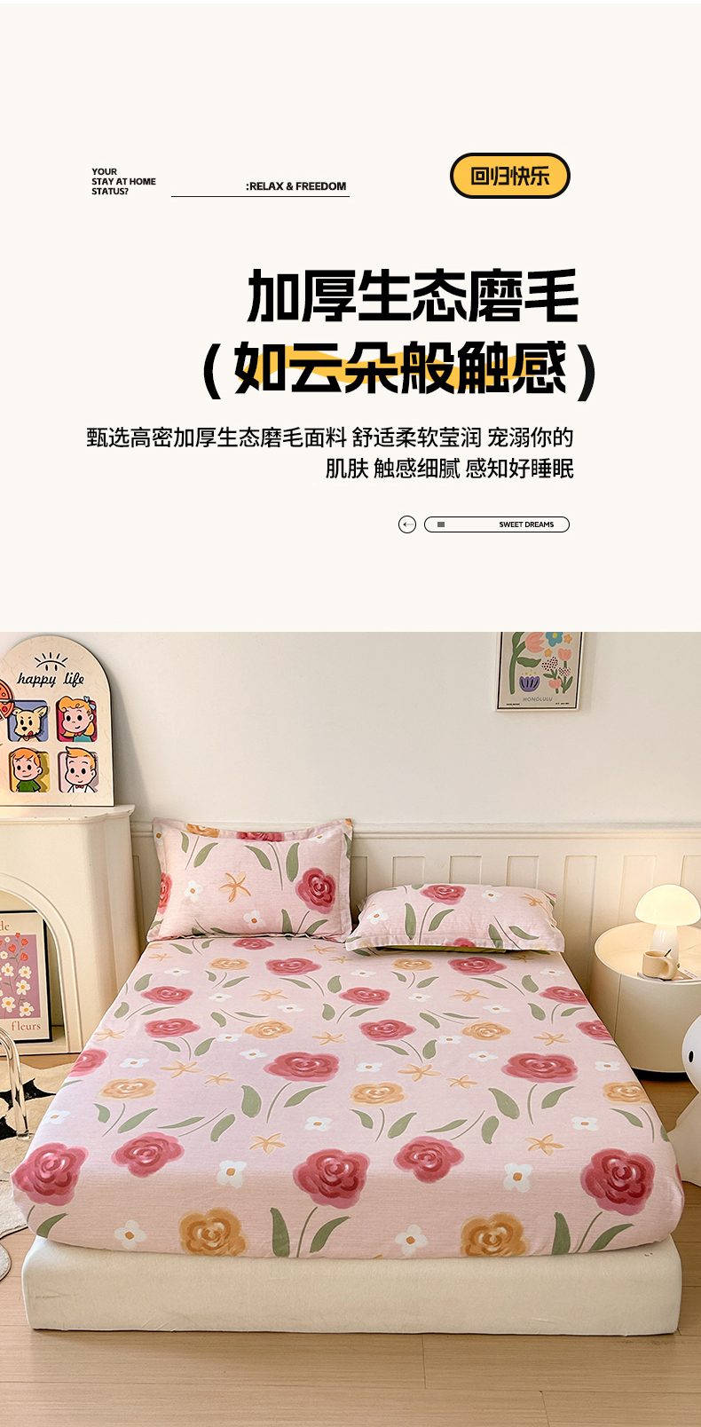 商品名称:2025新款加厚生态磨毛床笠四件套 知否