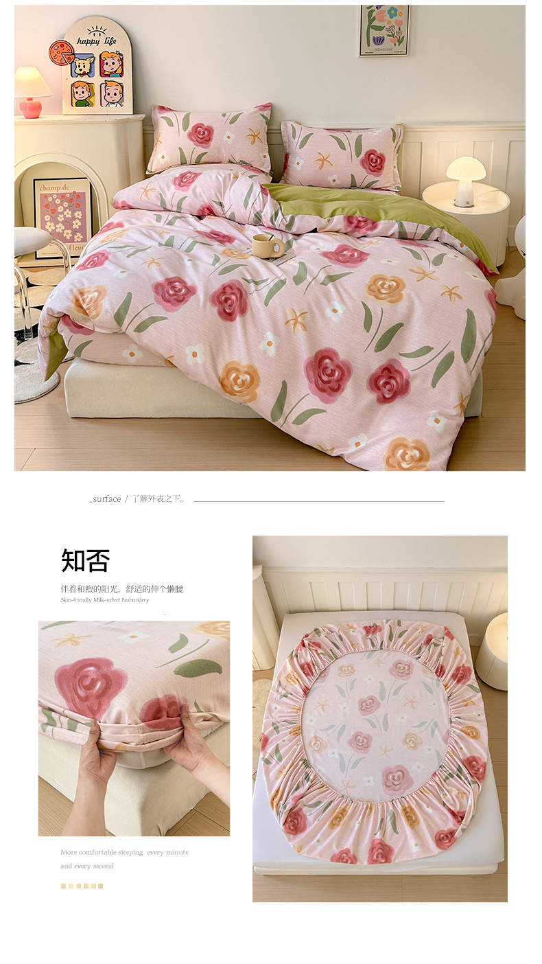 2025新款加厚生态磨毛床笠四件套 知否
