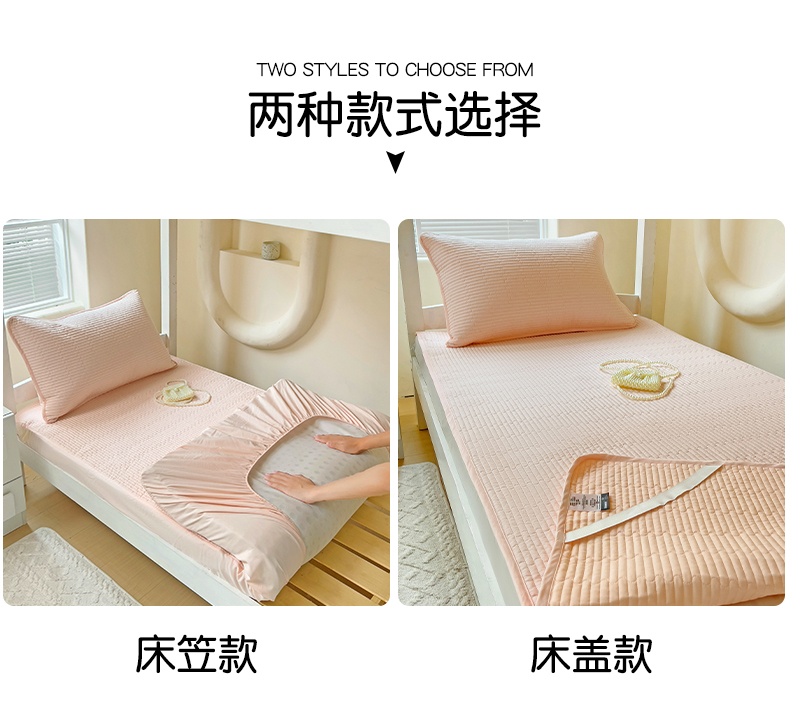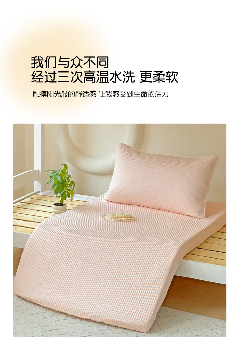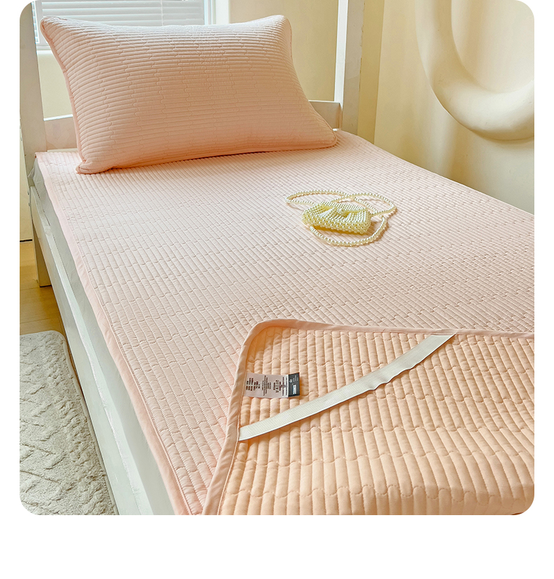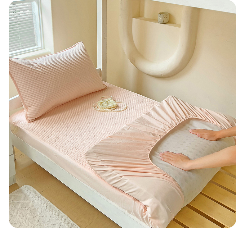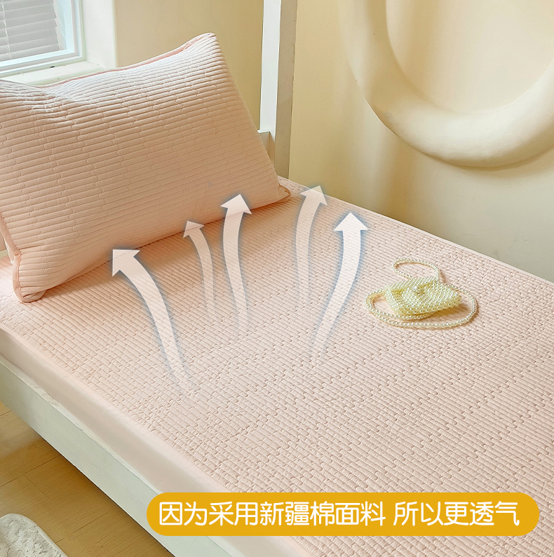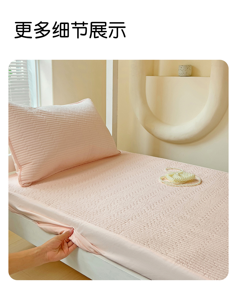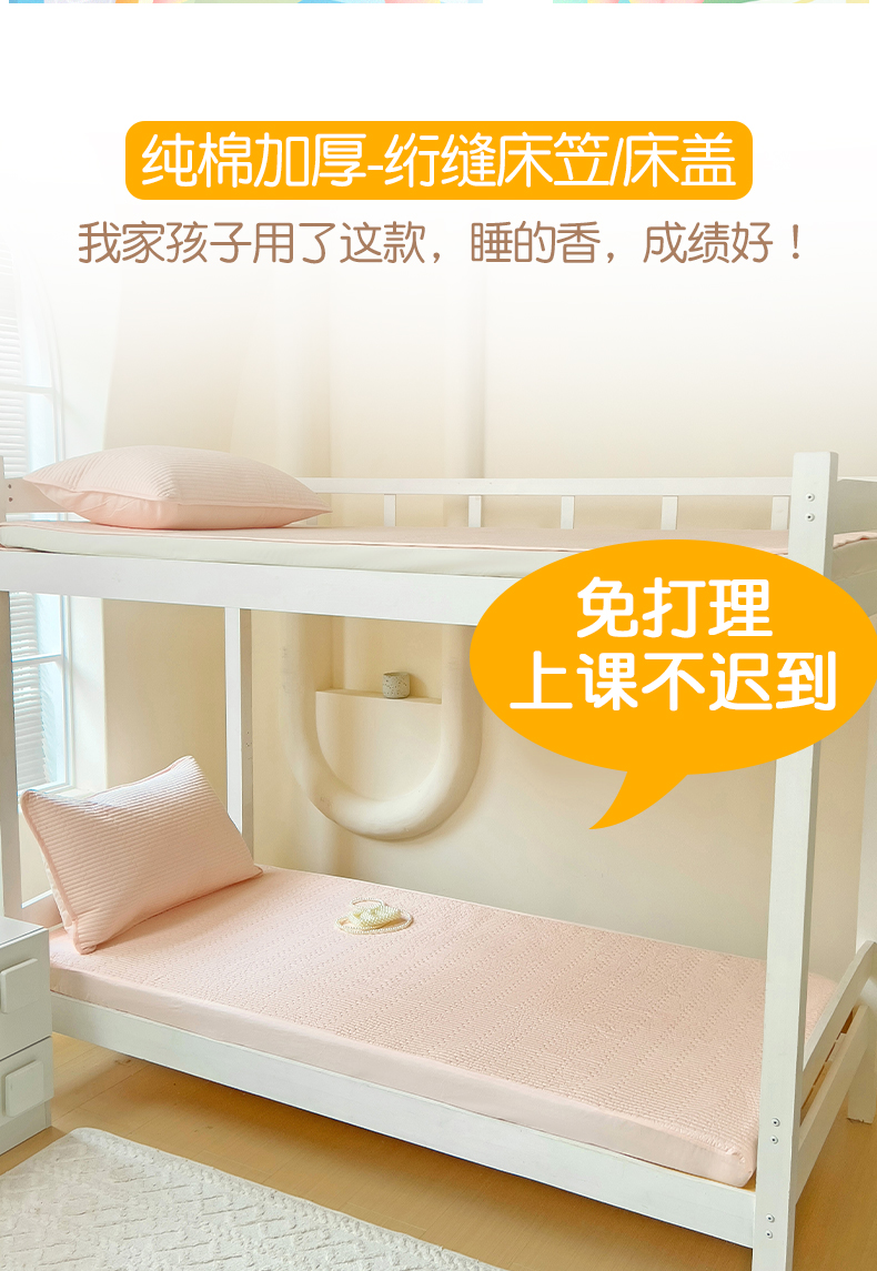 商品名称:漫时光 2025新款纯棉素色床盖学生宿舍夹棉床笠 樱花粉