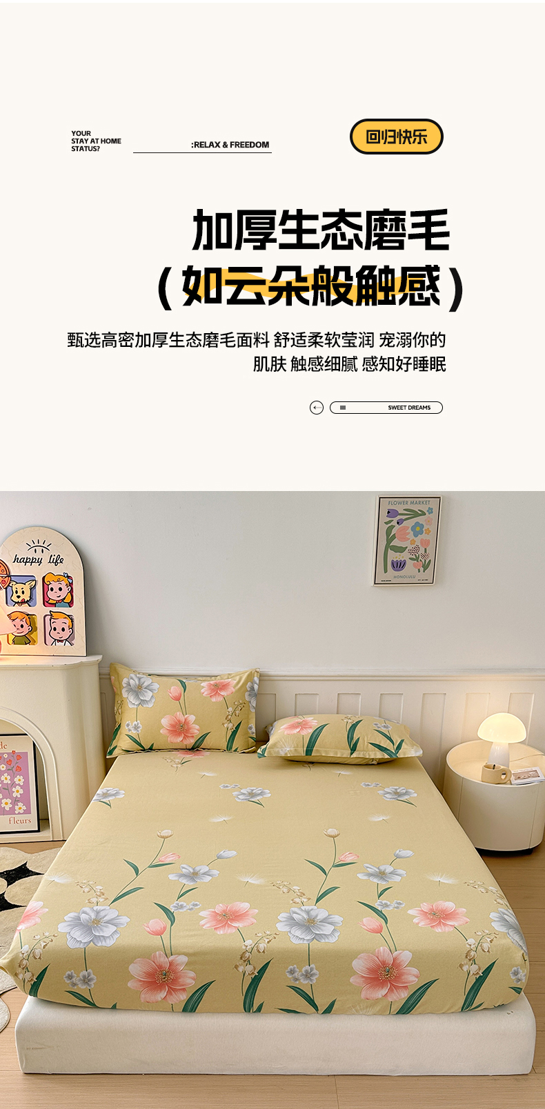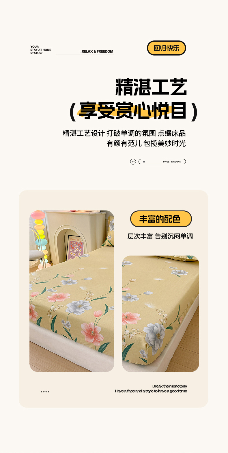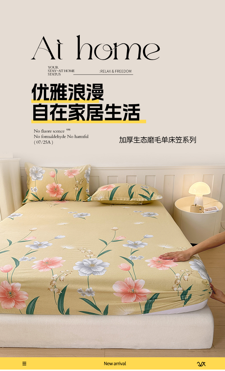 商品名称:2025新款加厚生态磨毛单床笠 金花浮梦