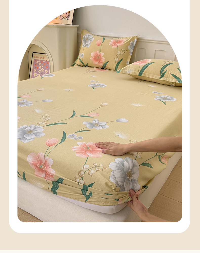 2025新款加厚生态磨毛单床笠 金花浮梦