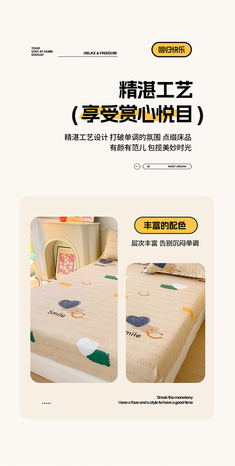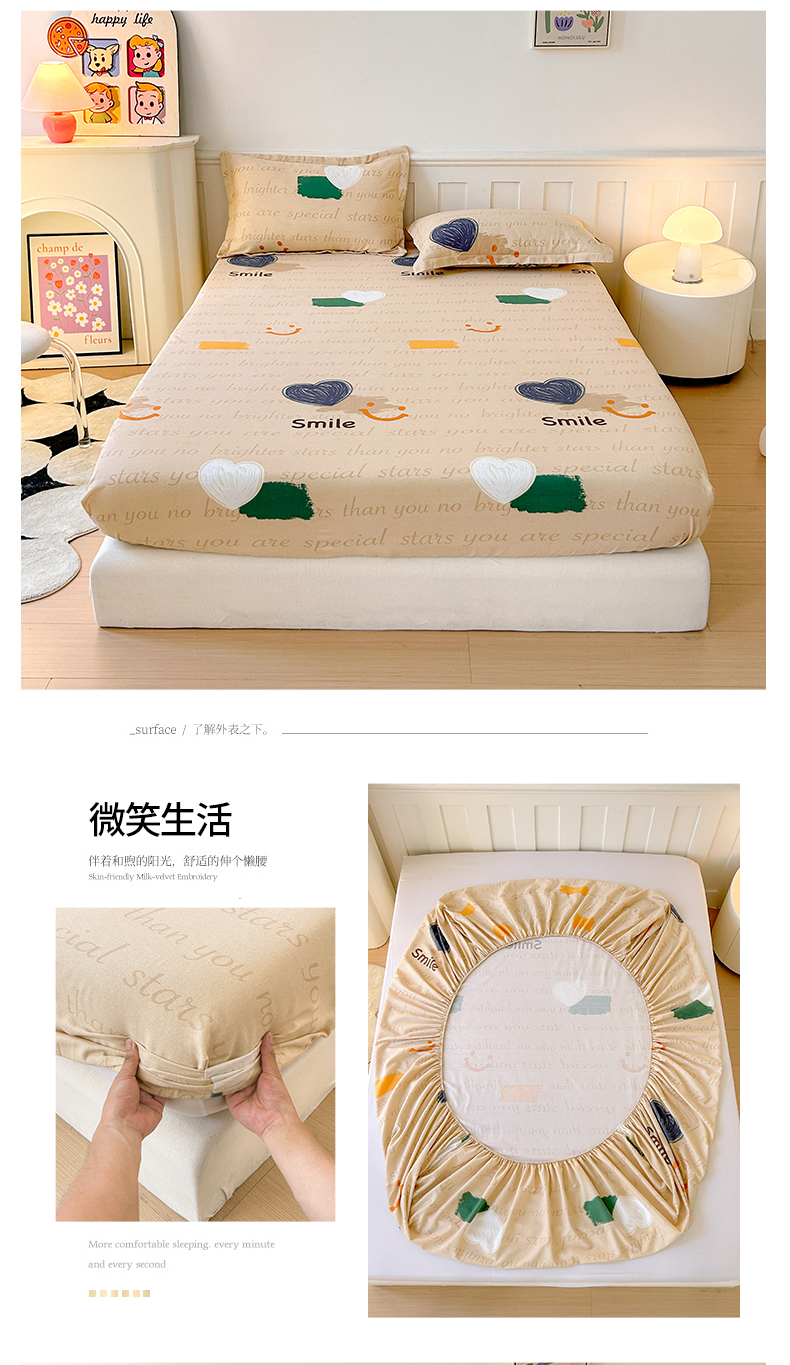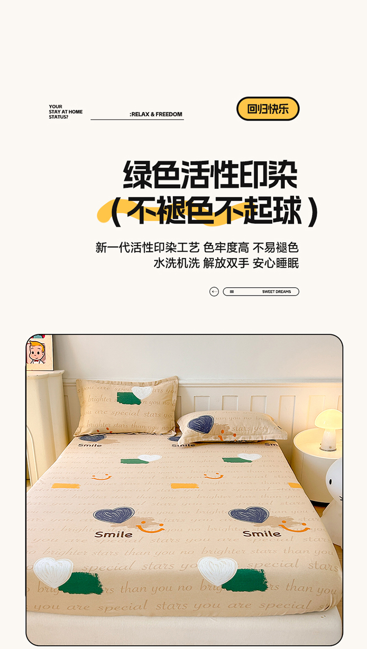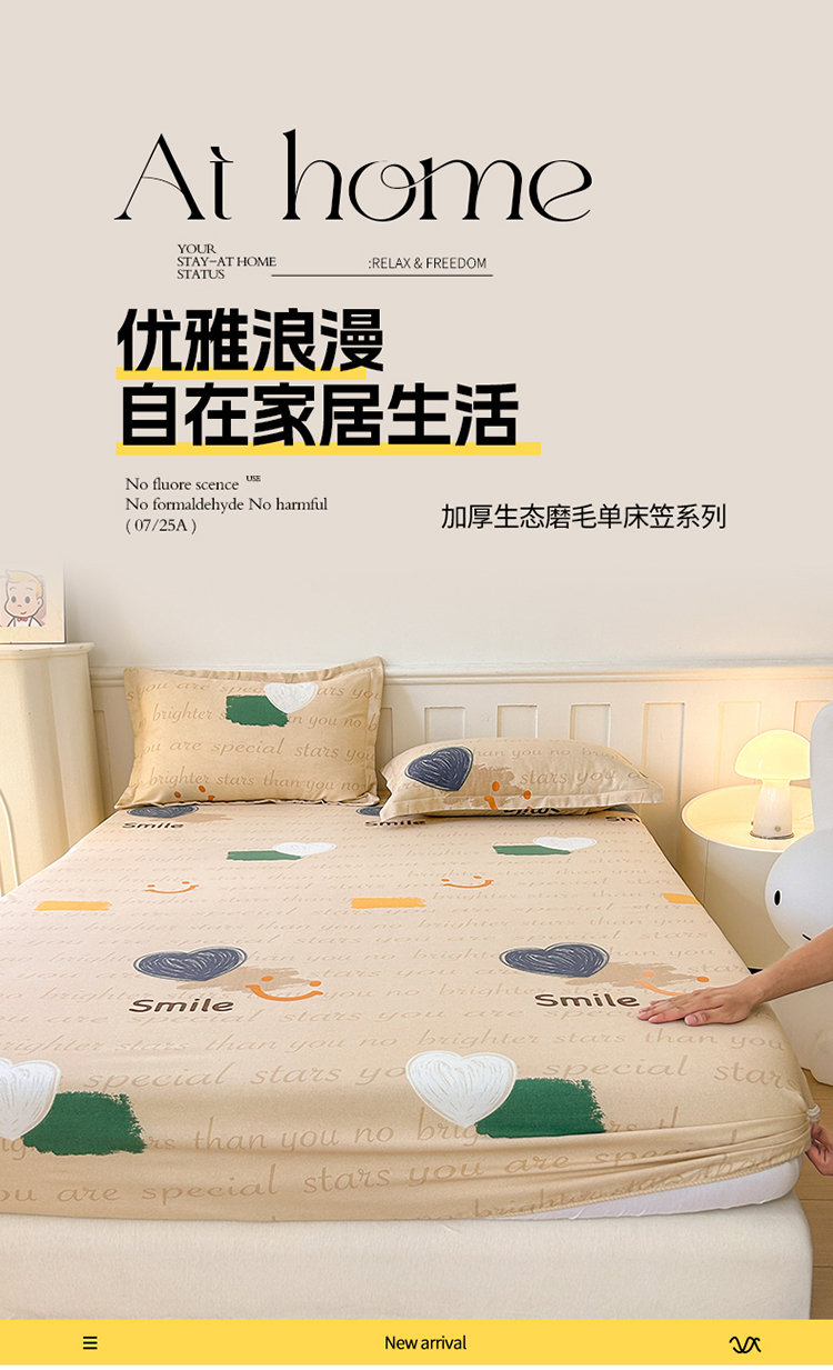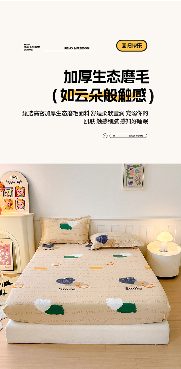 商品名称:2025新款加厚生态磨毛单床笠 微笑生活