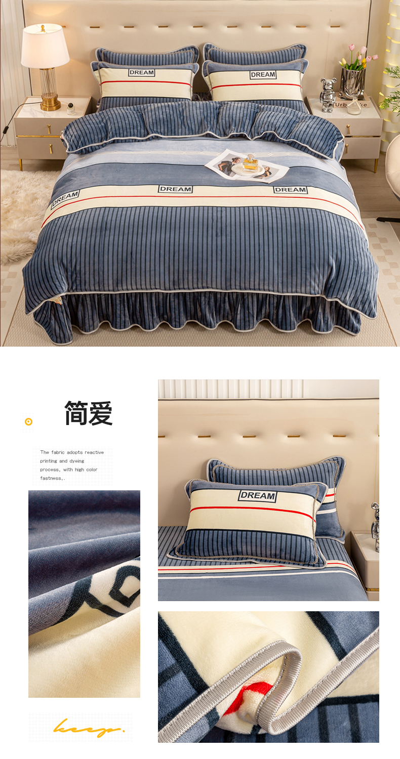 当前位置: 91家纺网 > 商品网购 > 床品套件 > 四件套 > 牛奶绒四件套 > 博兰蒂 2025新款床裙款高克重牛奶绒印花四件套 简爱