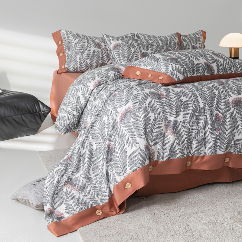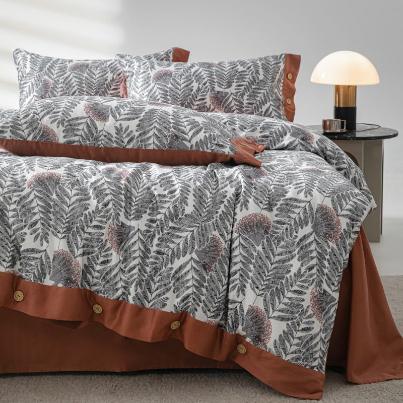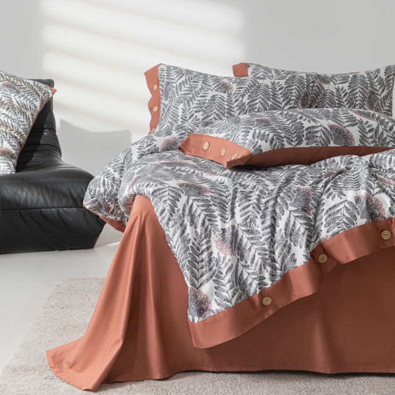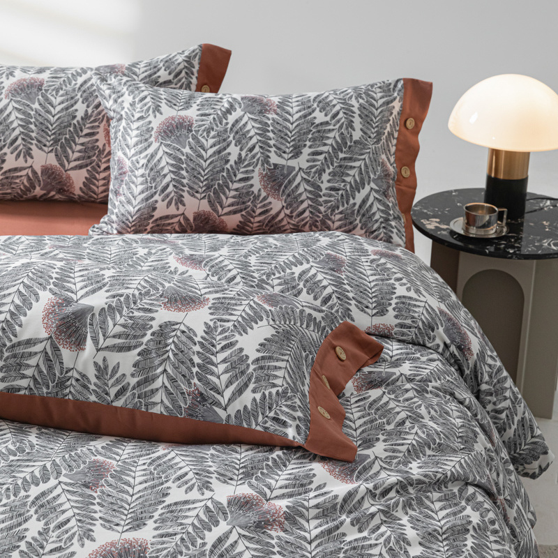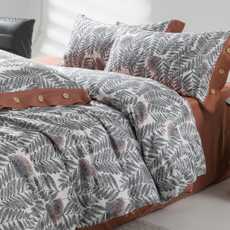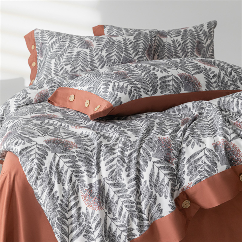 商品名称:栩裕纺织 2024新款丝棉臻绒磨毛数码印花四件套--兰羽系列 兰羽-叶韵