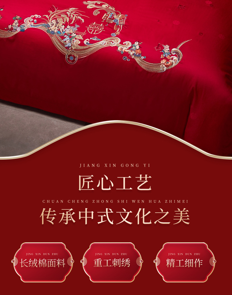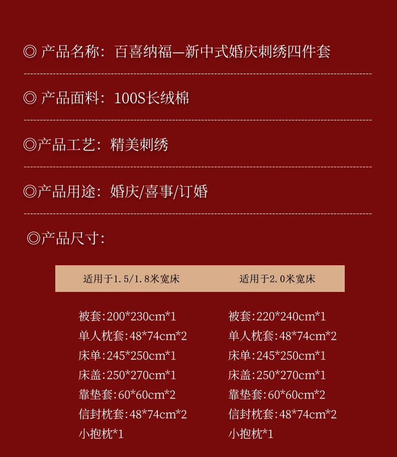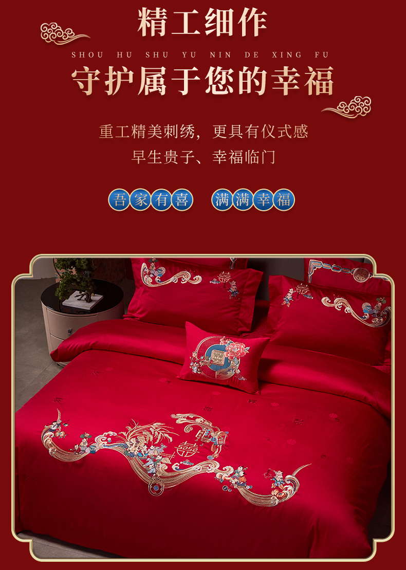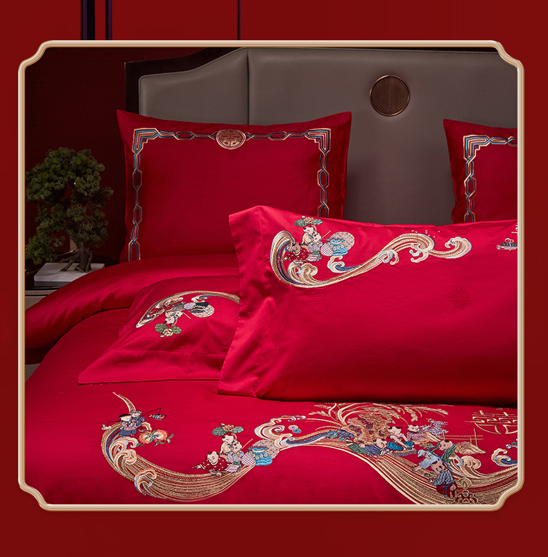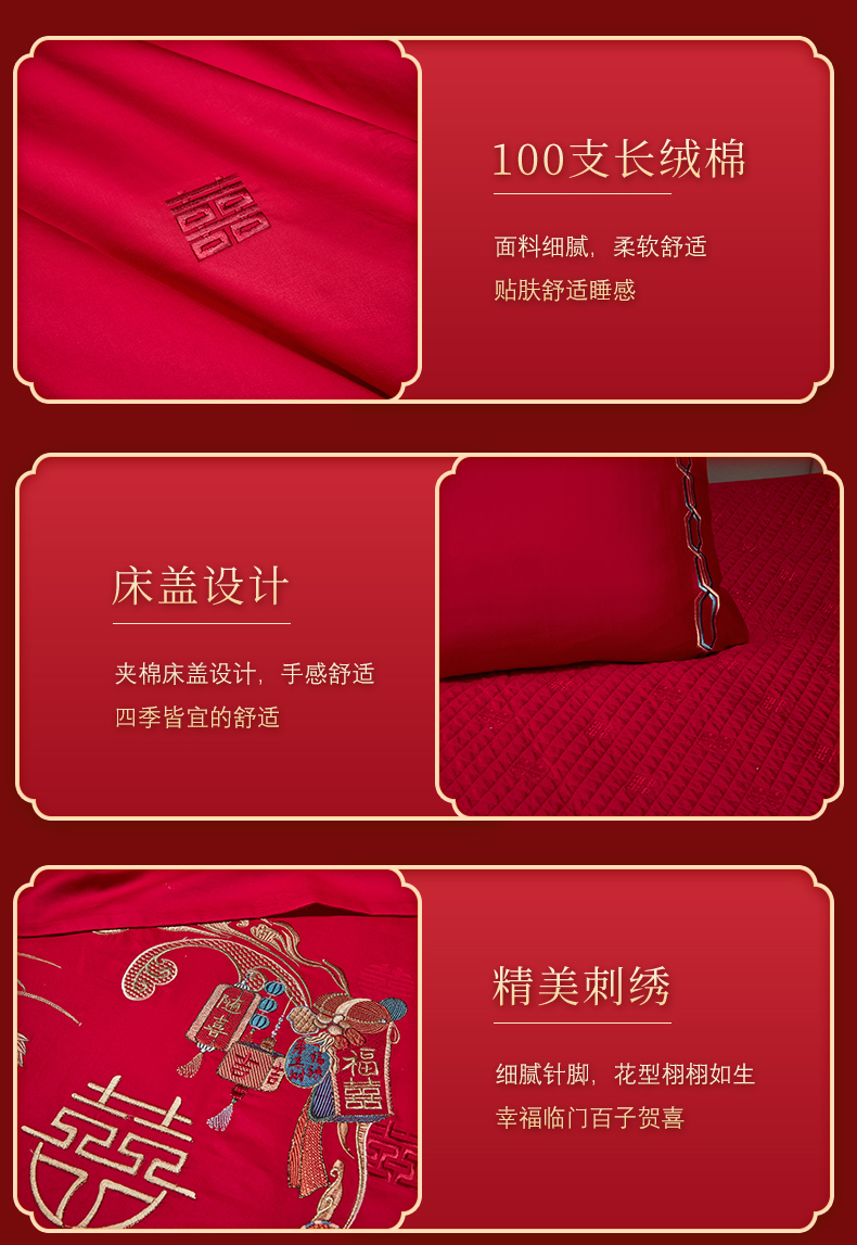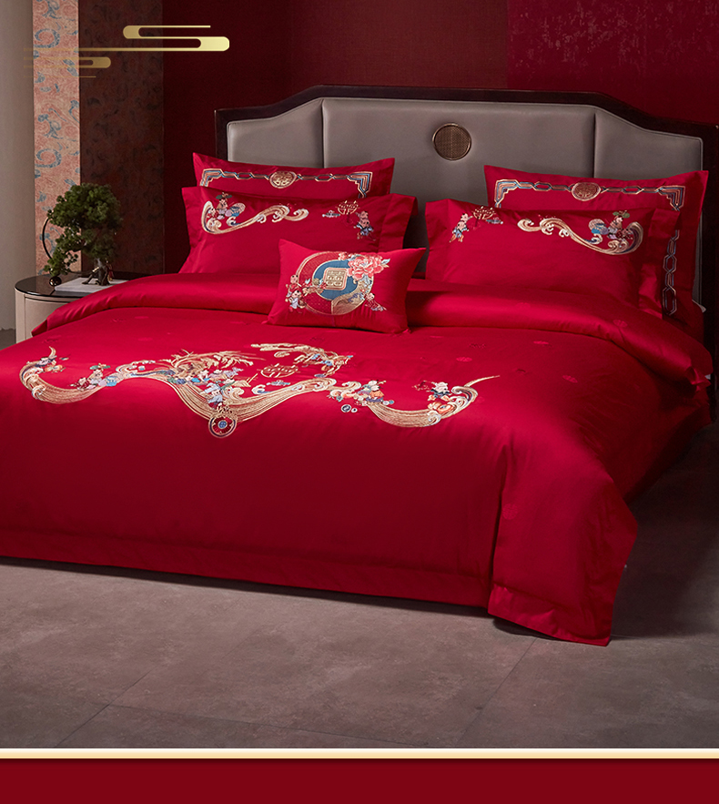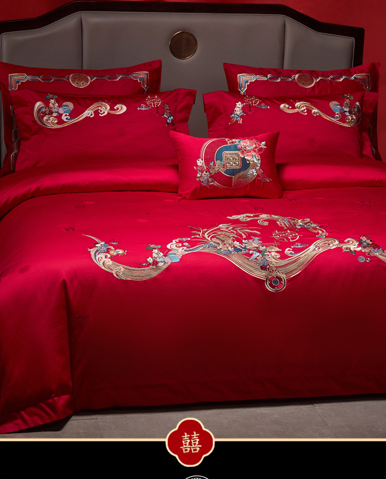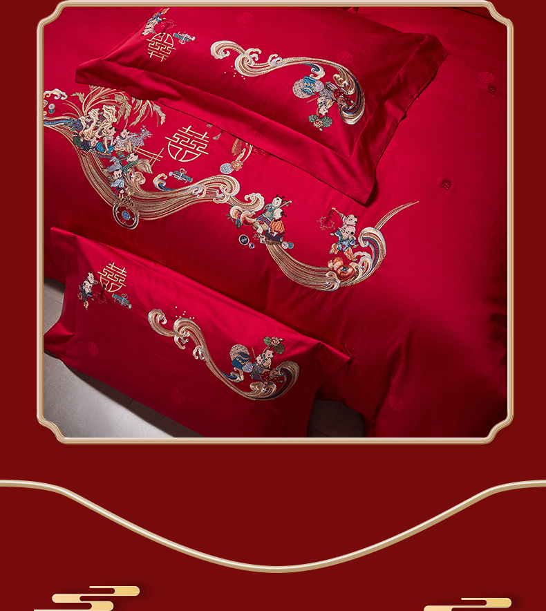 当前位置: 91家纺网 > 商品网购 > 床品套件 > 四件套 > 全棉普通四件套 > 2025新款40s全棉长绒棉新中式刺绣婚庆四件套多件套 百喜纳福