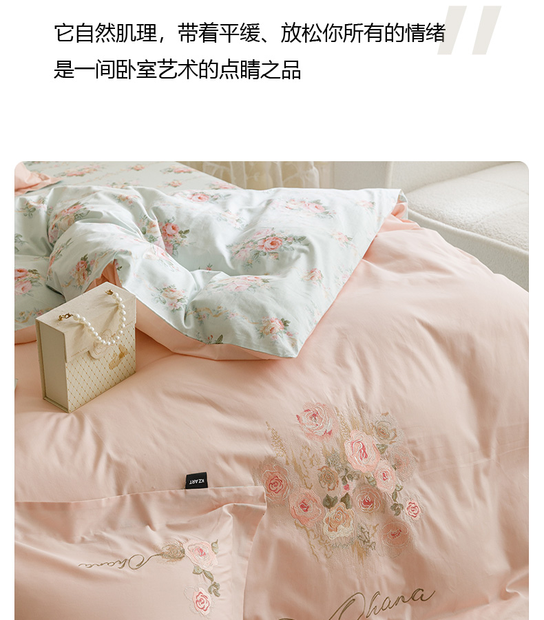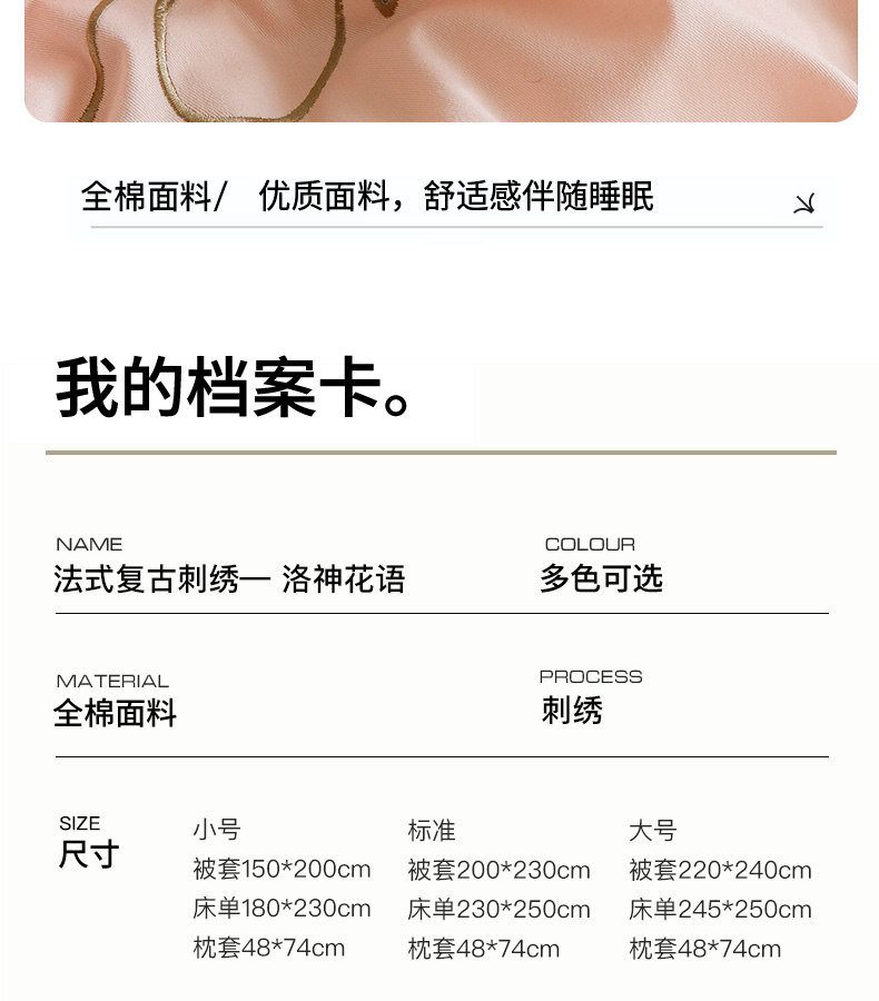 商品名称:卡姿家纺 2024秋冬法式复古刺绣— 洛神花语 洛神花语粉