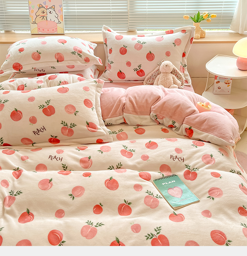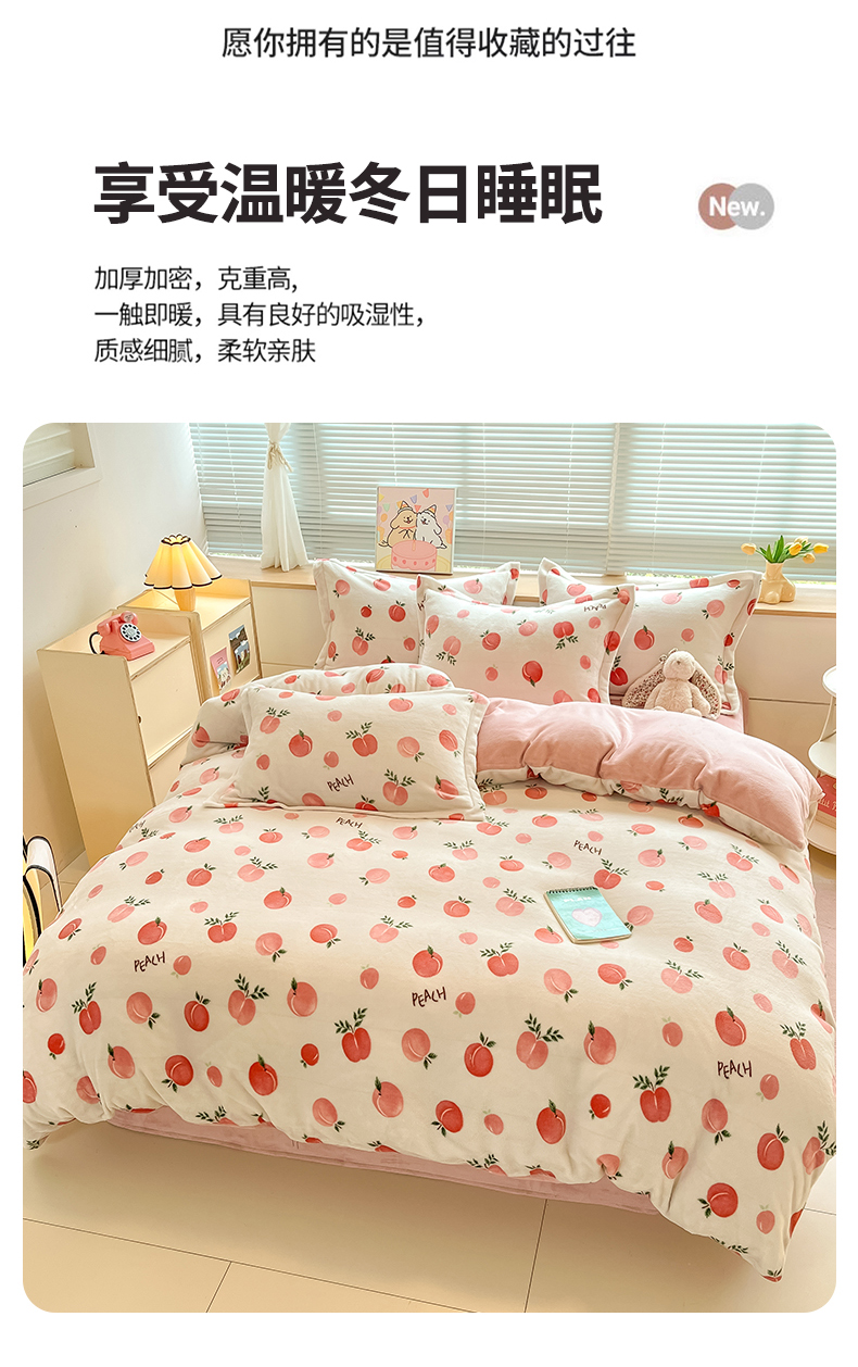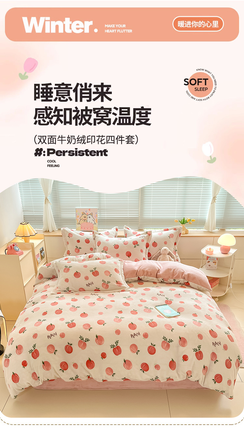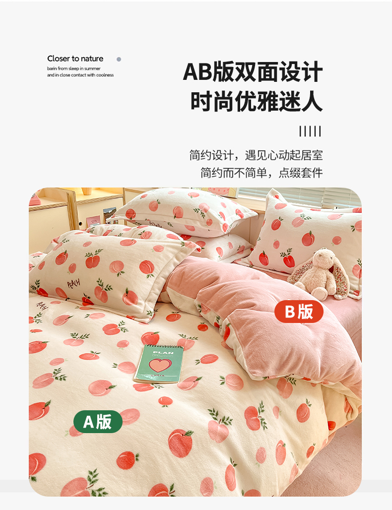 2024新款A类AB版加厚保暖双面牛奶绒印花四件套--小清新系列 水果