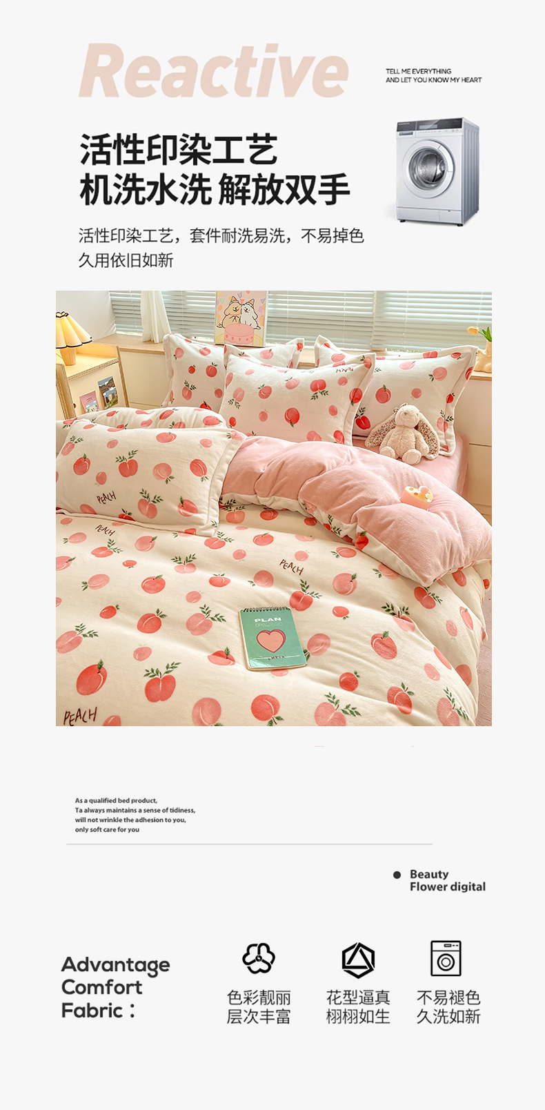 商品名称:2024新款A类AB版加厚保暖双面牛奶绒印花四件套--小清新系列 水果