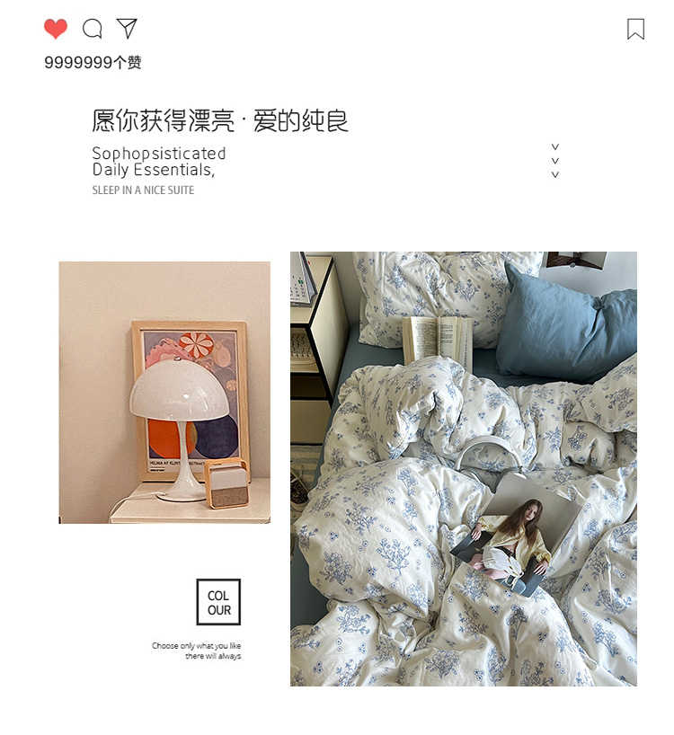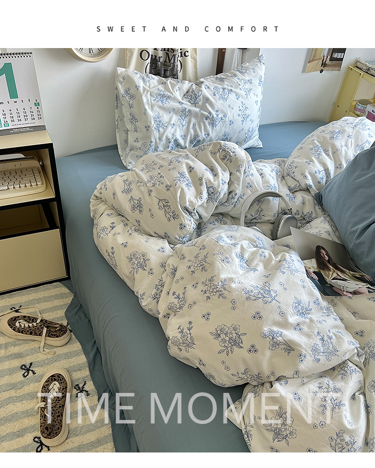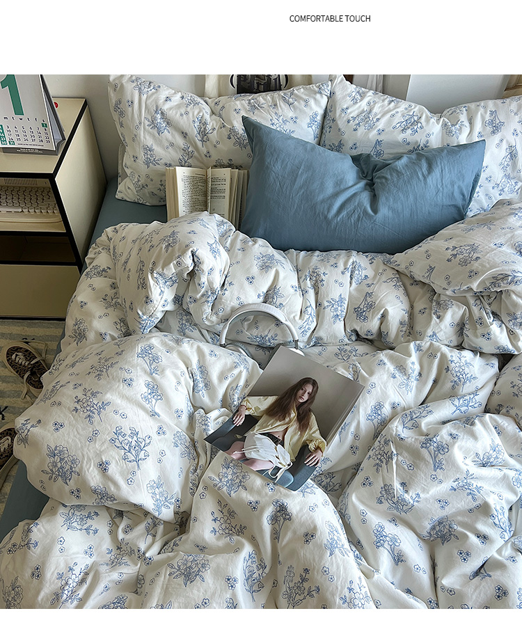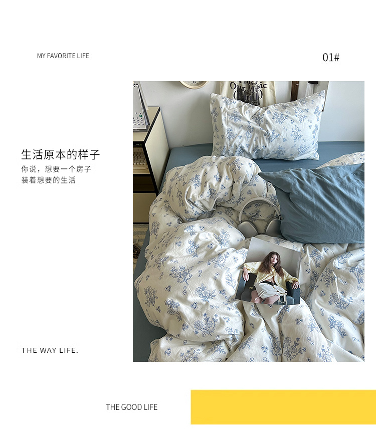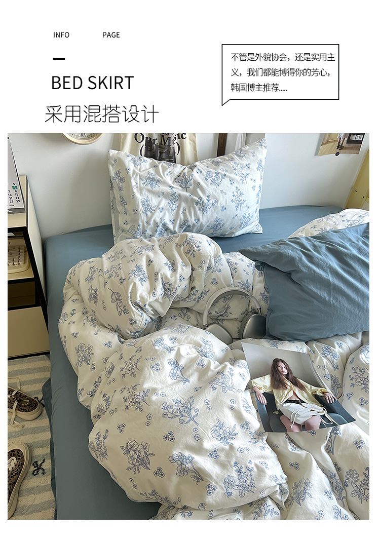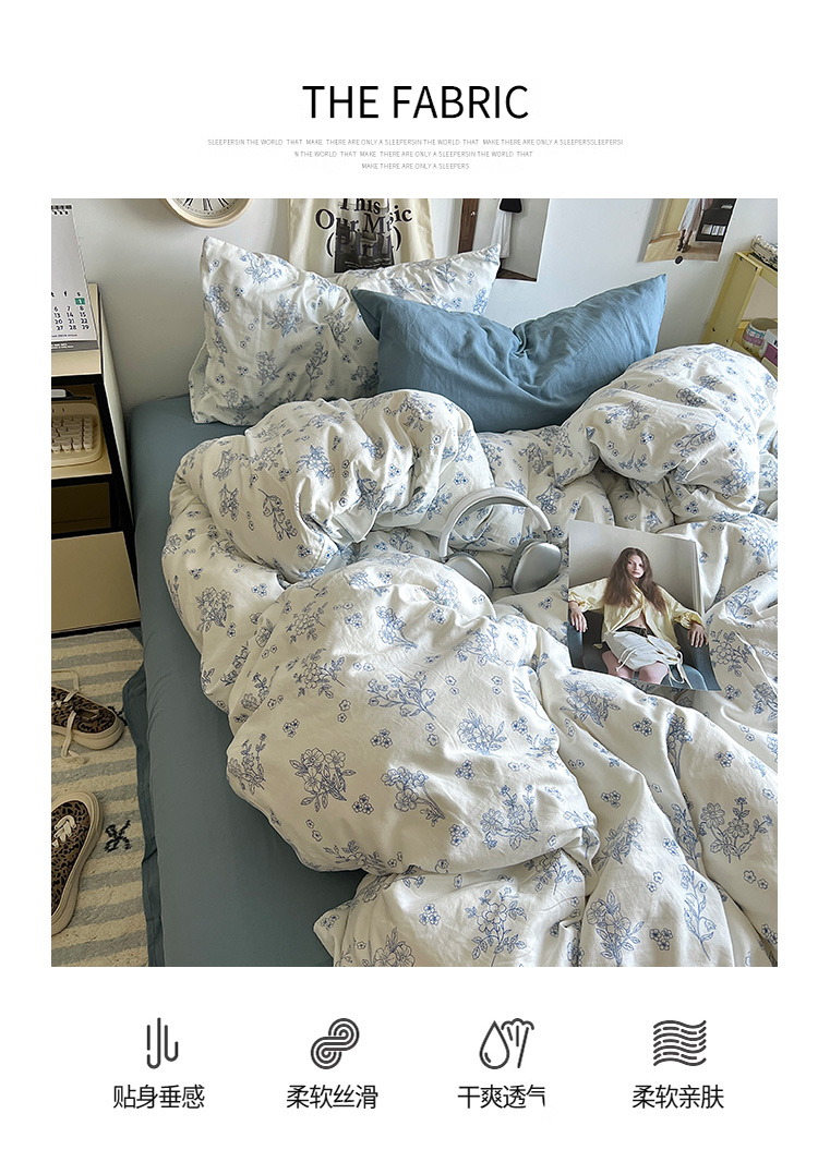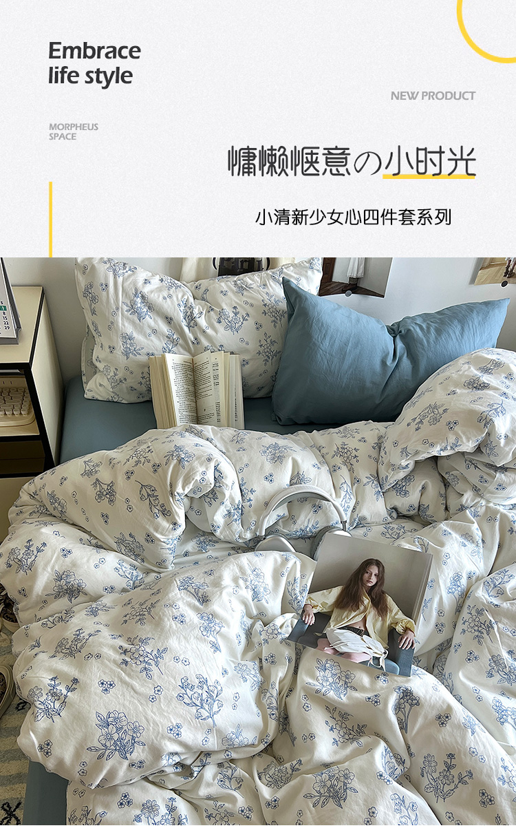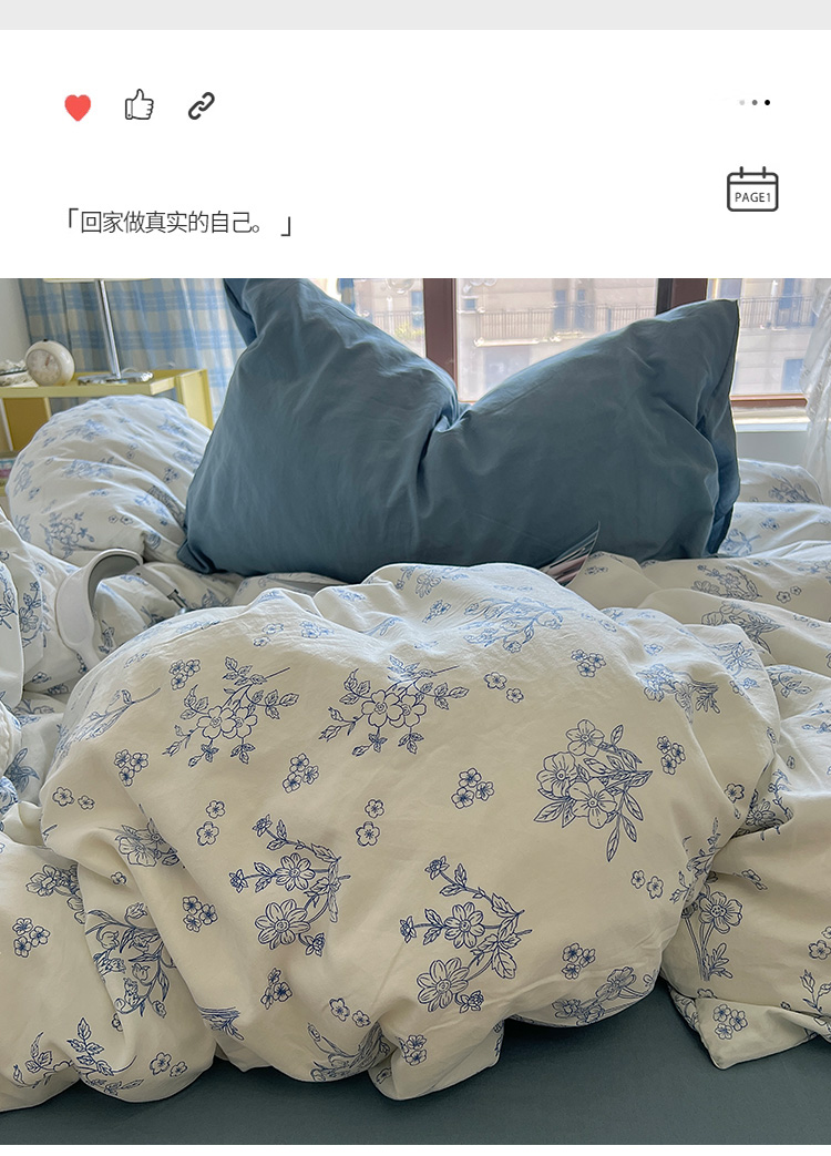 当前位置: 91家纺网 > 商品网购 > 床品套件 > 四件套 > 水洗棉四件套 > 原素 2024学生季专属A类水洗棉印花四件套 素描蓝叶