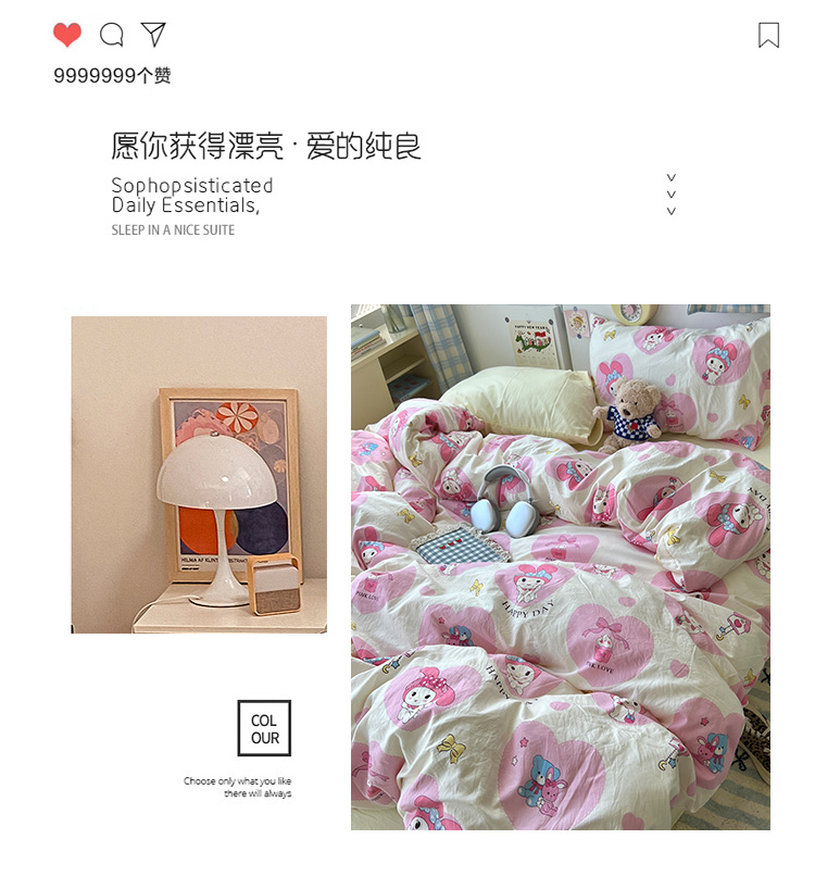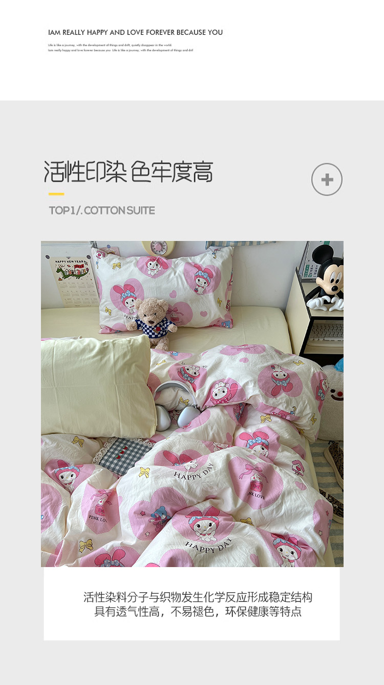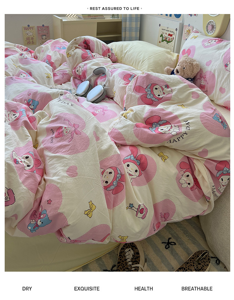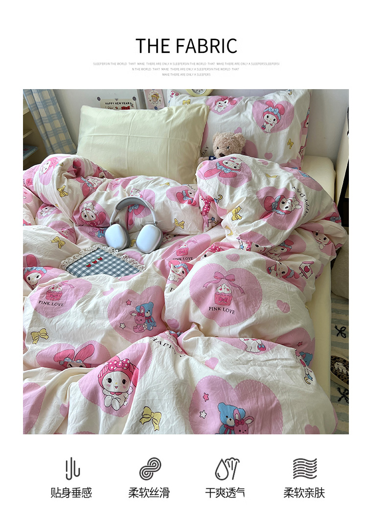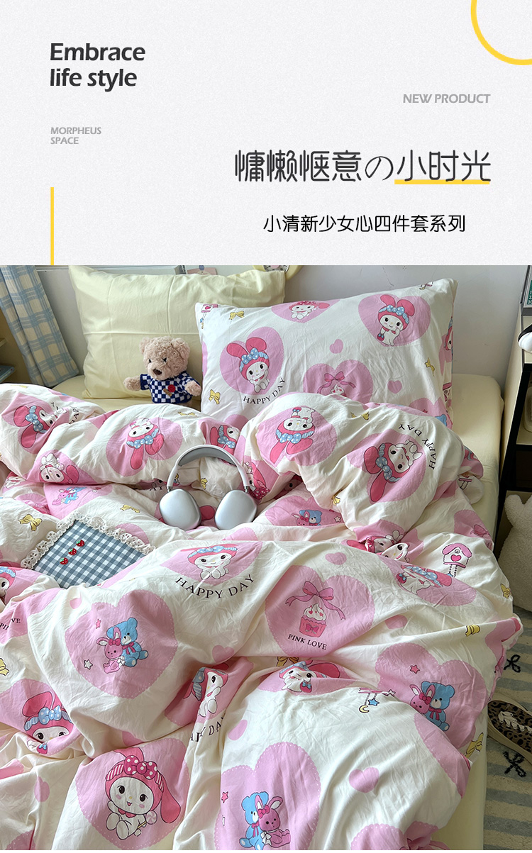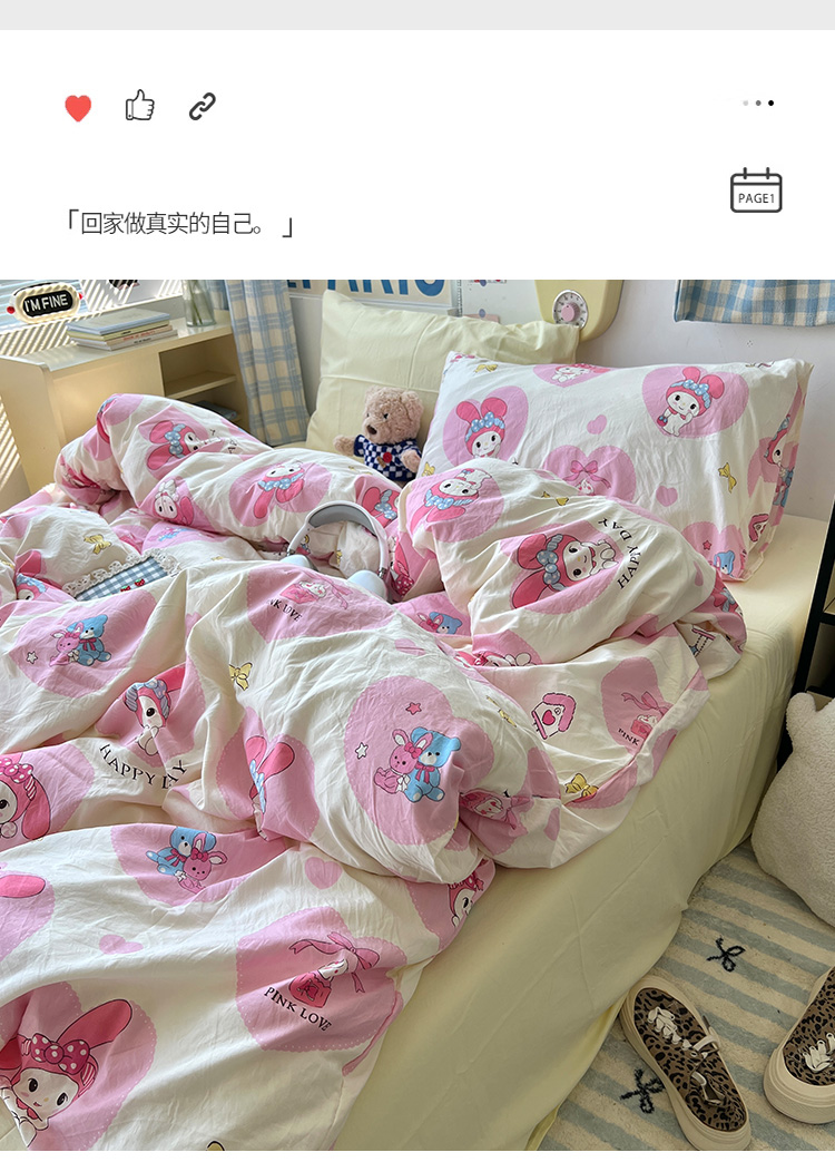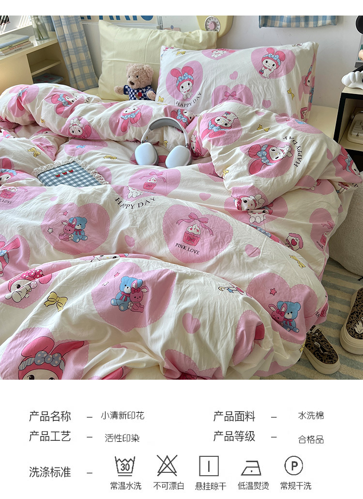 当前位置: 91家纺网 > 商品网购 > 床品套件 > 四件套 > 水洗棉四件套 > 原素 2024学生季专属A类水洗棉印花四件套 爱心兔兔