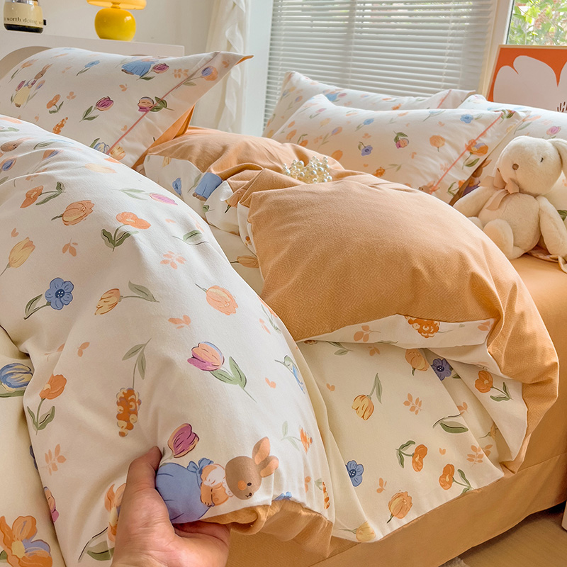 商品名称:2024新款全棉印花磨毛系列四件套 小兔庄园