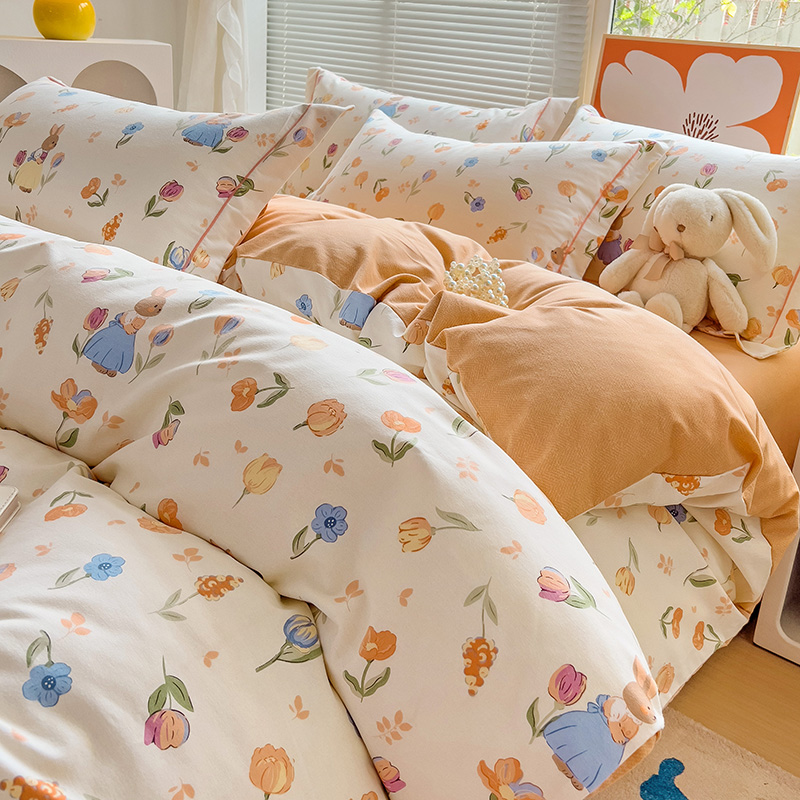 2024新款全棉印花磨毛系列四件套 小兔庄园