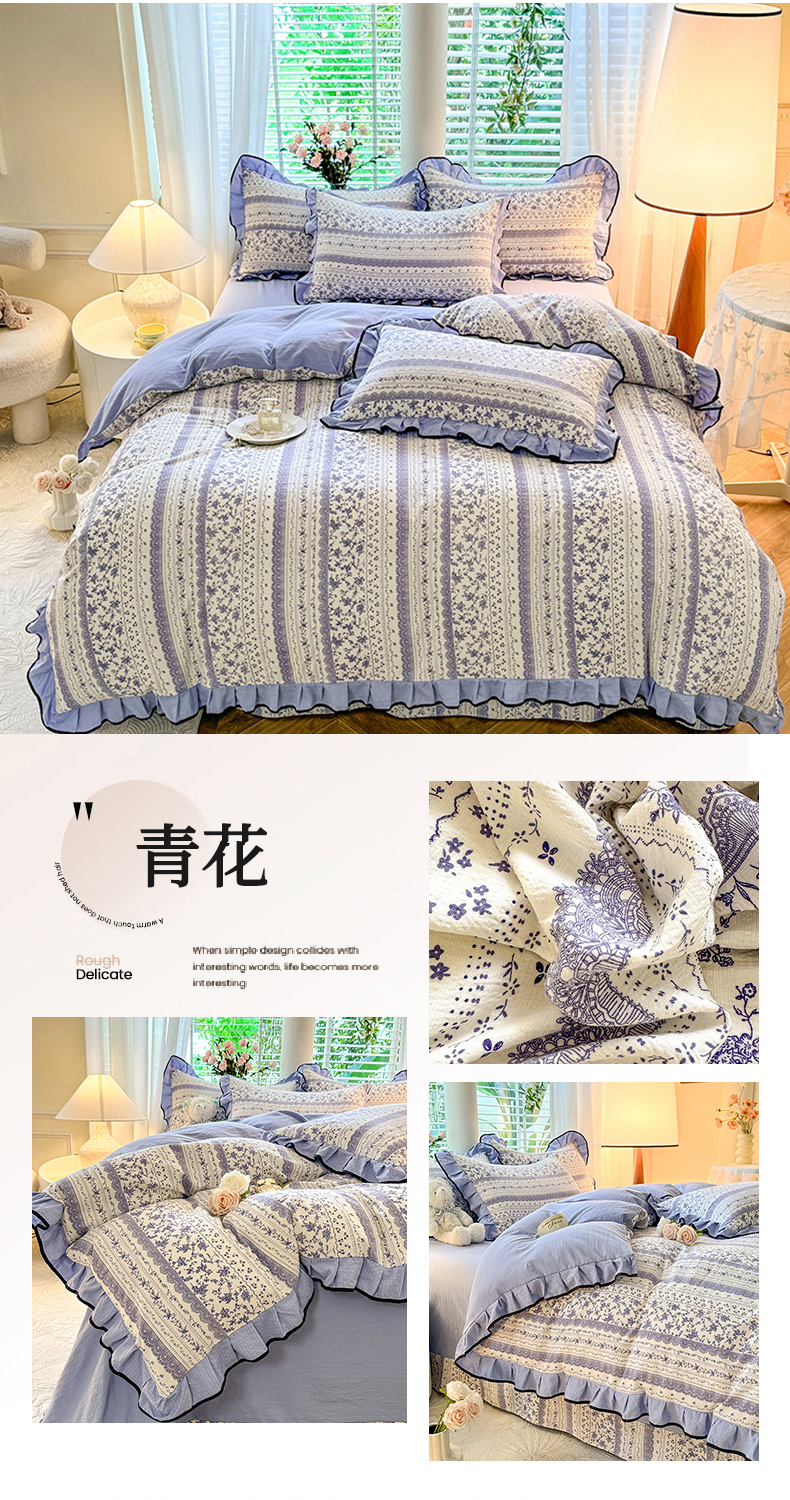 商品名称:韩约家纺 2024秋冬加厚1针织棉时尚花边款四件套 青花