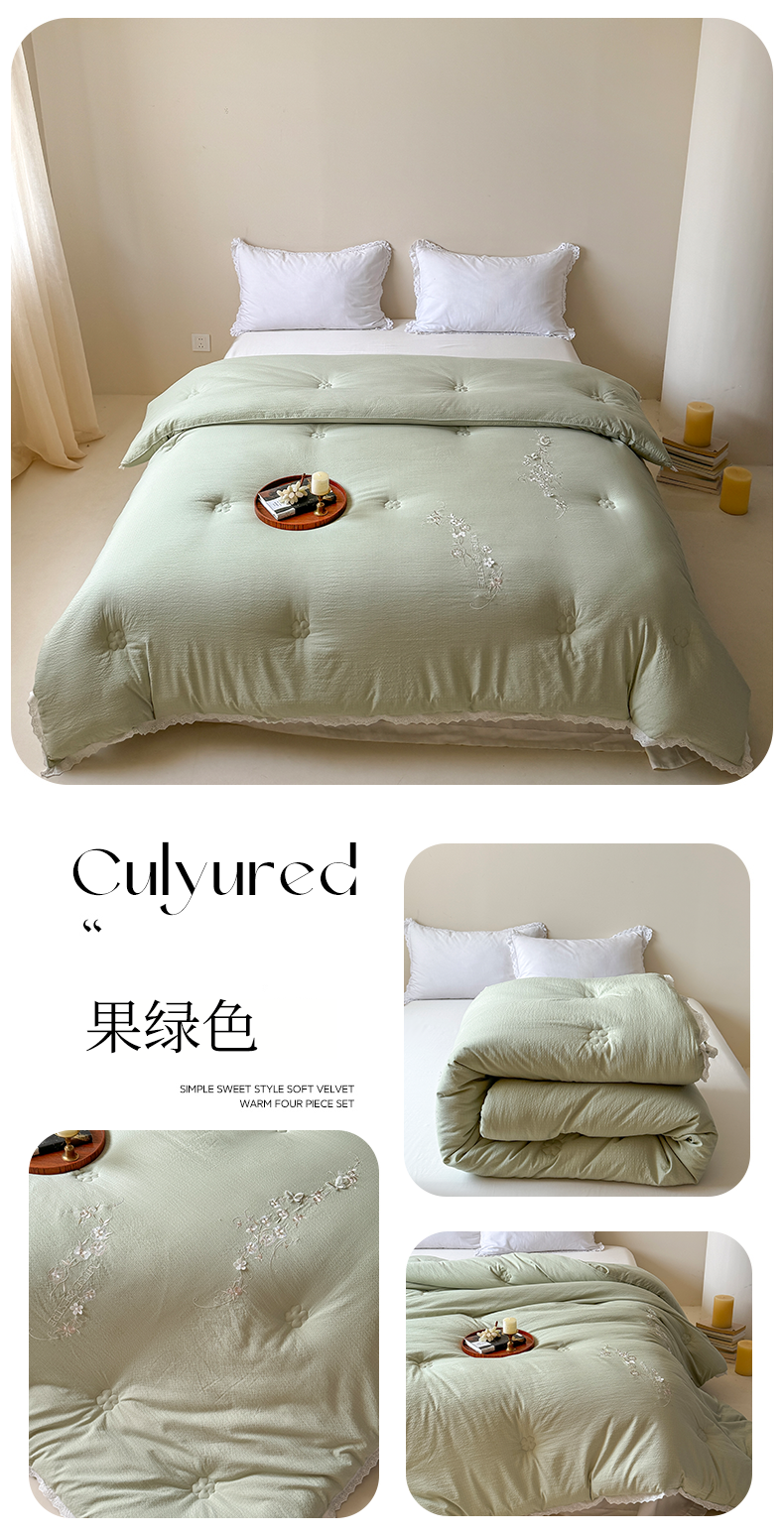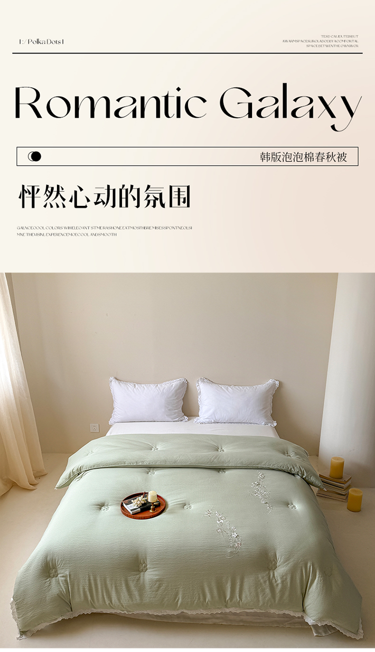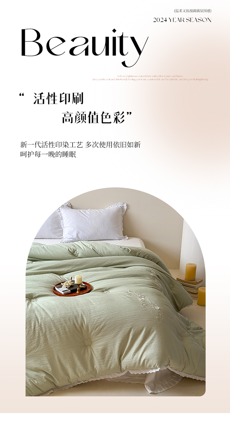 • 91家纺网 家纺一手货源 找家纺 亿莱鑫 2025新款韩版泡泡棉秋冬被 果绿