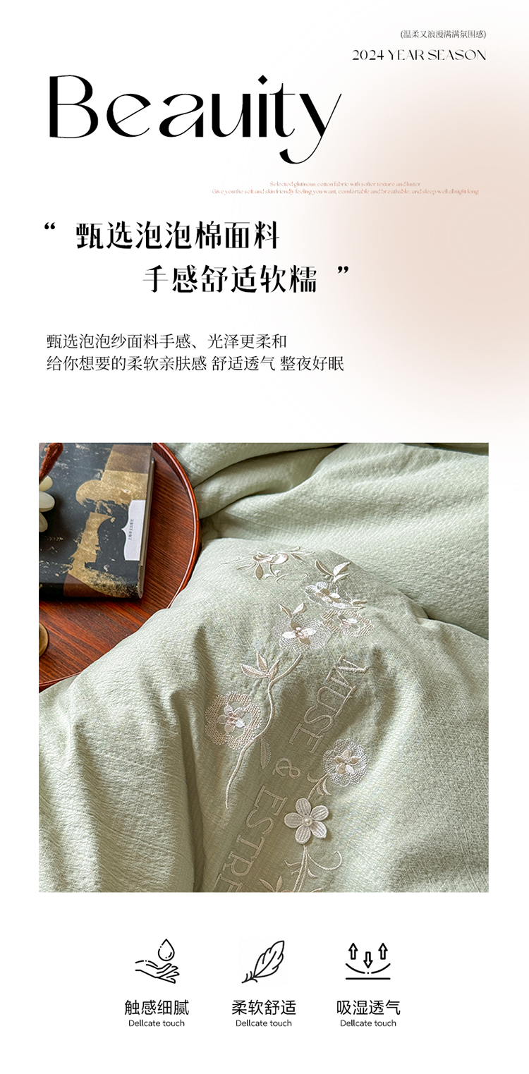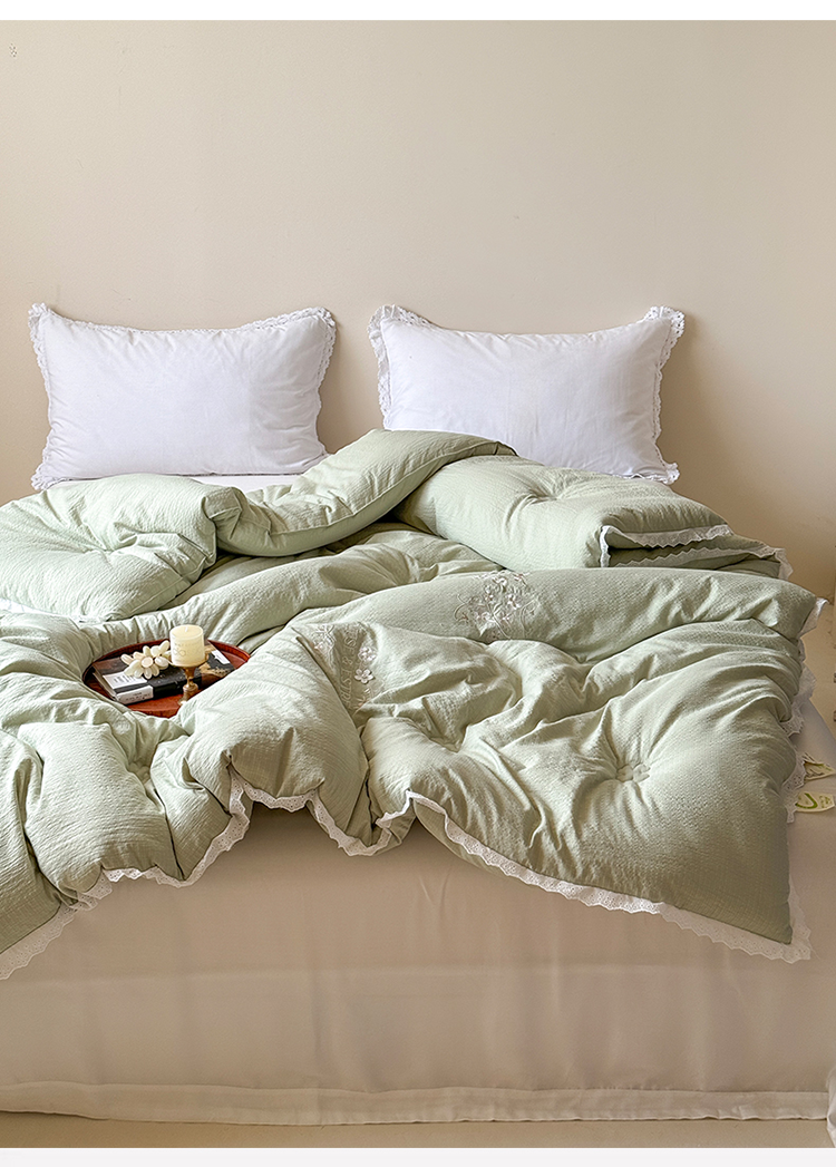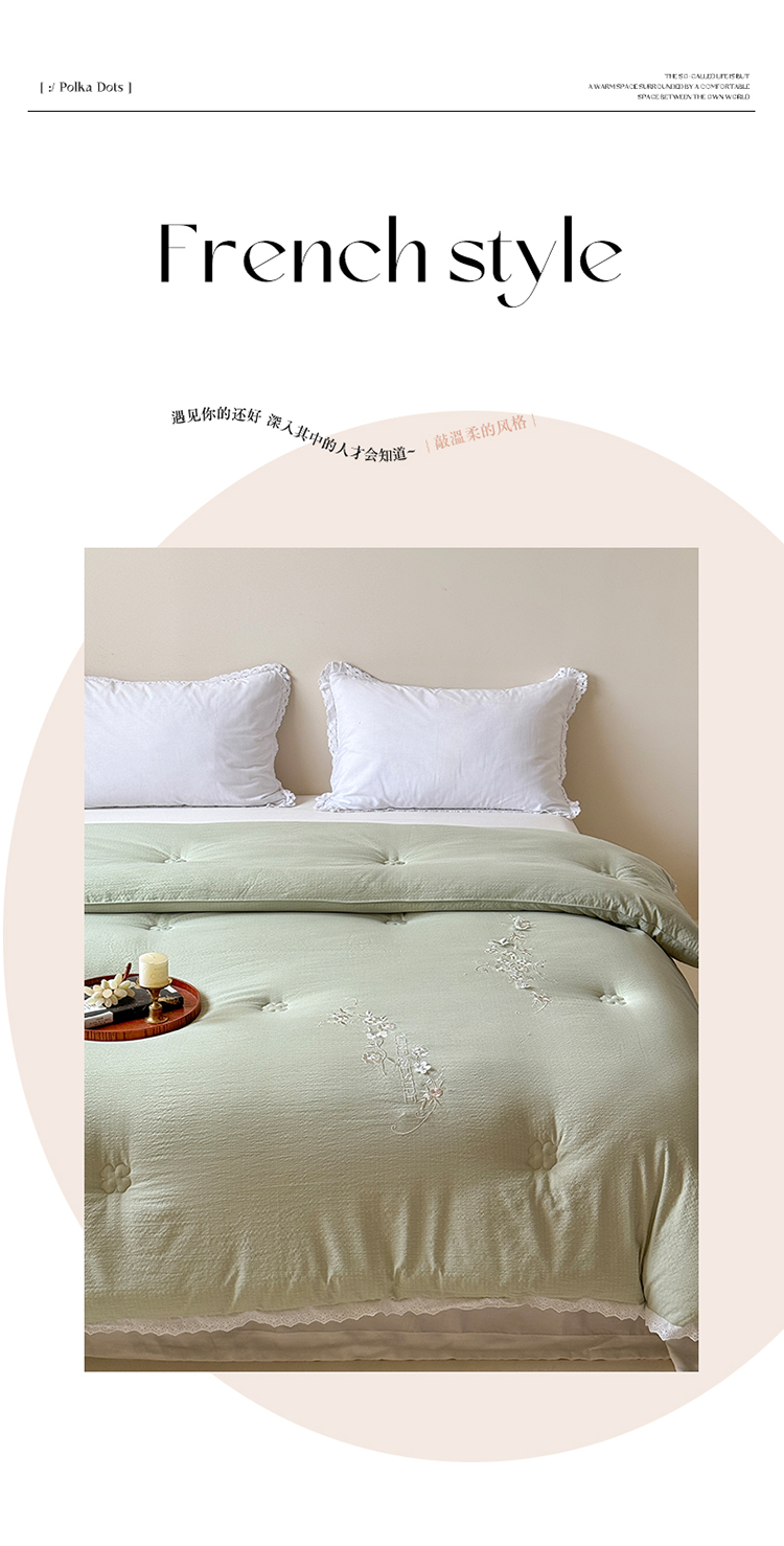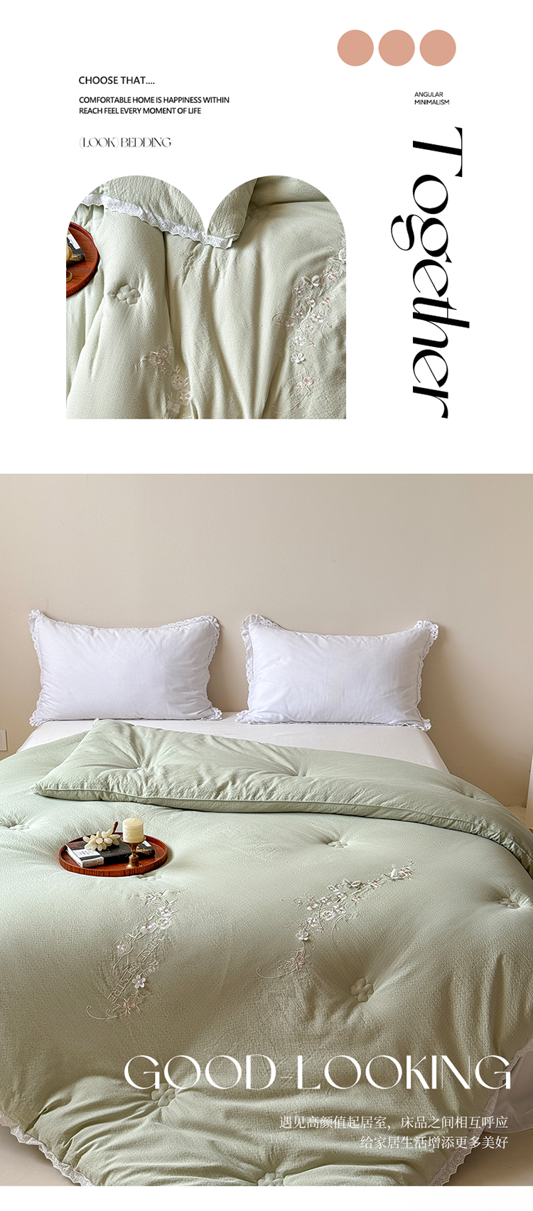 • 91家纺网 家纺一手货源 找家纺 亿莱鑫 2025新款韩版泡泡棉秋冬被 果绿