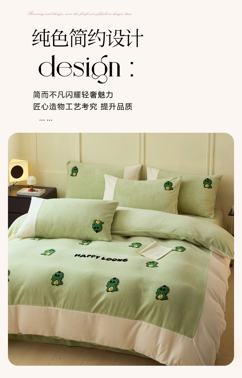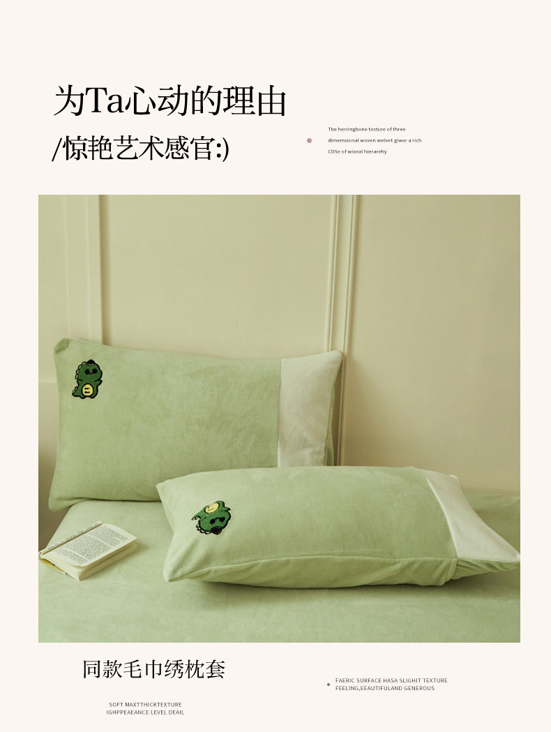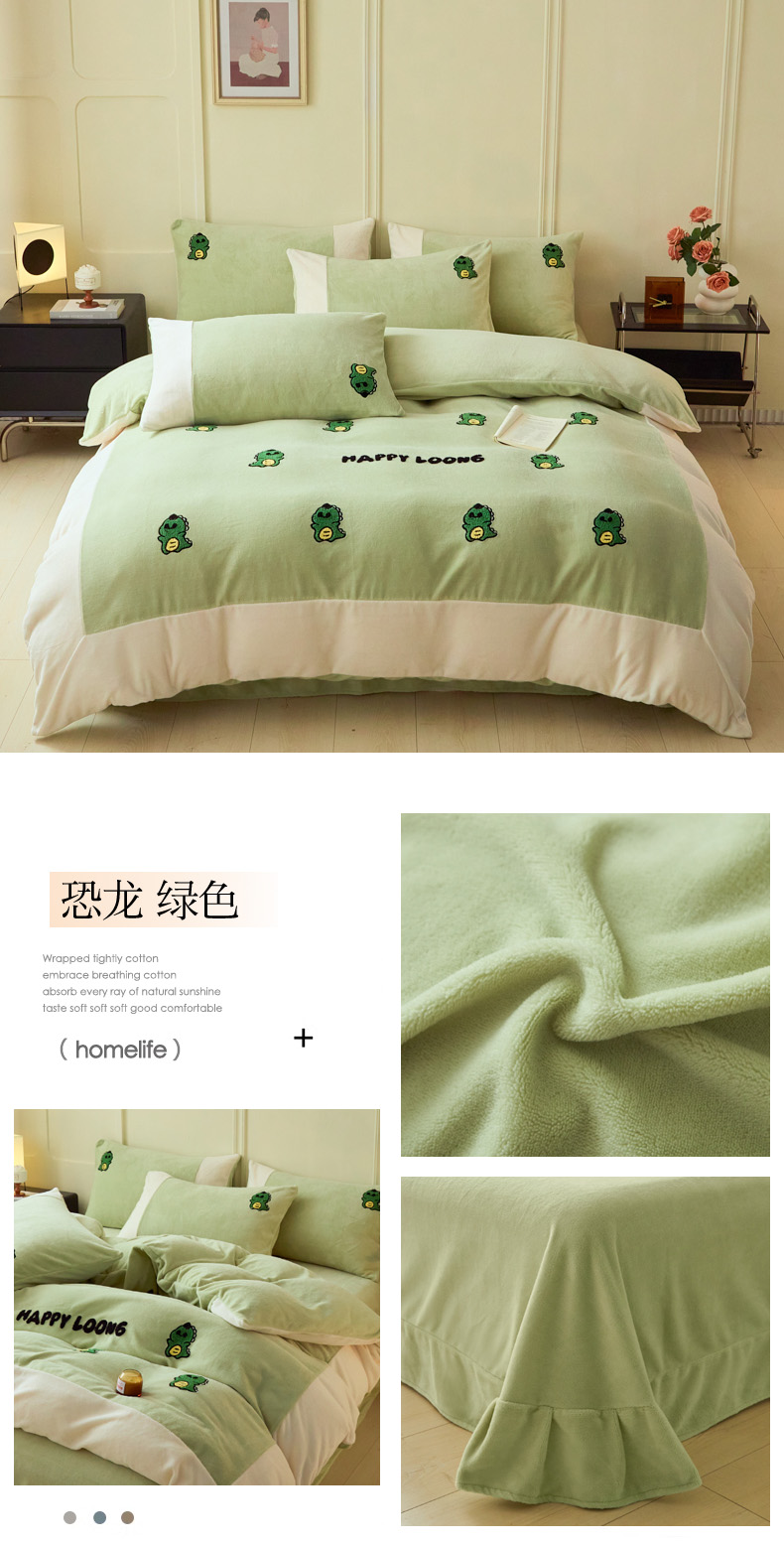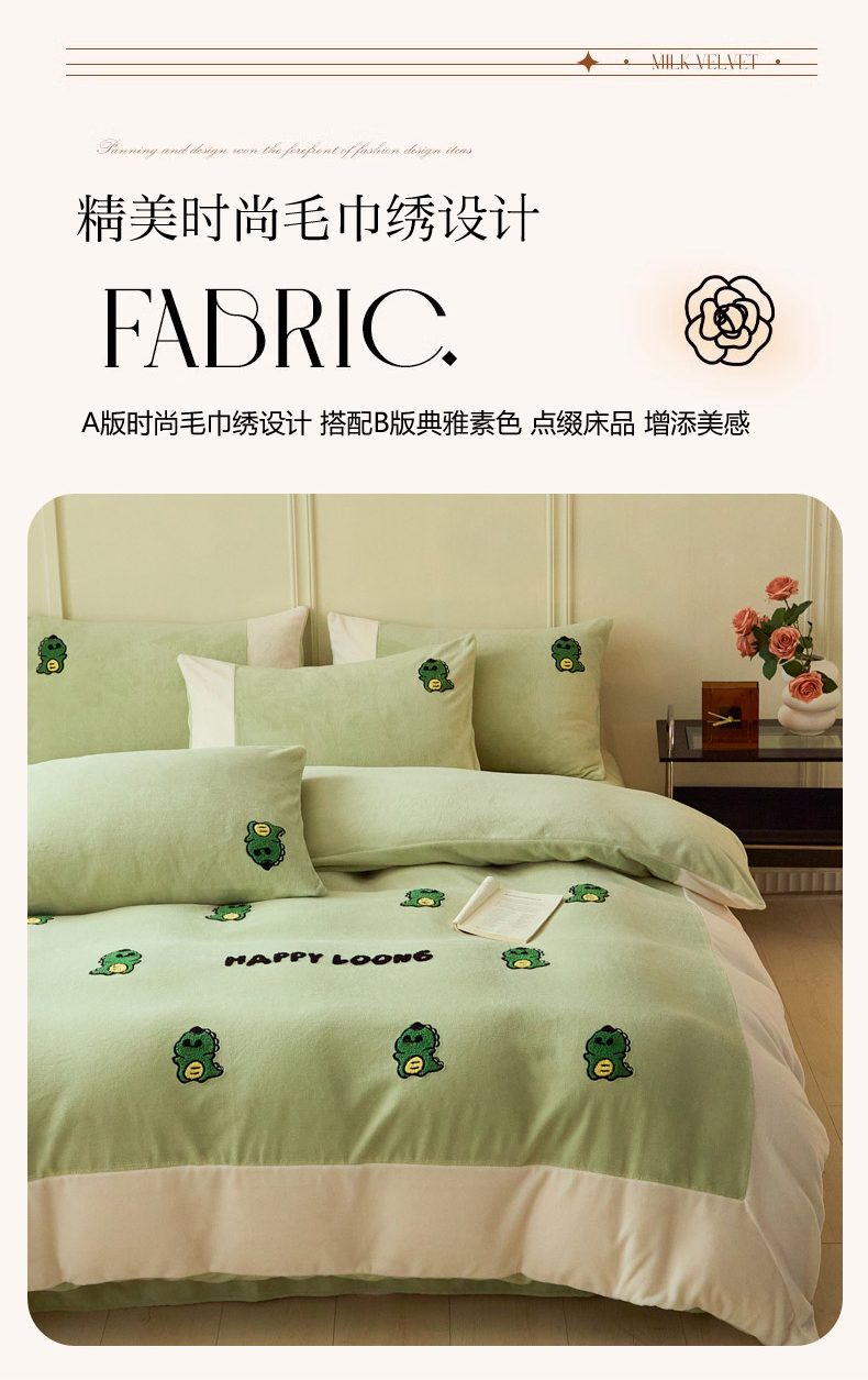 商品名称:恋佳居 2025新款高克重全工艺牛奶绒毛巾绣四件套 恐龙绿色