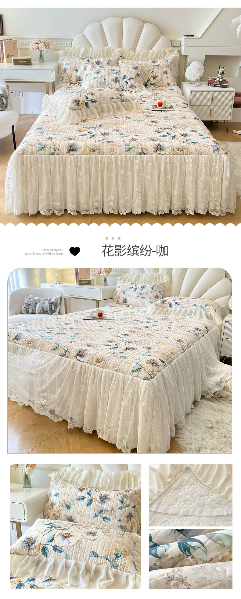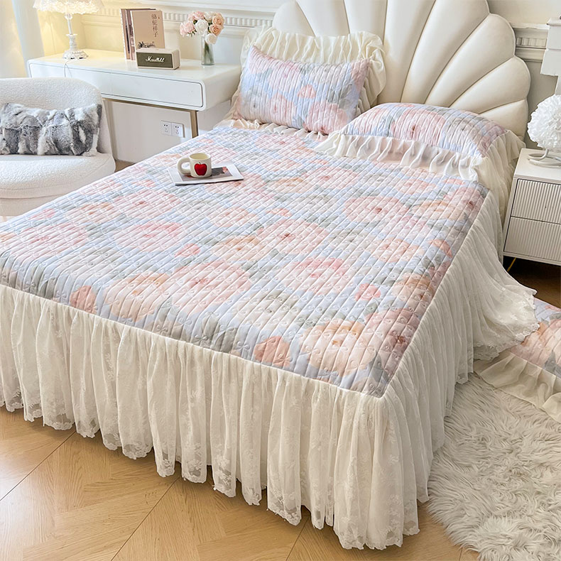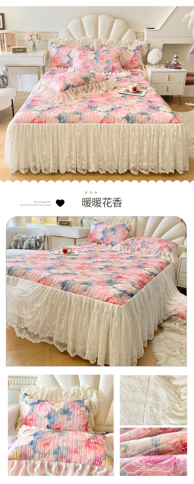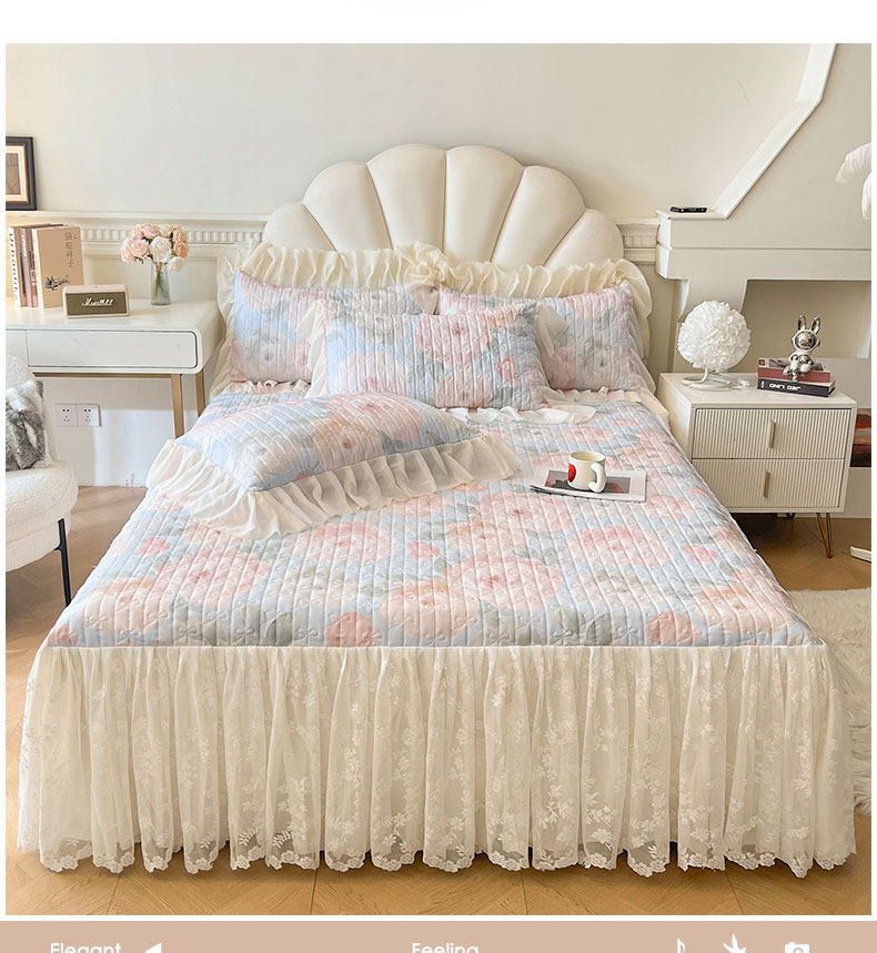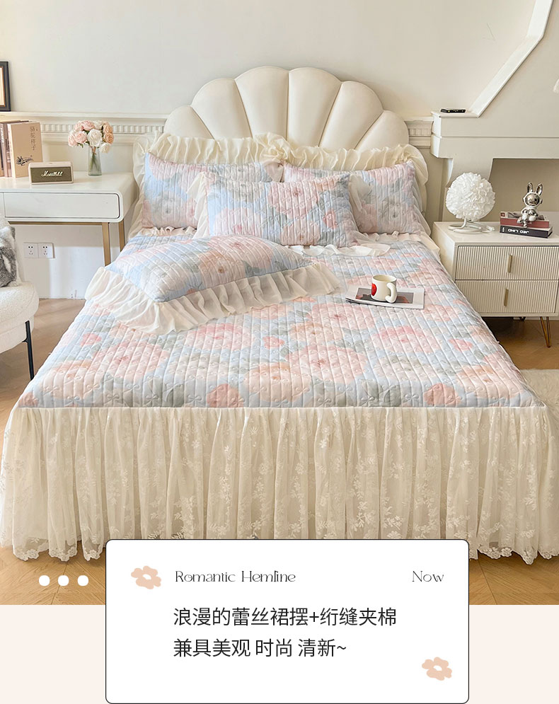 恋尚 2025新款法式油画风田园花卉长绒磨毛棉床裙 丝柯轻语(兰)
