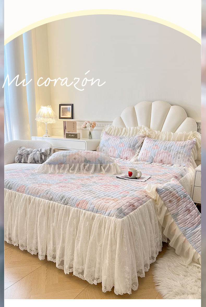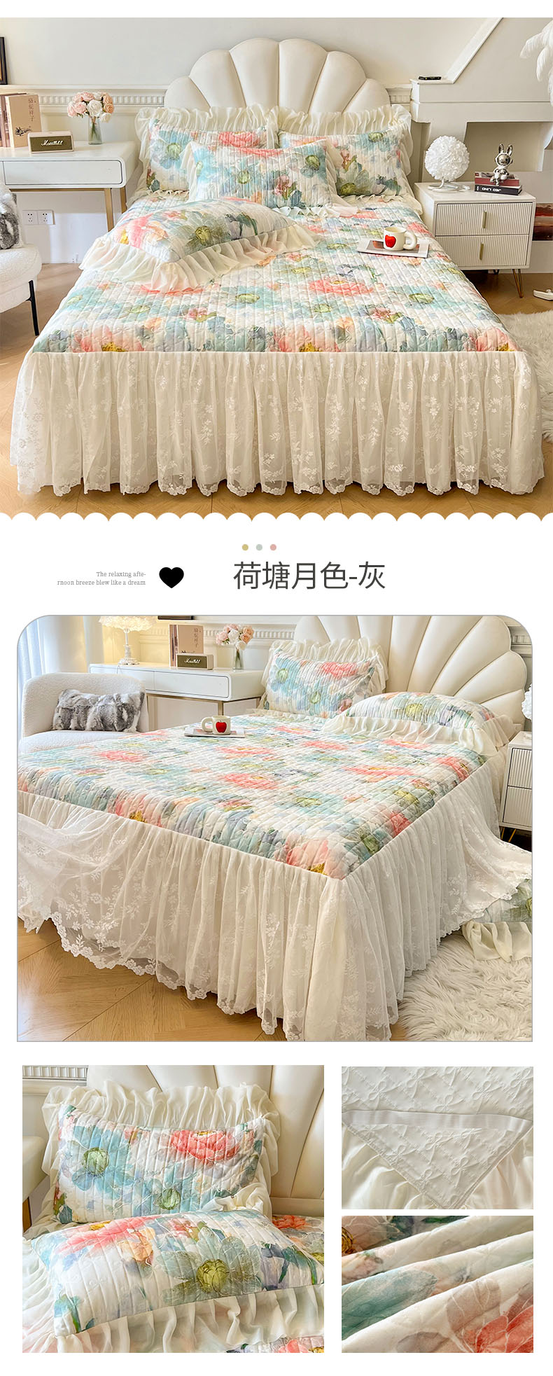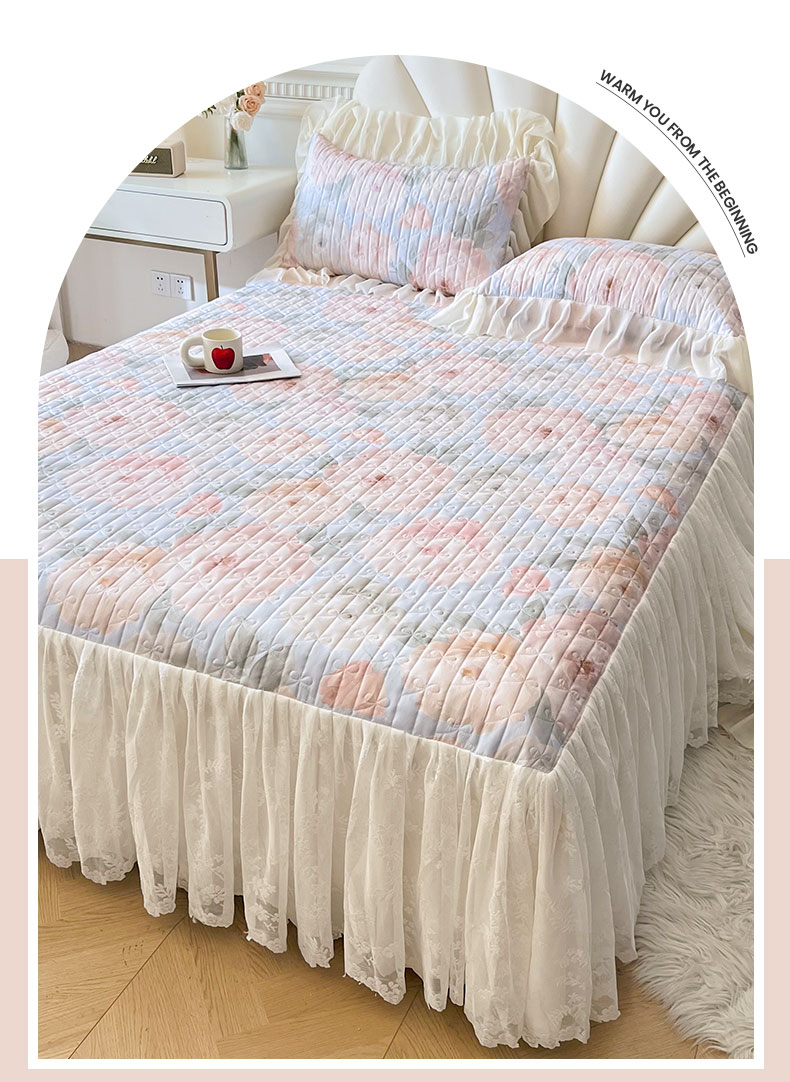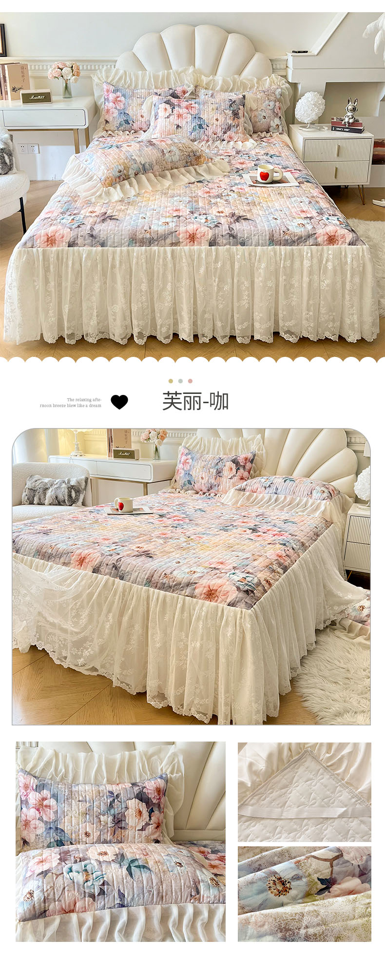 恋尚 2025新款法式油画风田园花卉长绒磨毛棉床裙 丝柯轻语(兰)