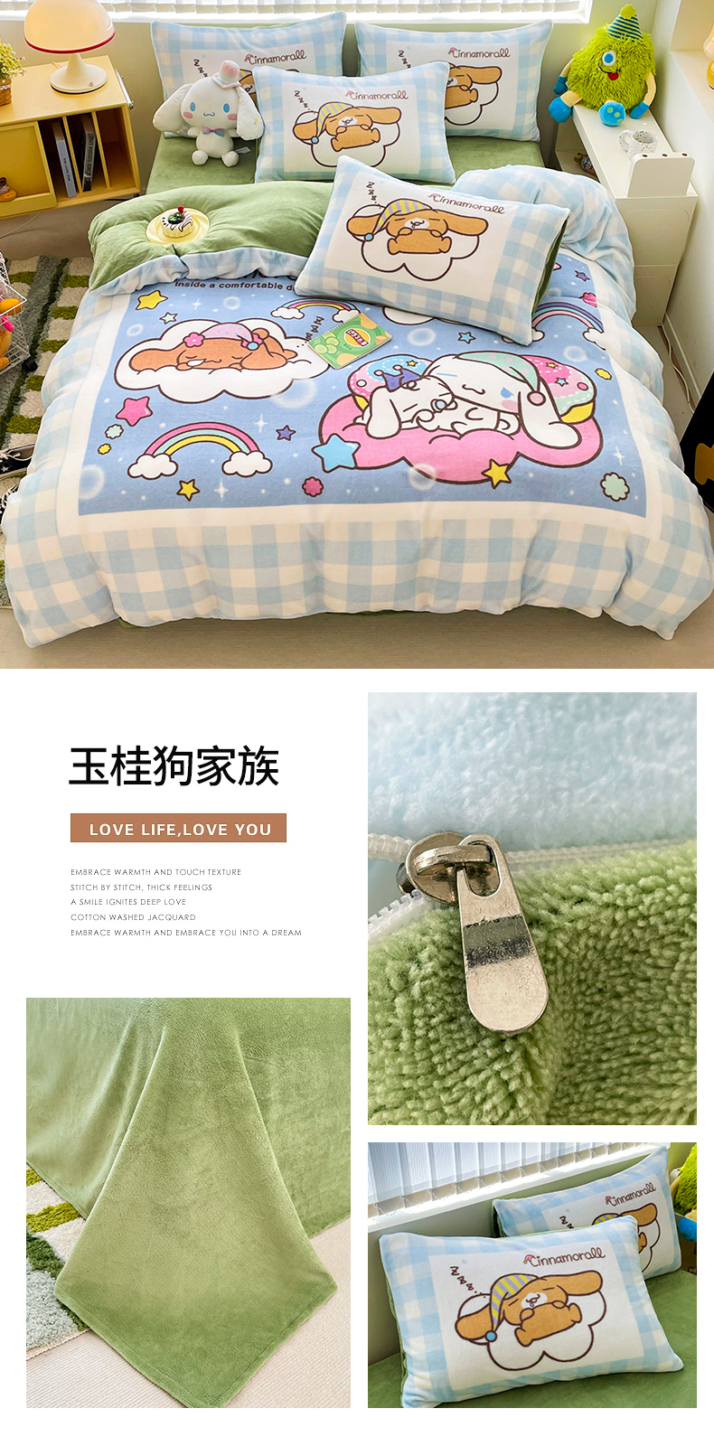 米帛家纺 2024新款正版授权大版三丽鸥牛奶绒四件套 玉桂狗家族