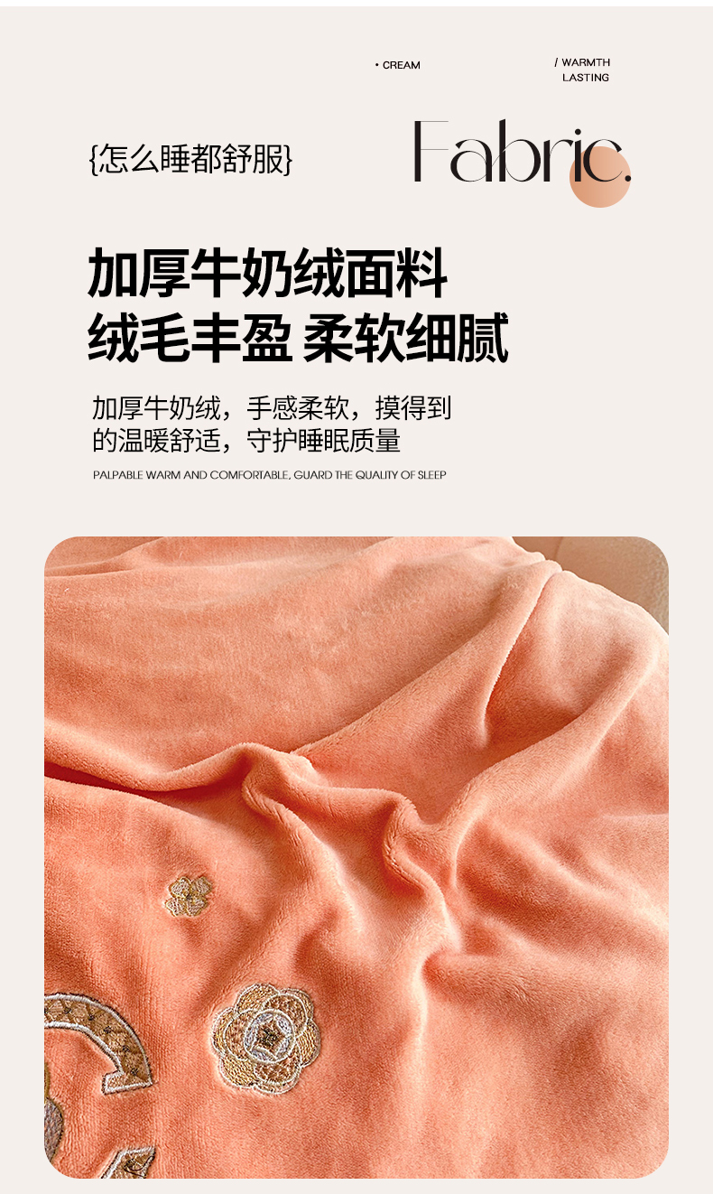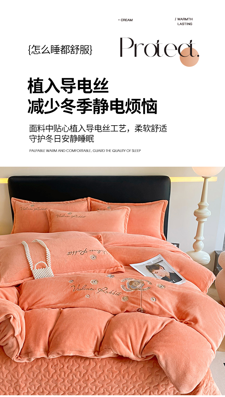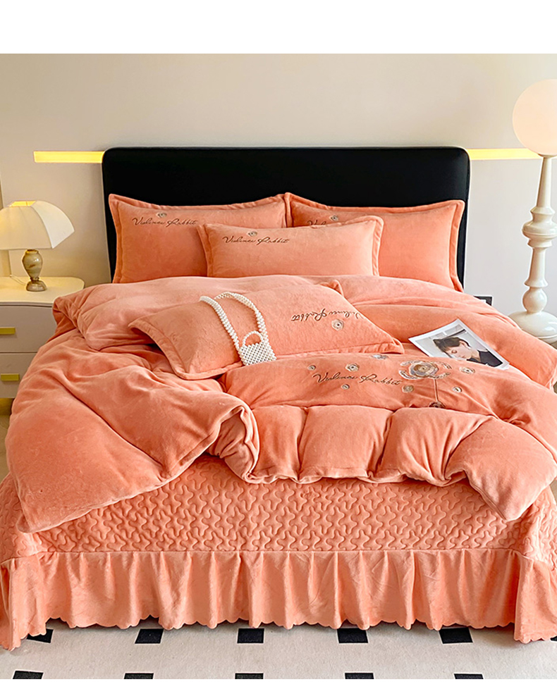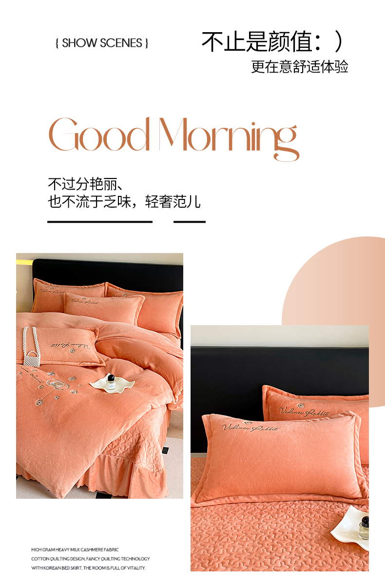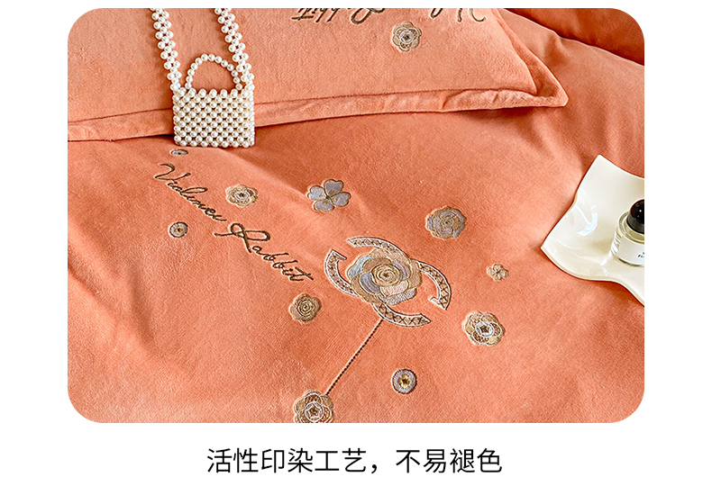 陌乘坊家纺 2024新款牛奶绒刺绣四件套-倾城系列 倾城-爱玛橙,倾城-爱玛橙