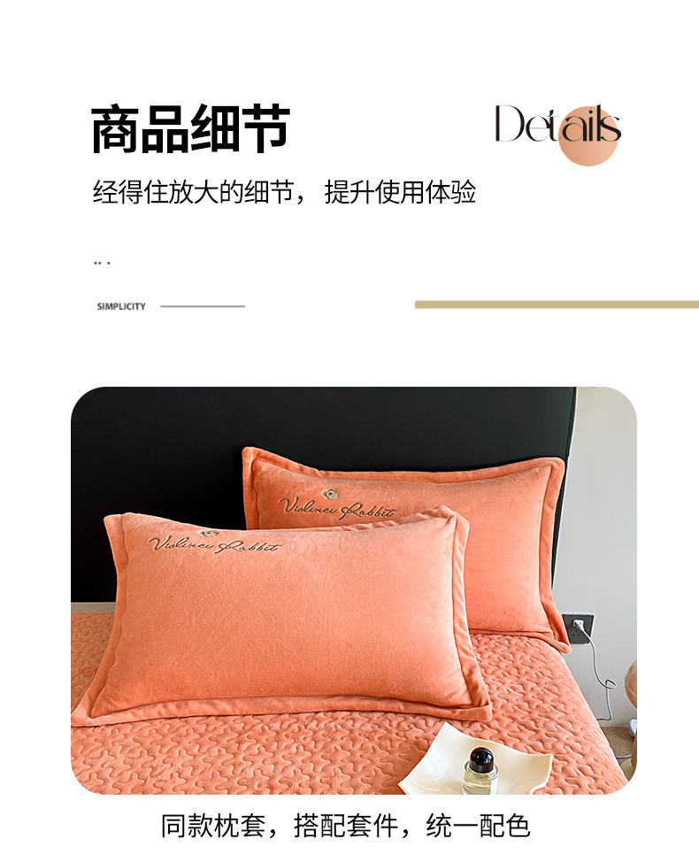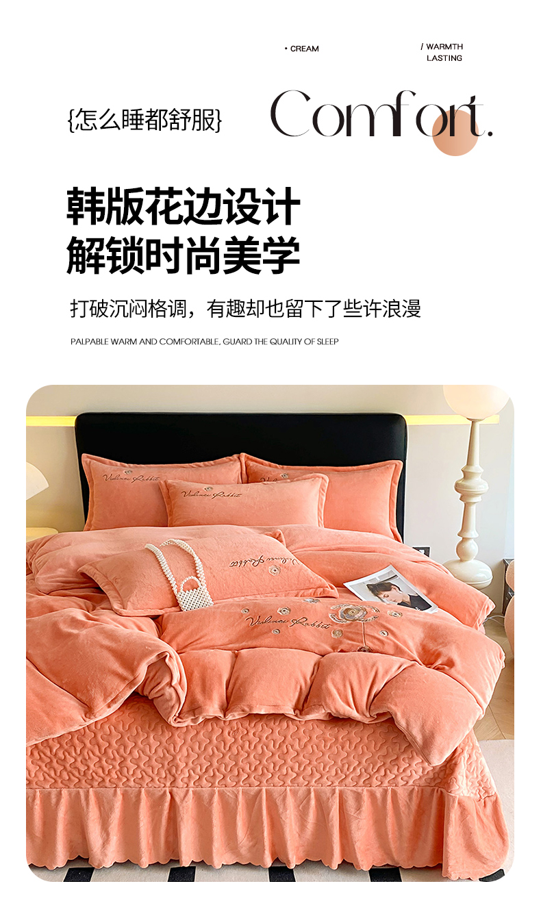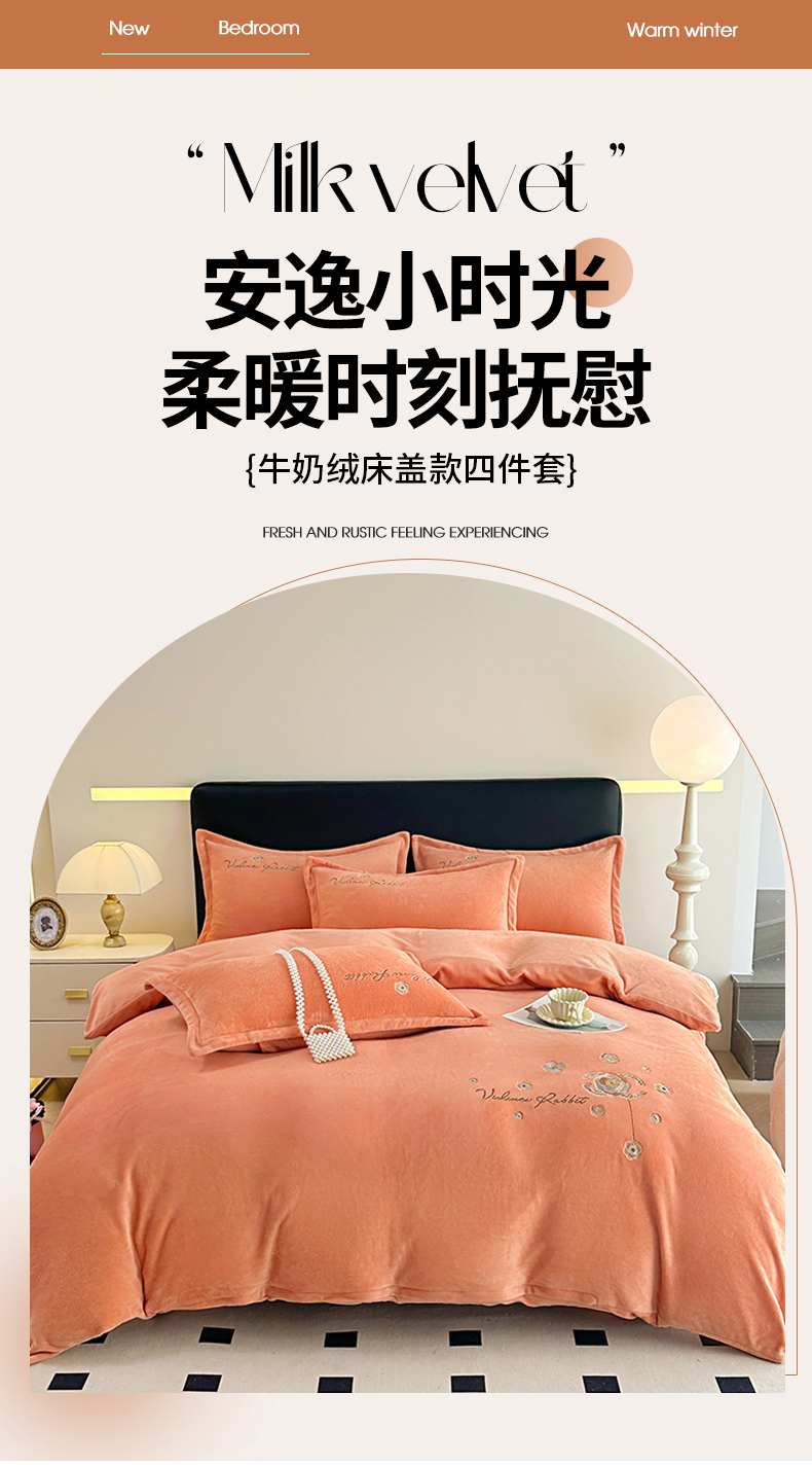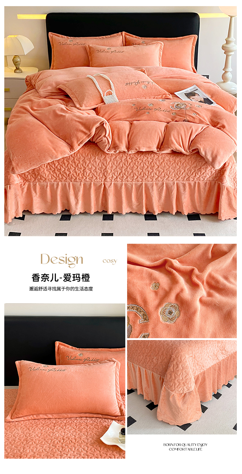 商品名称:陌乘坊家纺 2024新款牛奶绒床盖款四件套-香奈 香奈-爱玛橙