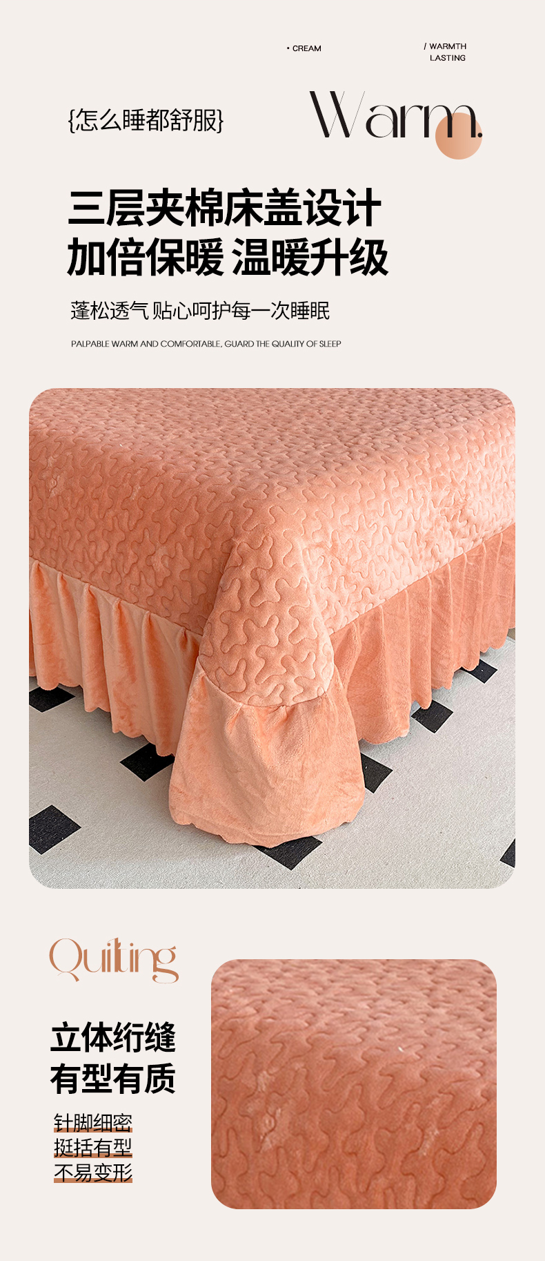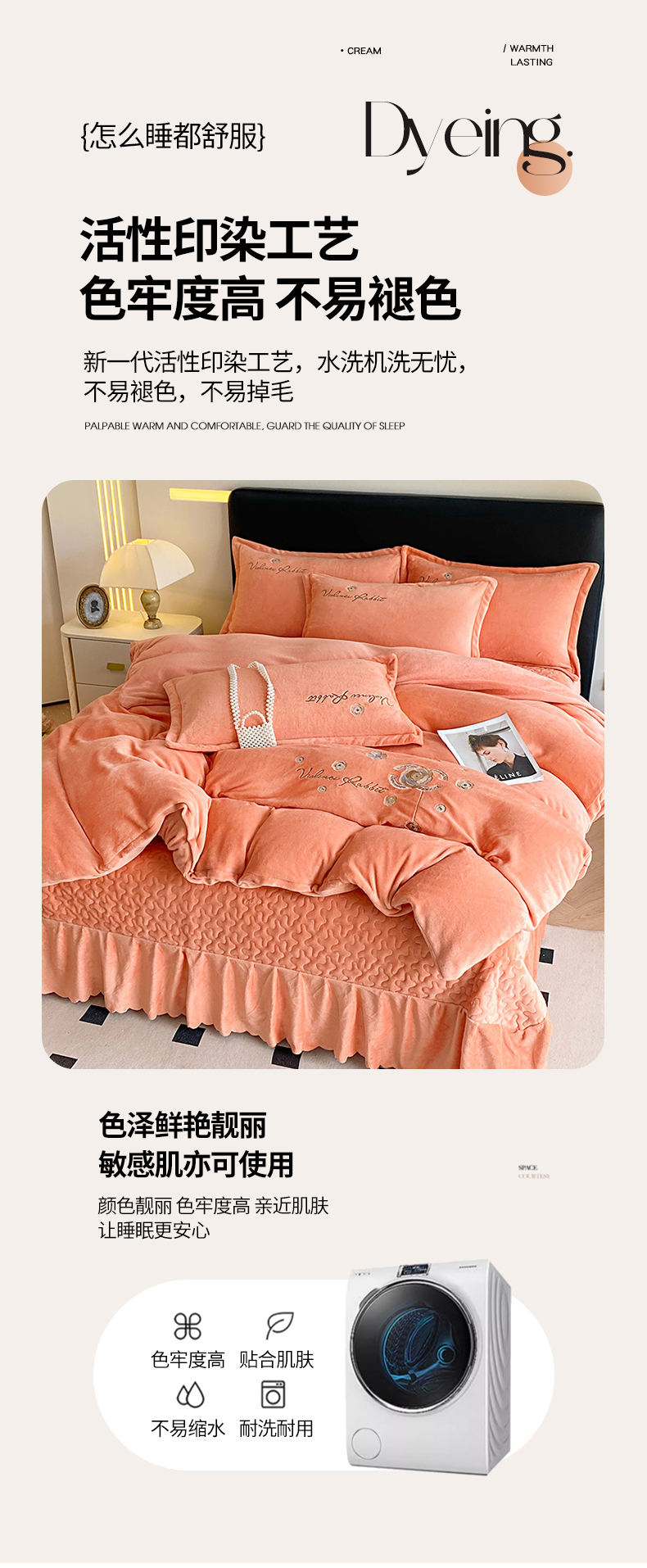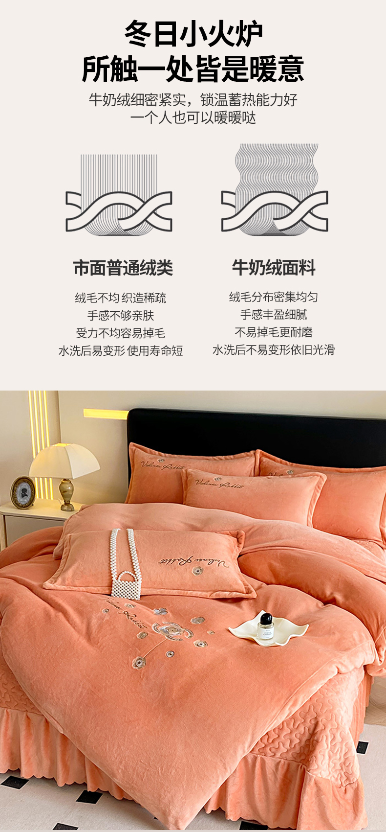商品名称:陌乘坊家纺 2024新款牛奶绒床盖款四件套-香奈 香奈-爱玛橙