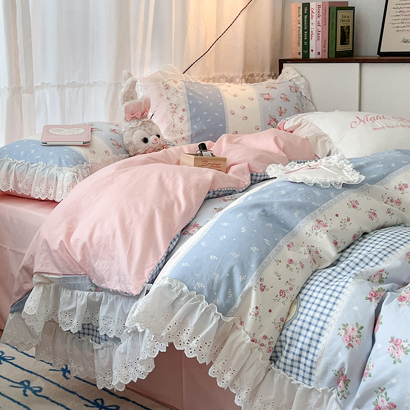 昔可家纺 2024新款仙仙蕾丝贴边全棉花边款四件套 仙仙草莓兔