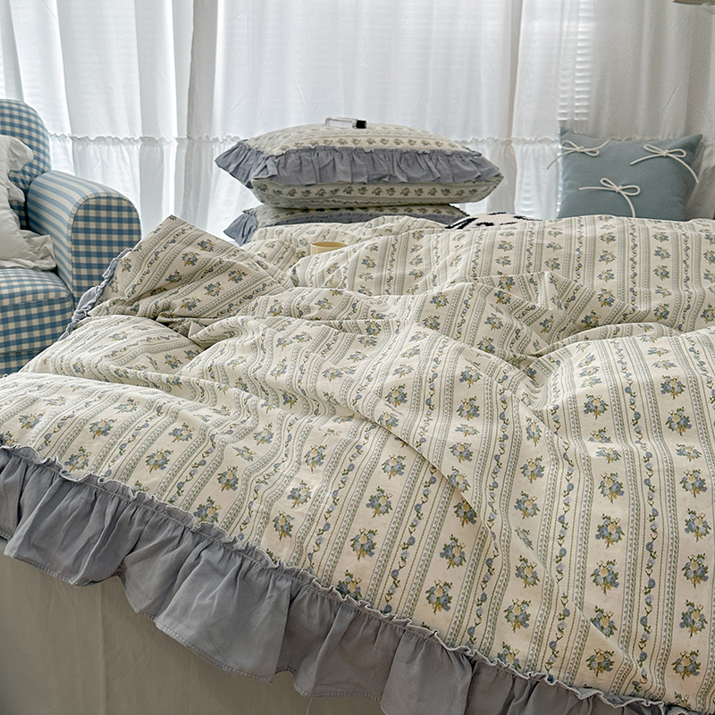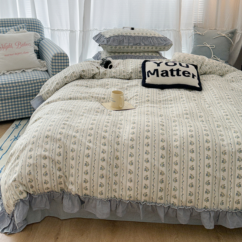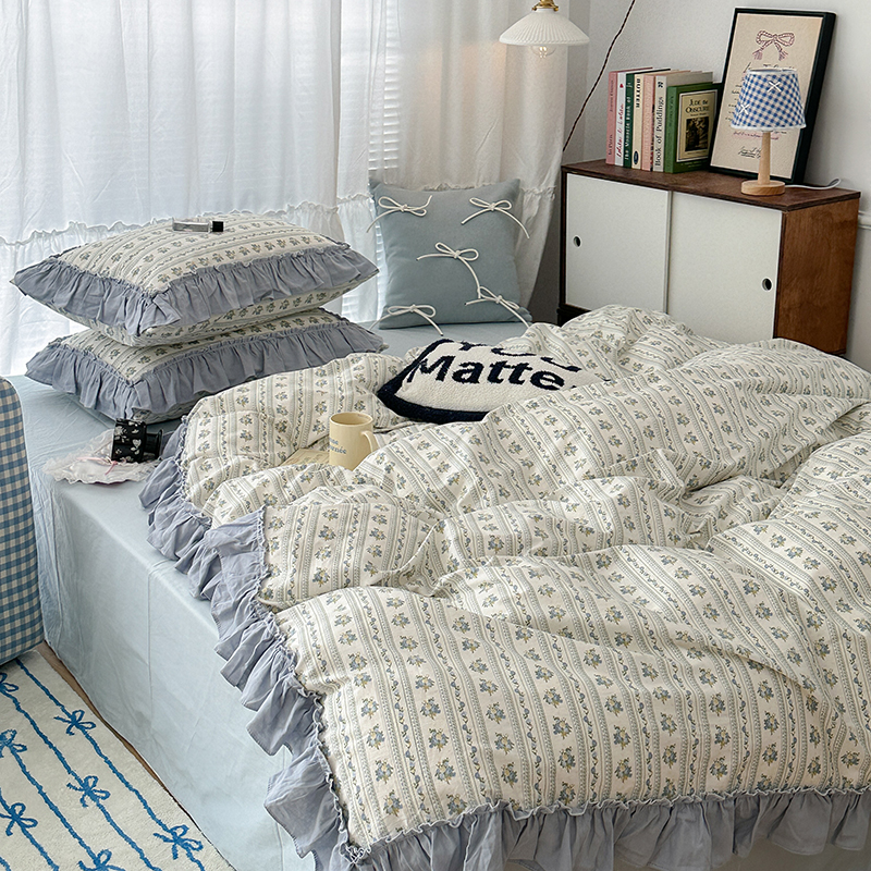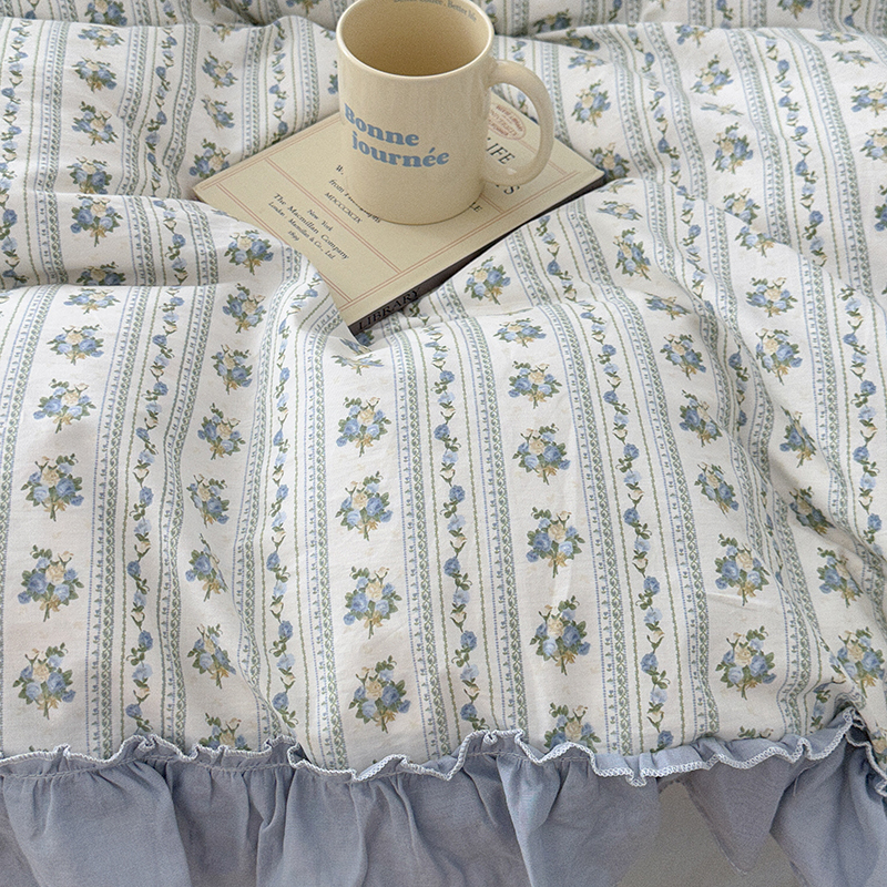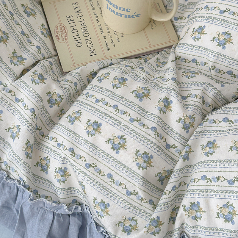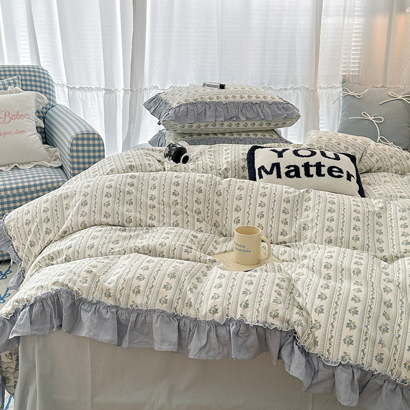 商品名称:昔可家纺 2024新款双层纱贴边全棉四件套 蓝茵篱珞
