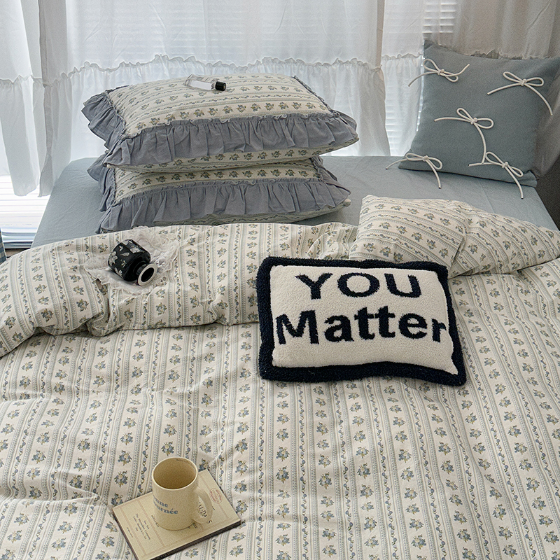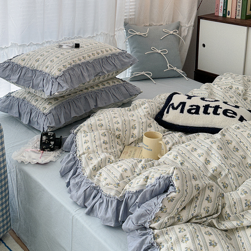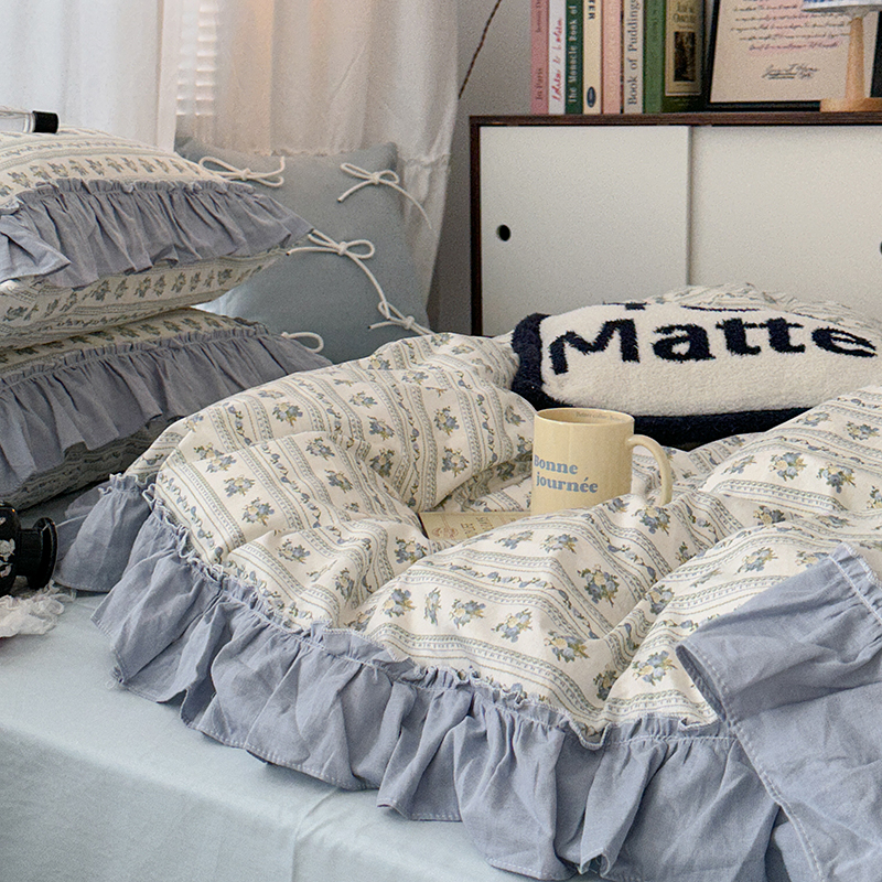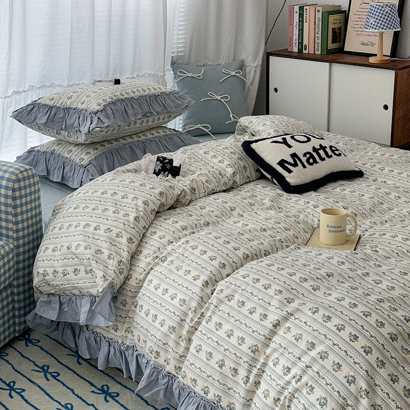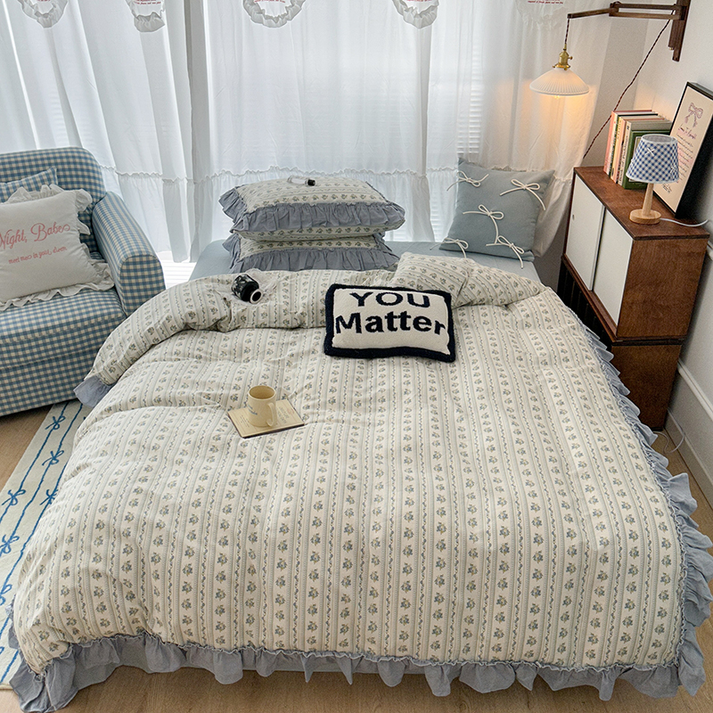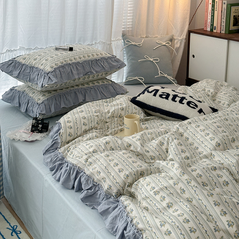 商品名称:昔可家纺 2024新款双层纱贴边全棉四件套 蓝茵篱珞