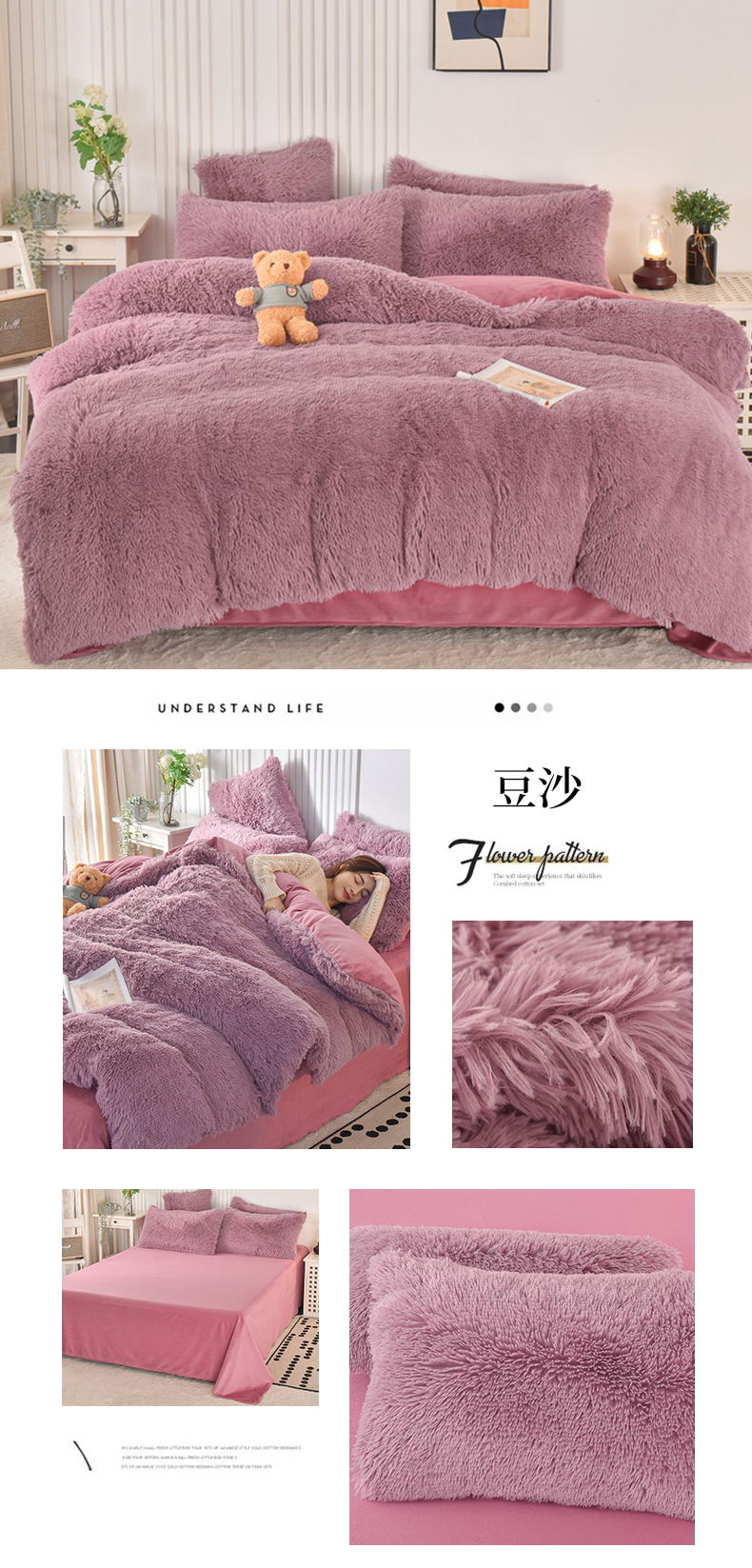 商品名称:鑫喜莱 2024新款长毛绒四件套 豆沙