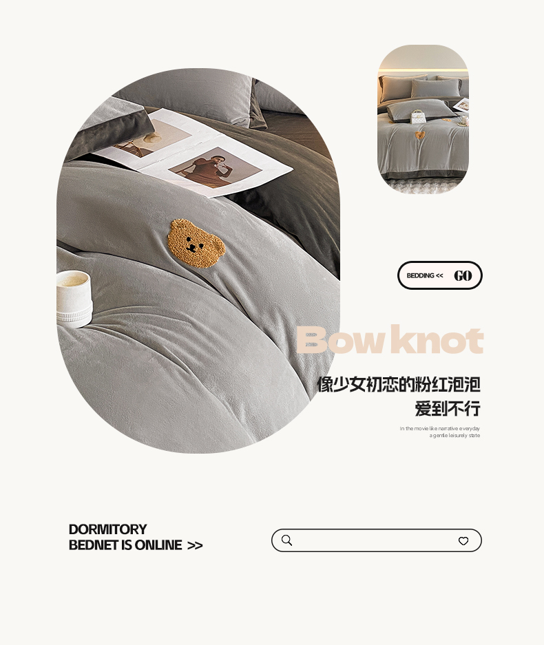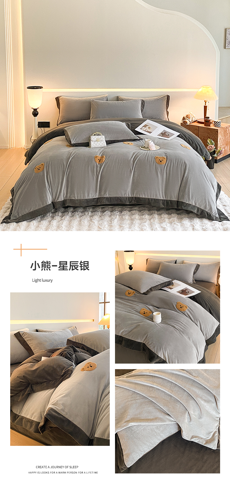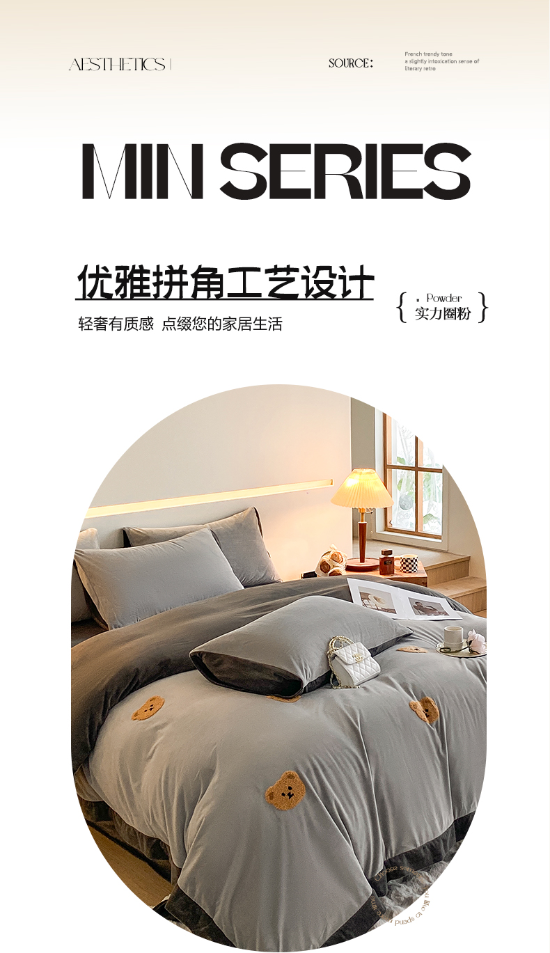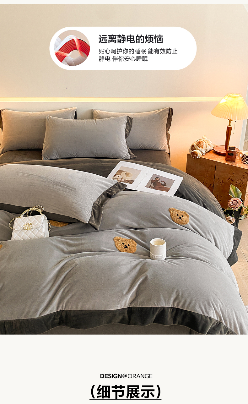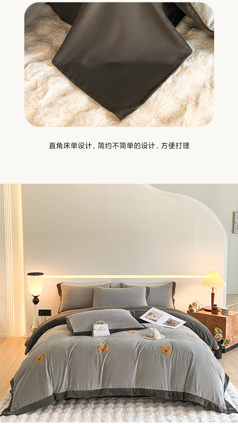 商品名称:2024新款水晶绒拼角满版毛巾绣四件套 小熊-星辰银