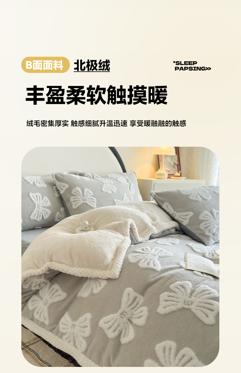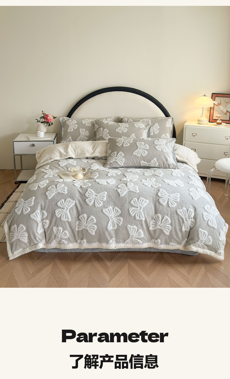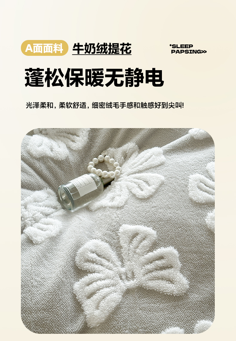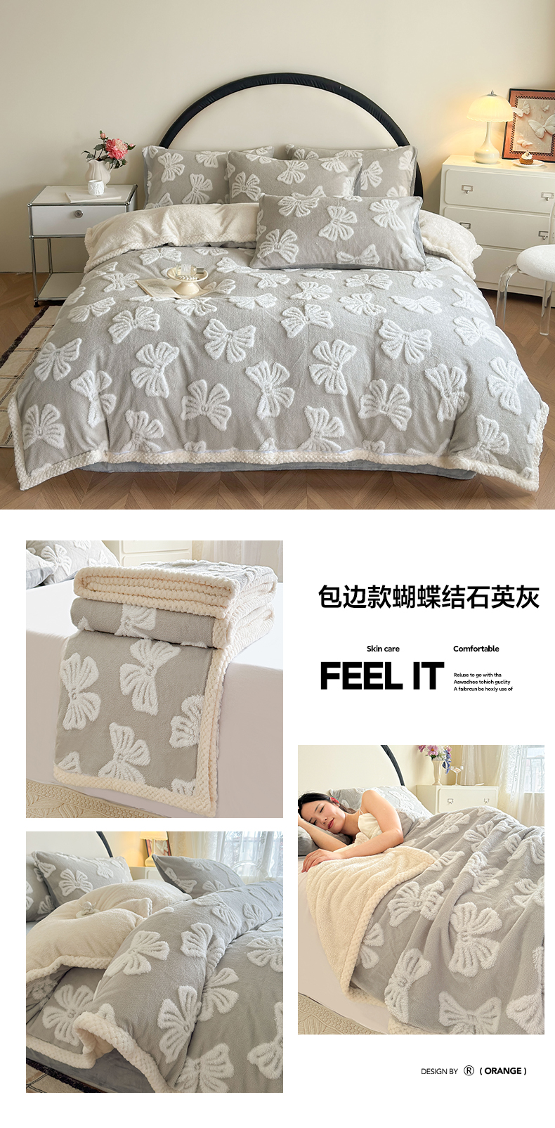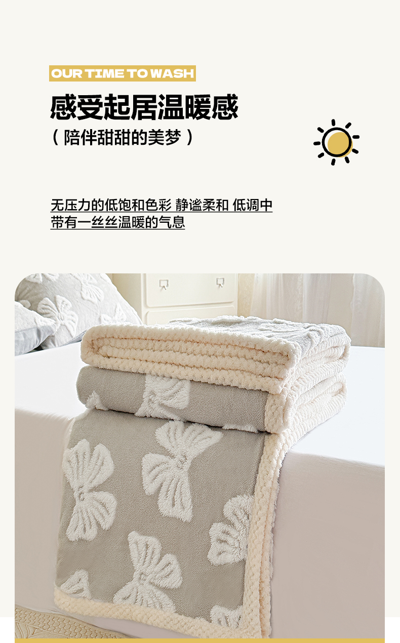 当前位置: 91家纺网 > 商品网购 > 毛毯休闲毯绒毯 > 毛毯 > 莱登卡奴 2024新款牛奶绒阳离子提花北极绒包边款多功能被套毯系列 包边款蝴蝶结石英灰