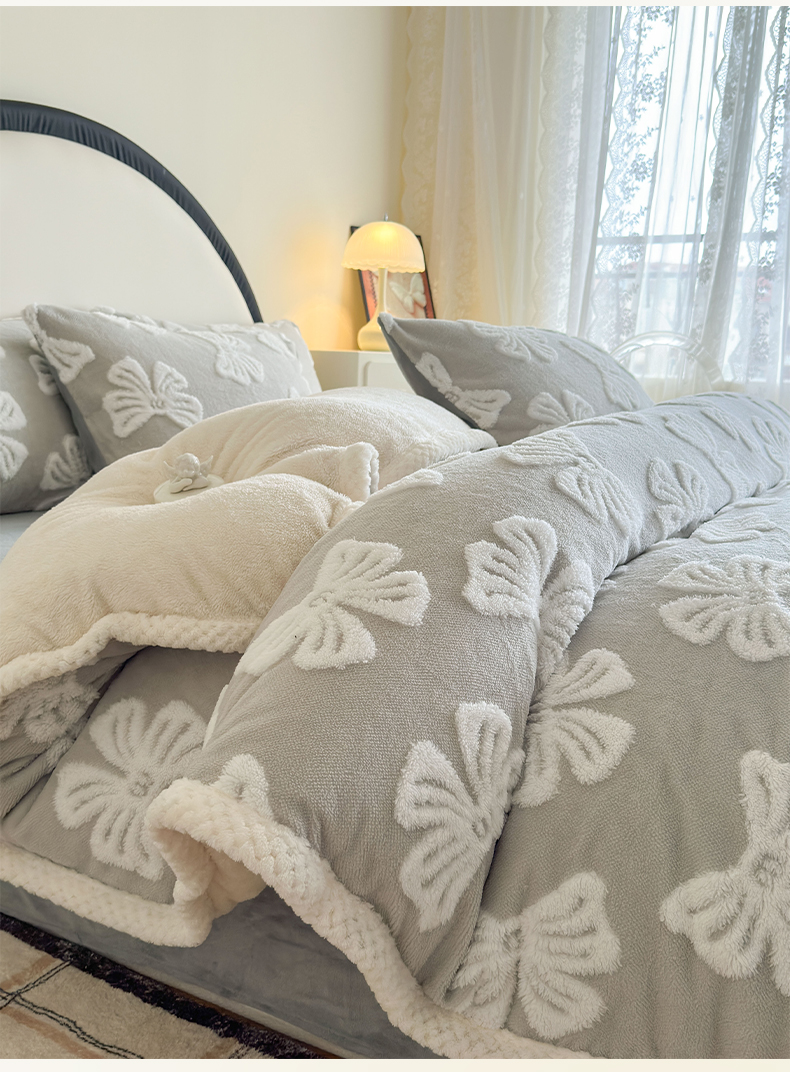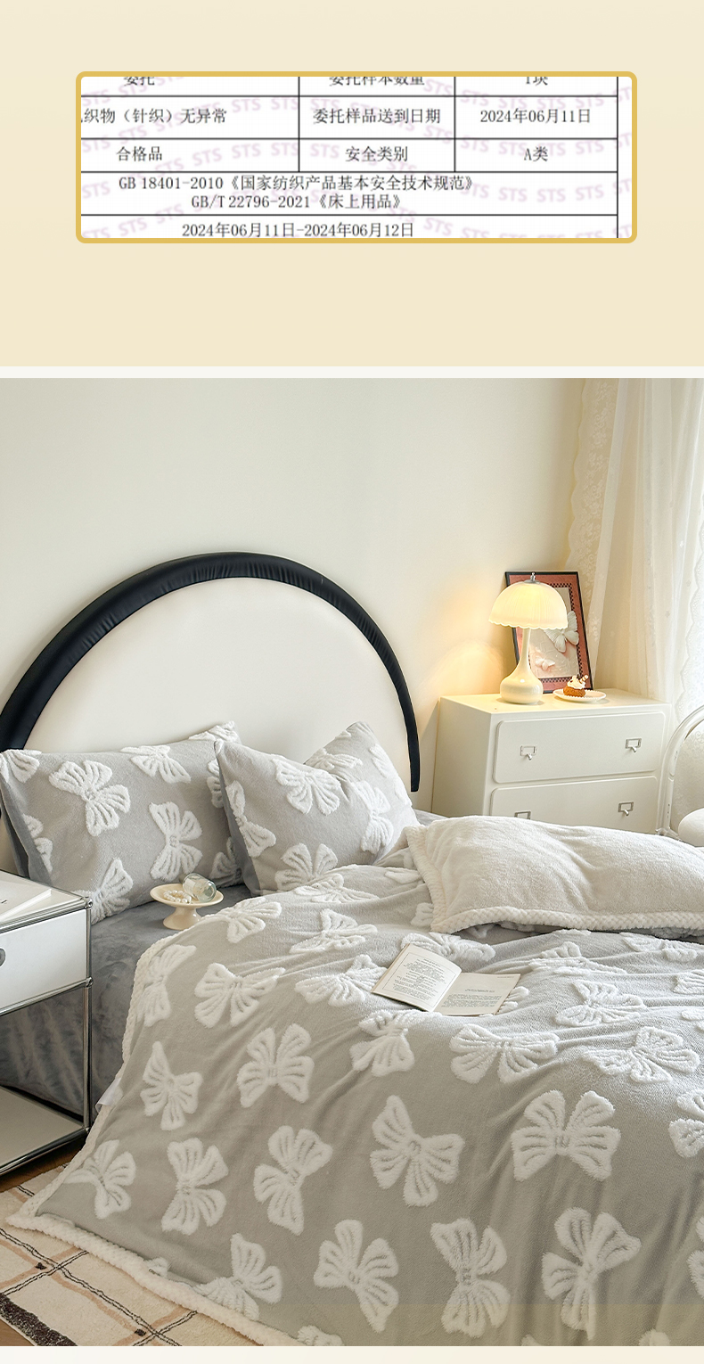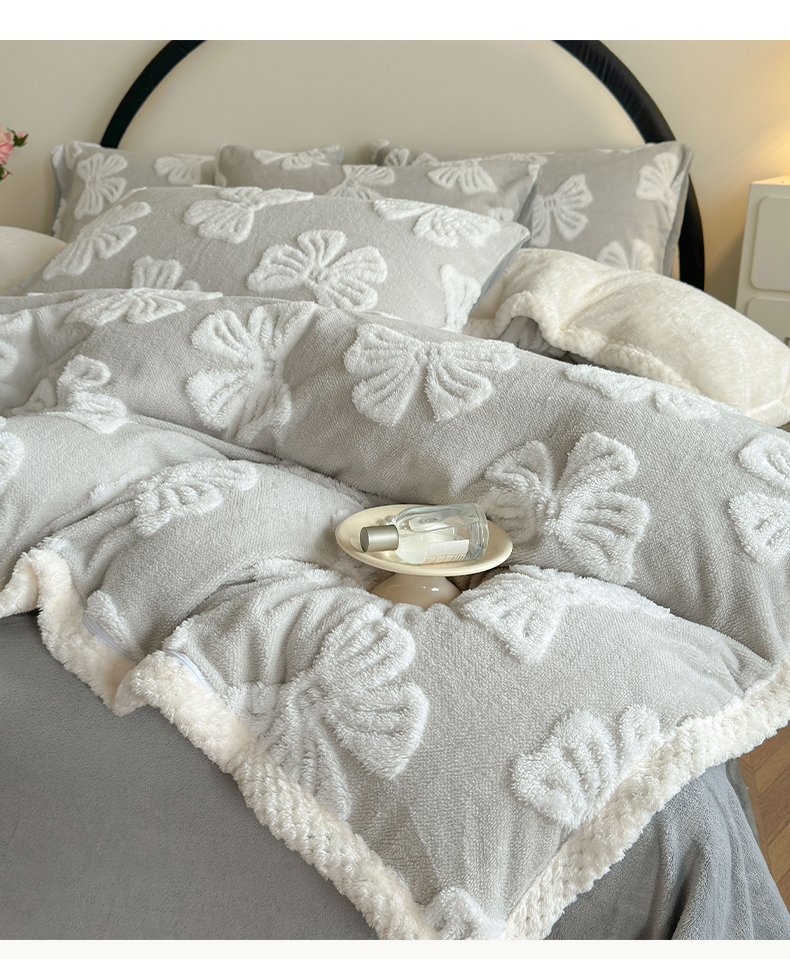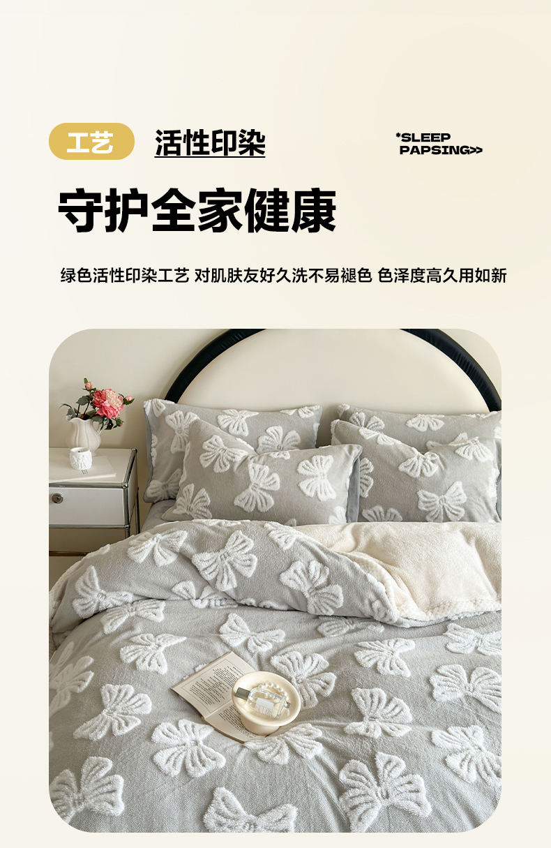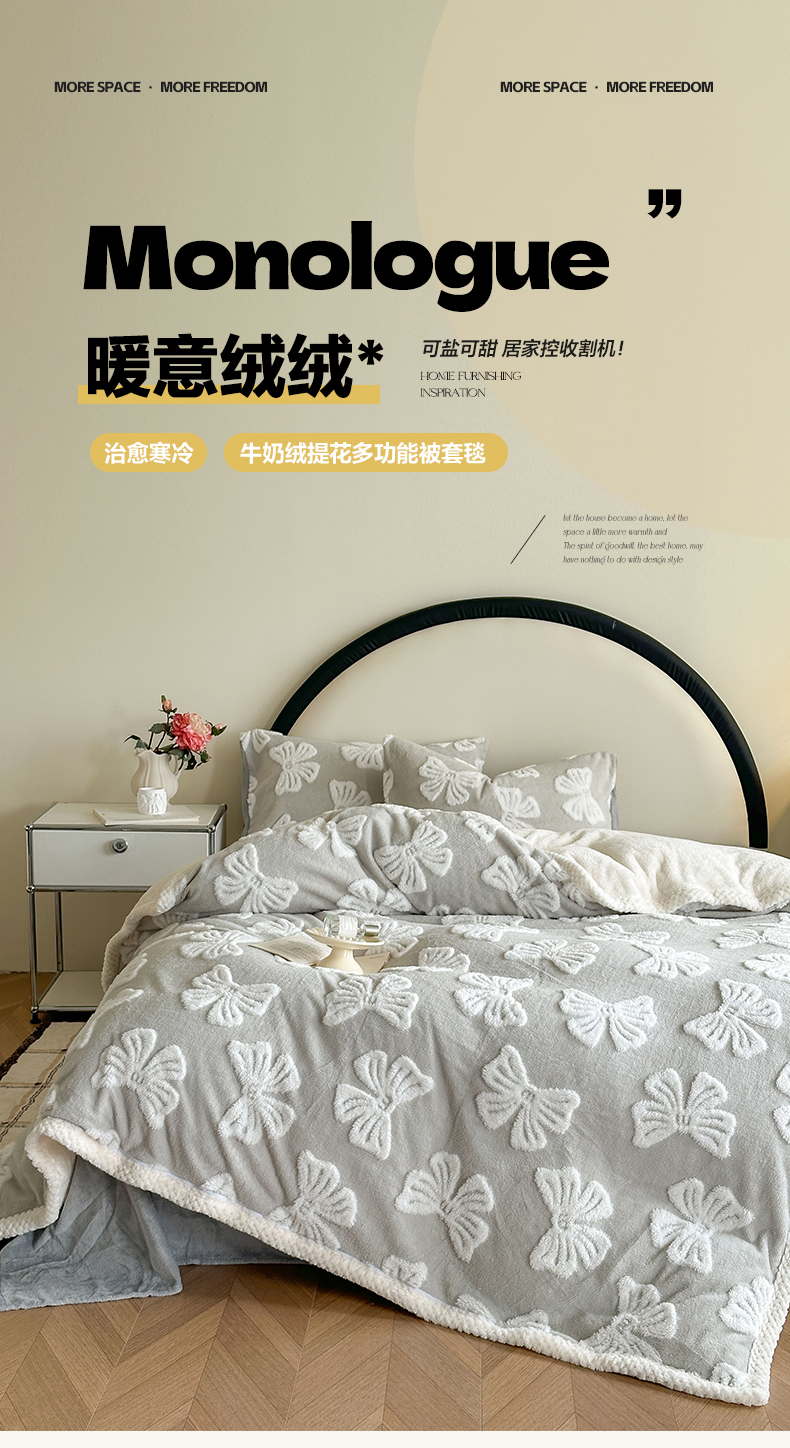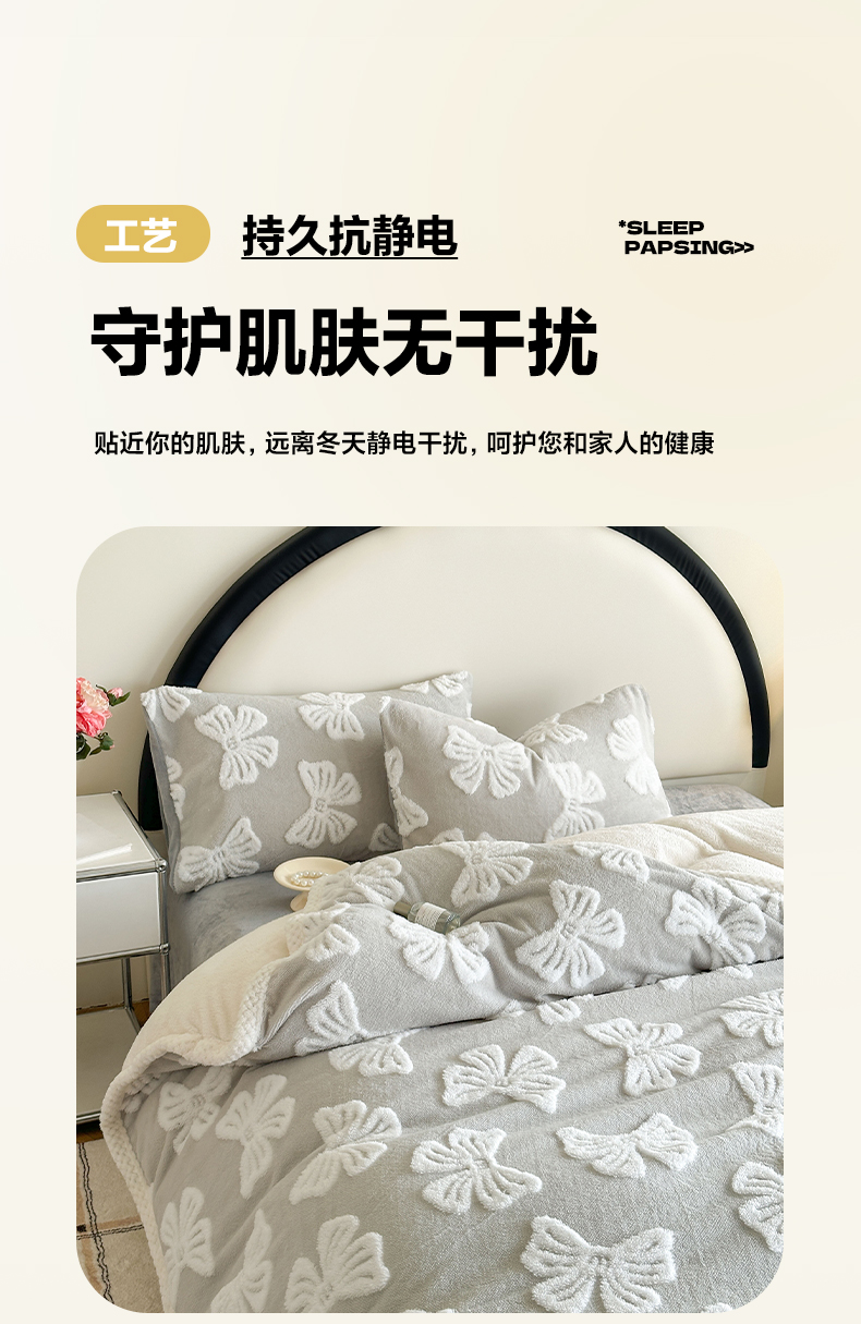 当前位置: 91家纺网 > 商品网购 > 毛毯休闲毯绒毯 > 毛毯 > 莱登卡奴 2024新款牛奶绒阳离子提花北极绒包边款多功能被套毯系列 包边款蝴蝶结石英灰
