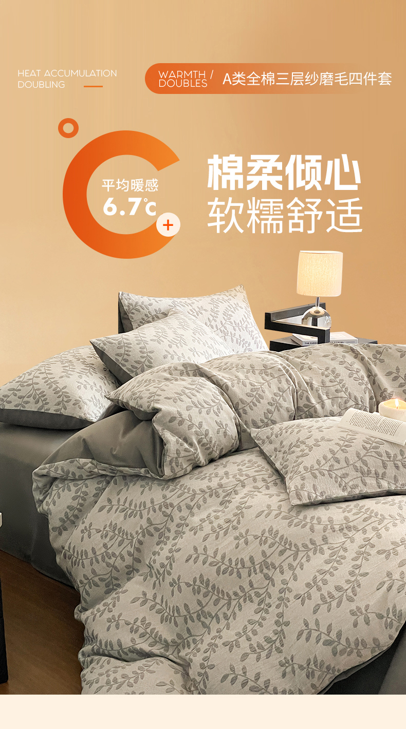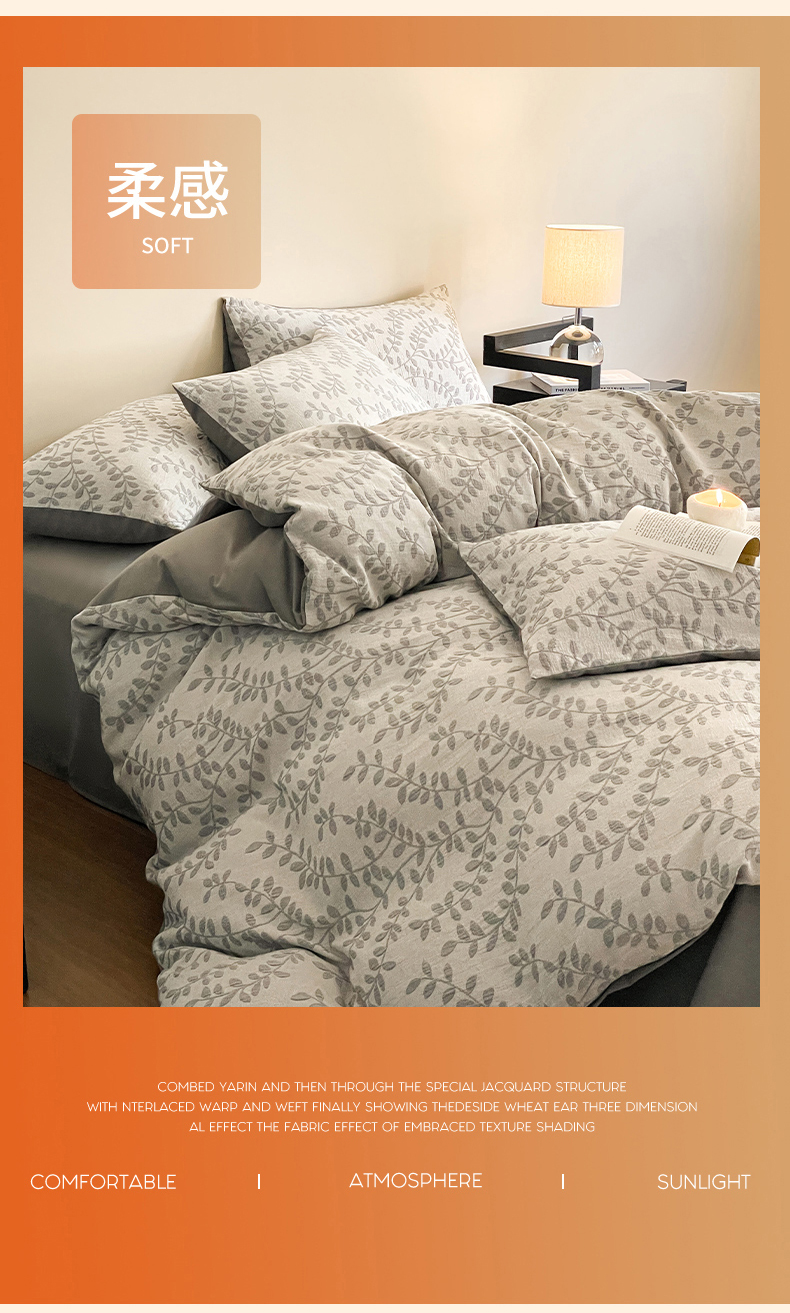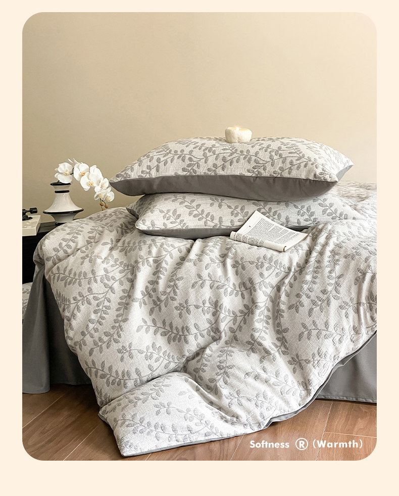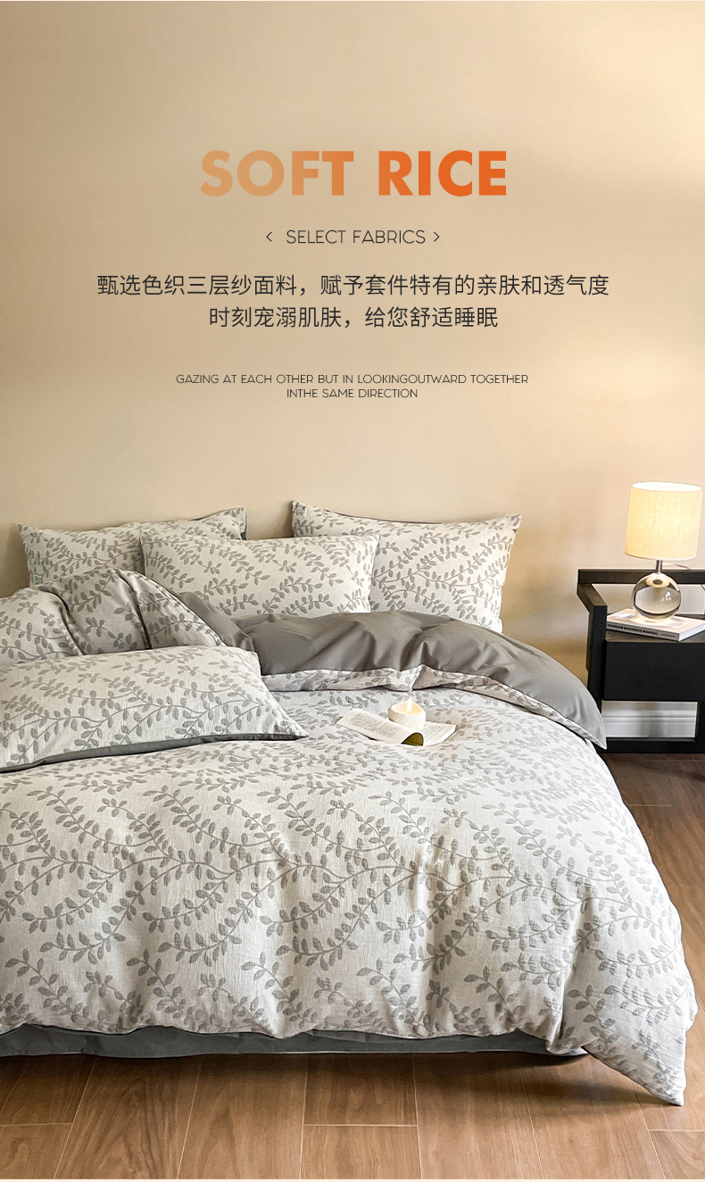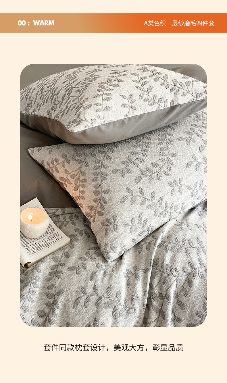 当前位置: 91家纺网 > 商品网购 > 床品套件 > 四件套 > 普通磨毛四件套 > 蓝邻家纺 2025新款色织三层纱磨毛四件套系列 叶茂-深灰