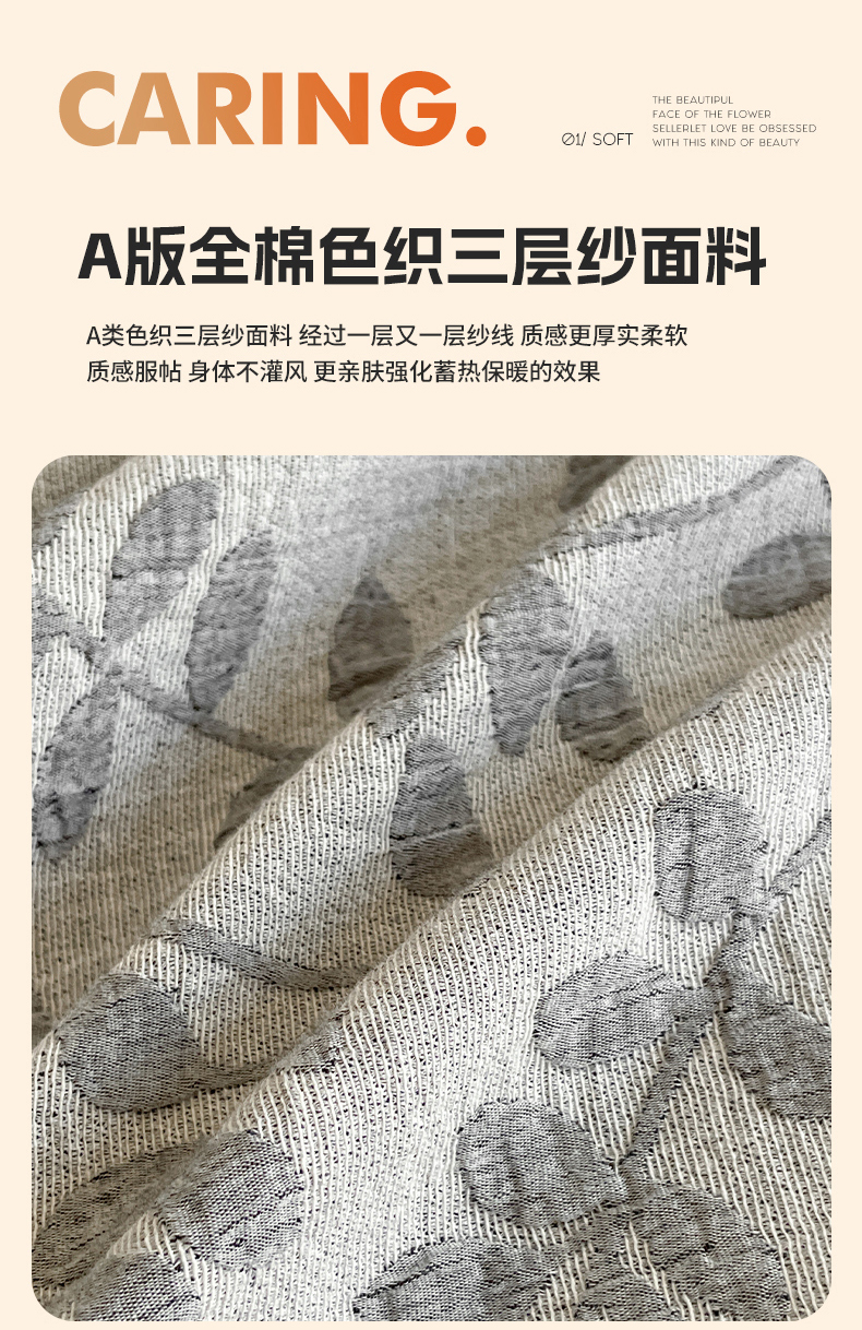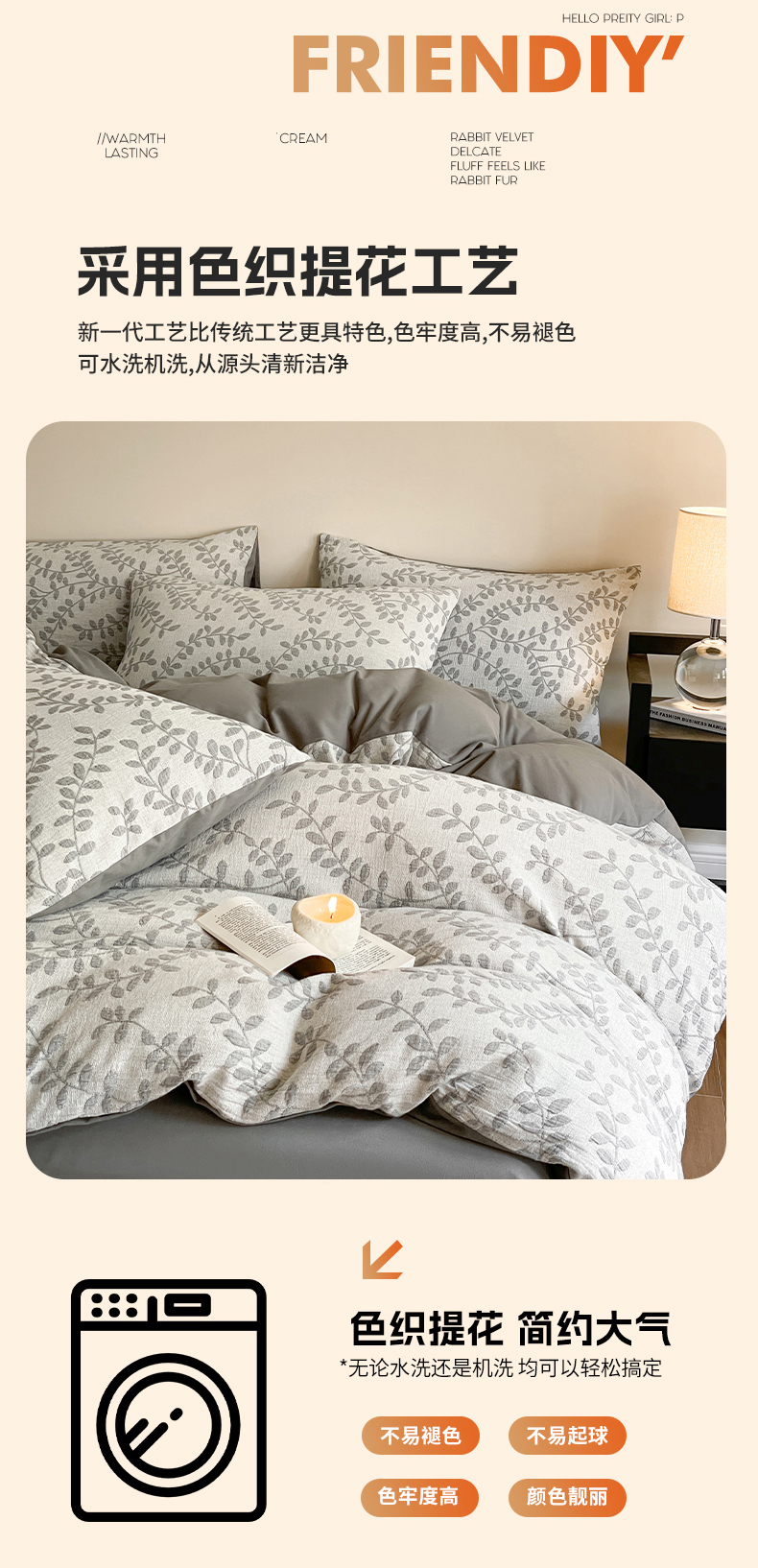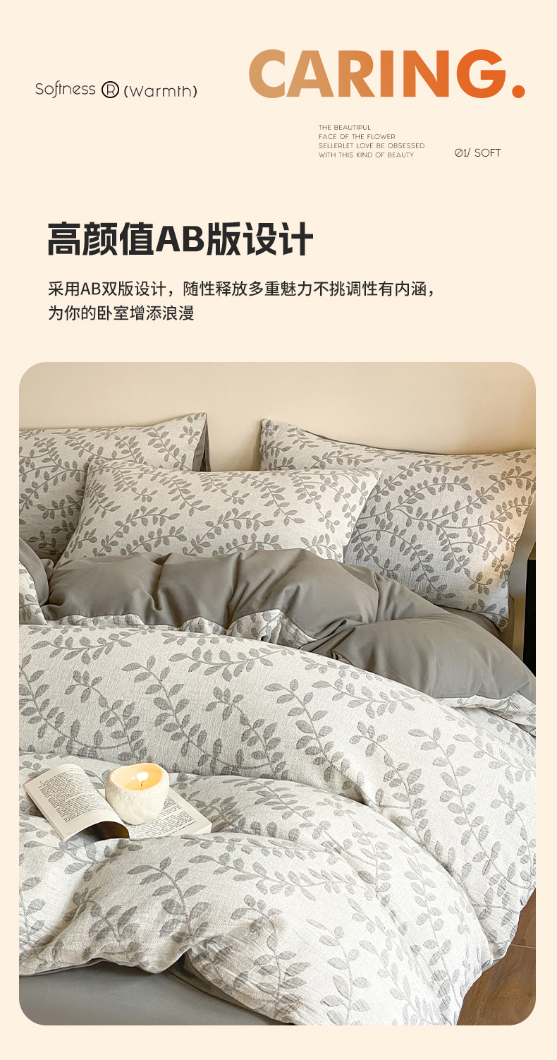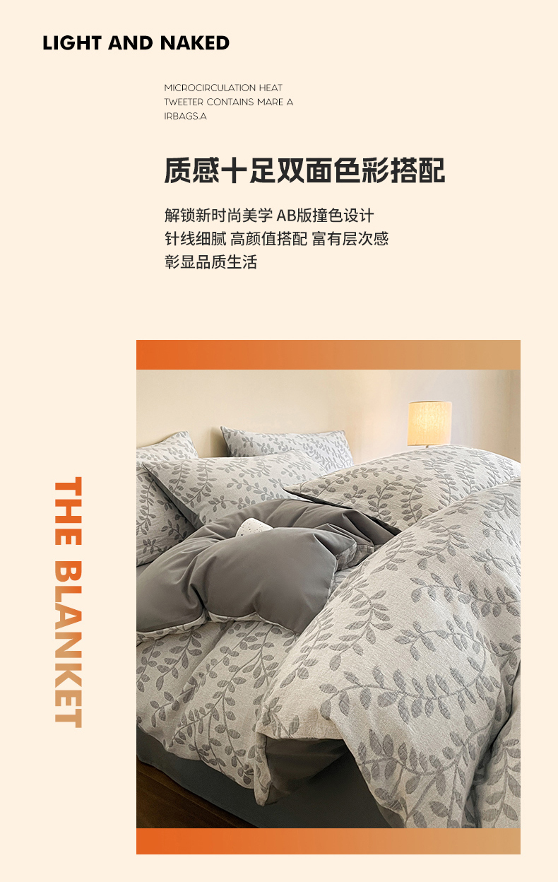 当前位置: 91家纺网 > 商品网购 > 床品套件 > 四件套 > 普通磨毛四件套 > 蓝邻家纺 2025新款色织三层纱磨毛四件套系列 叶茂-深灰