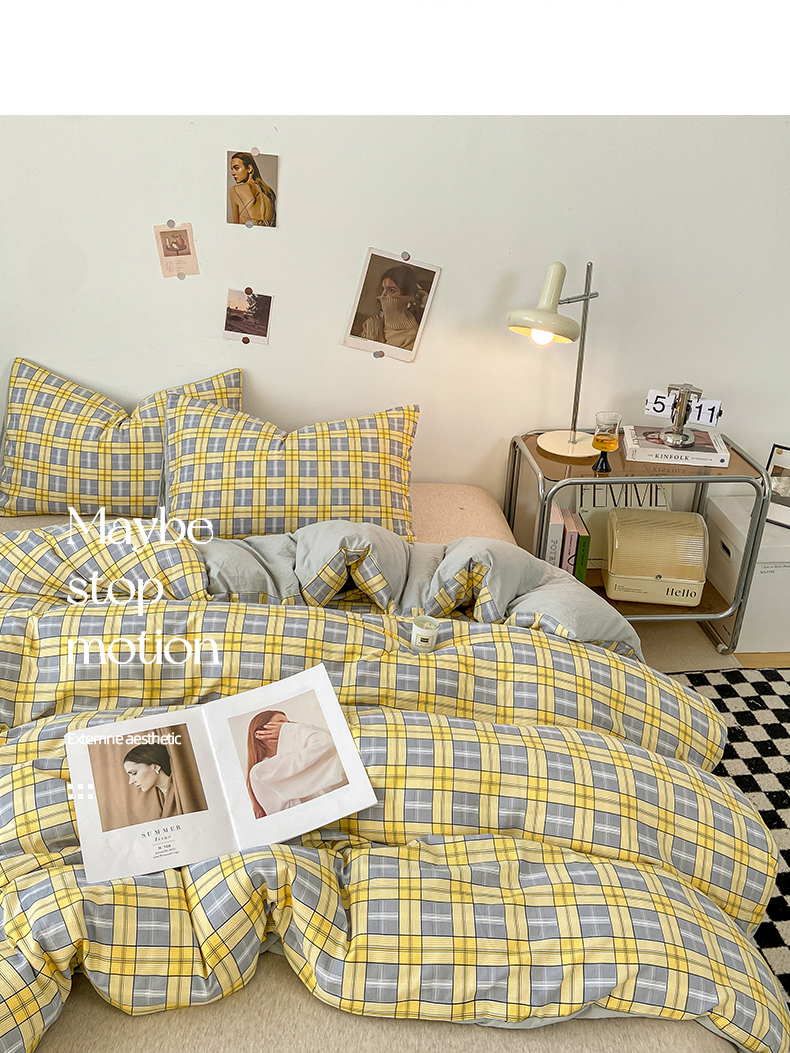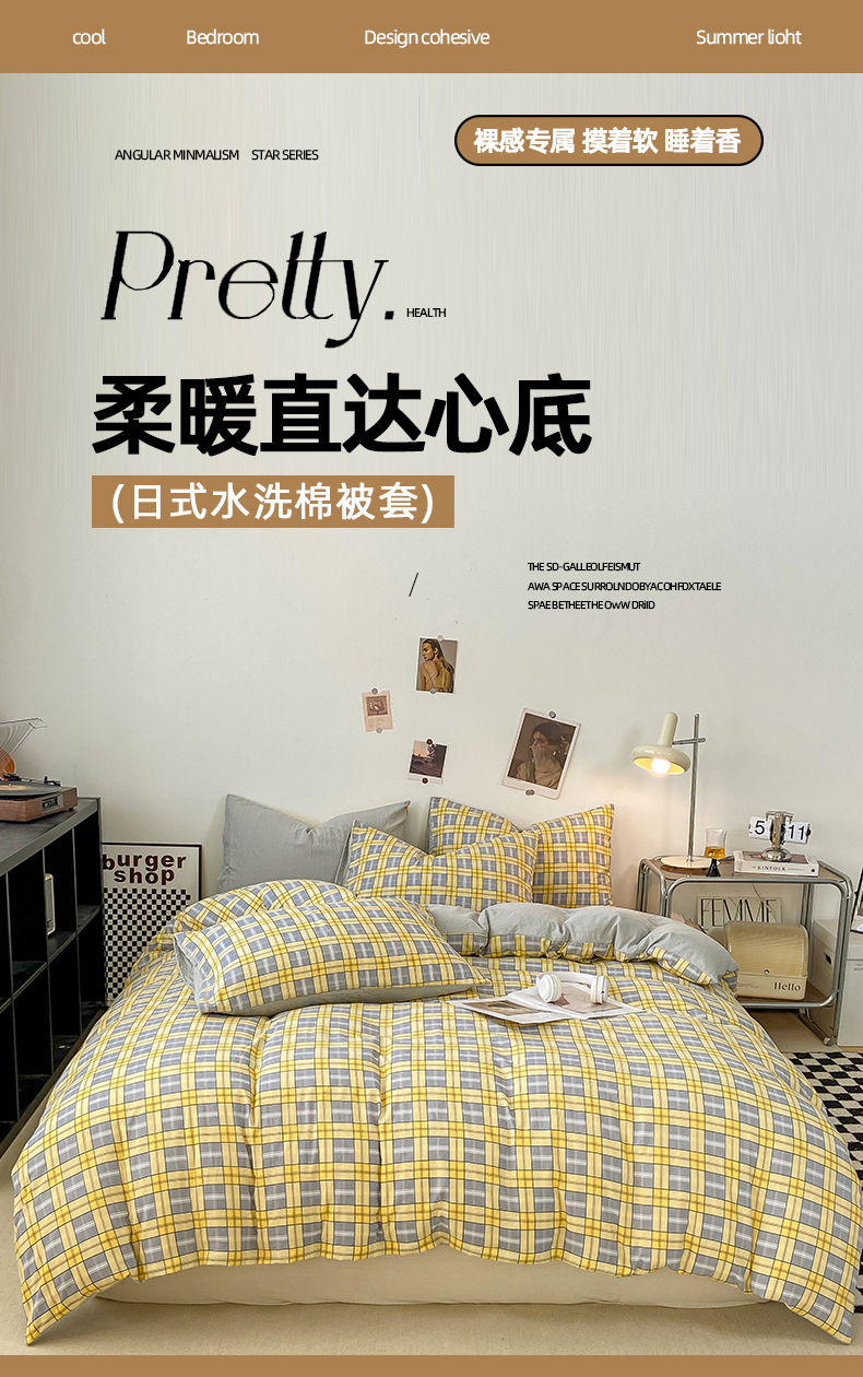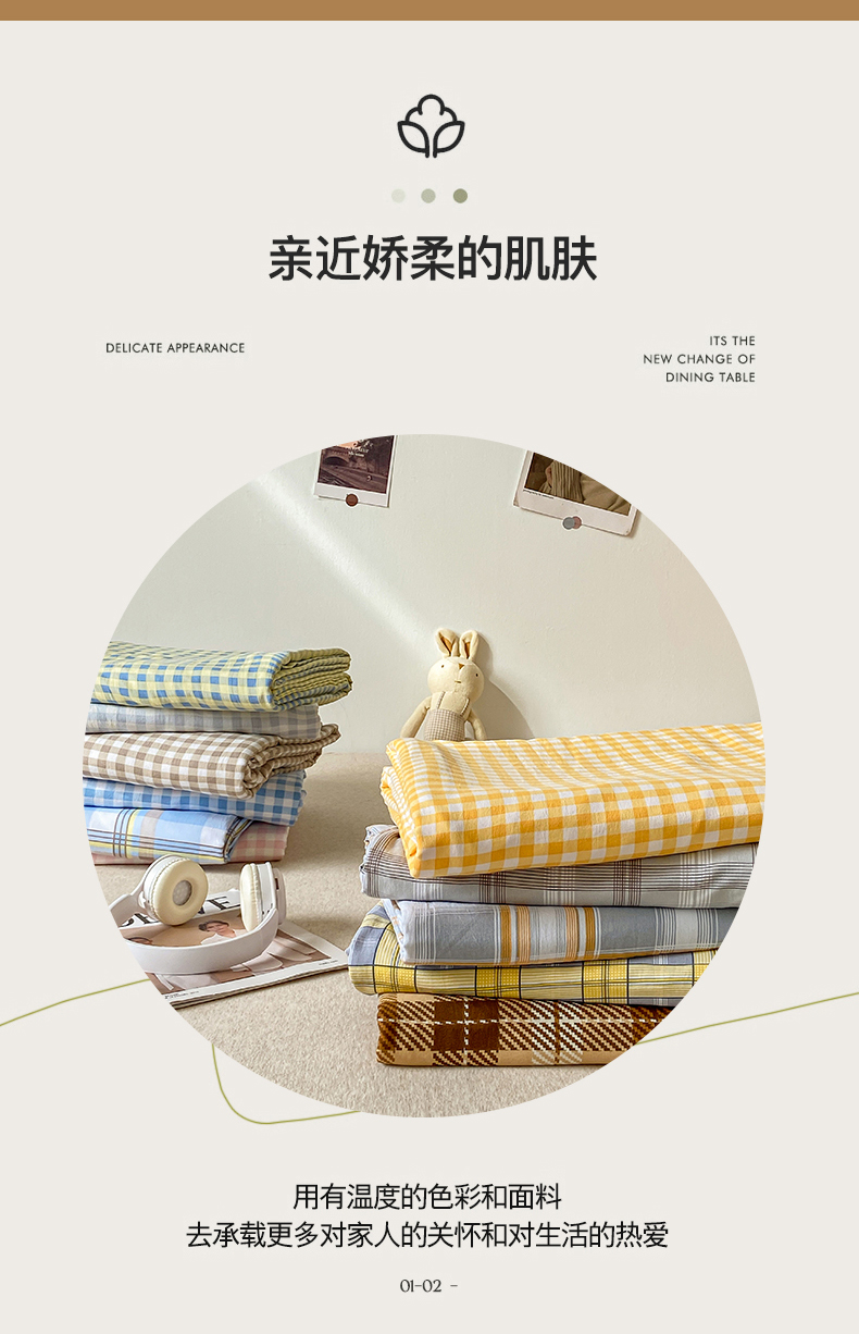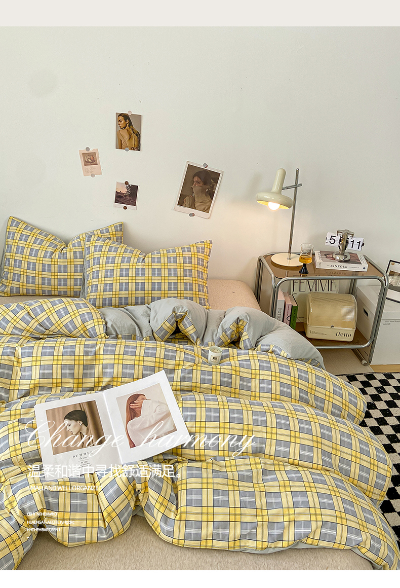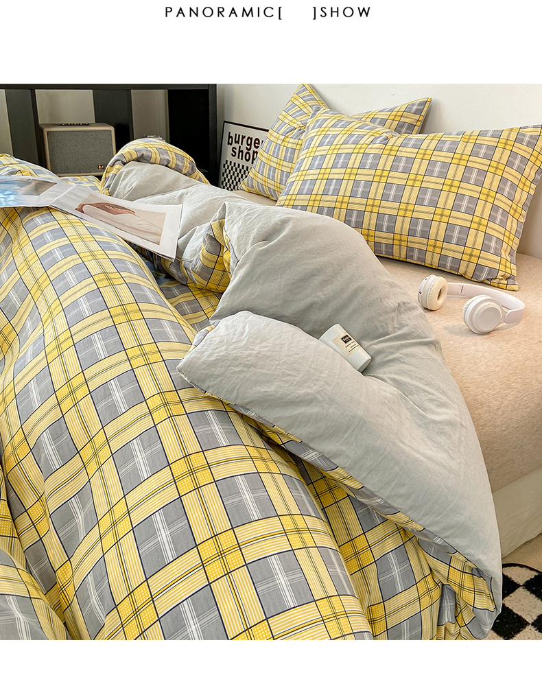 悦织湾家纺 2025新款日式简约格子水洗棉单品被套系列 哈曼灰