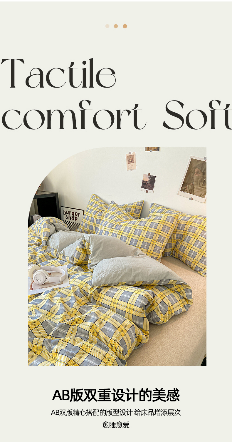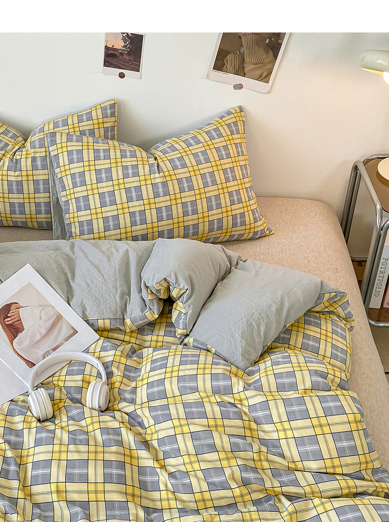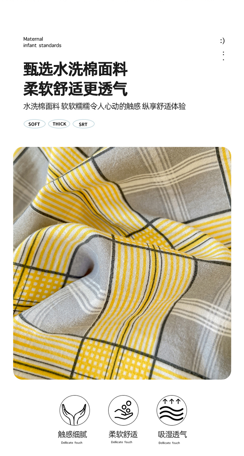 商品名称:悦织湾家纺 2025新款日式简约格子水洗棉单品被套系列 哈曼灰
