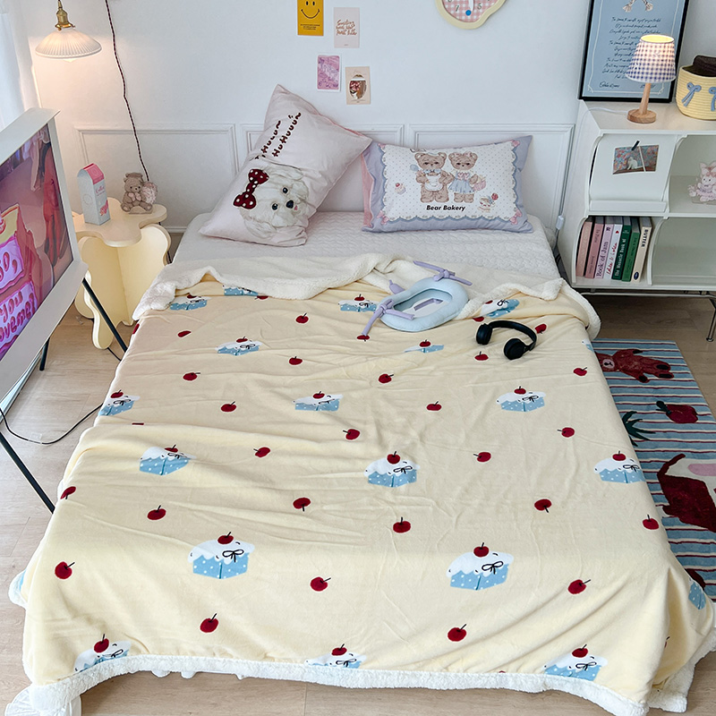 昔可家纺 2024新款羊羔绒牛奶绒毛毯系列(三)-ins小清新系列 樱桃奶油蛋糕
